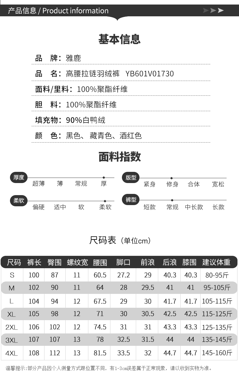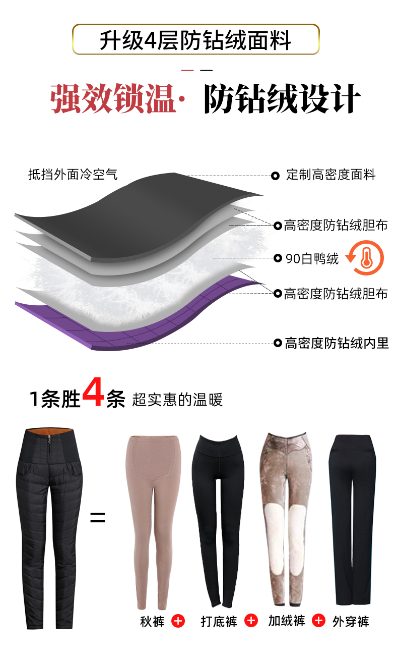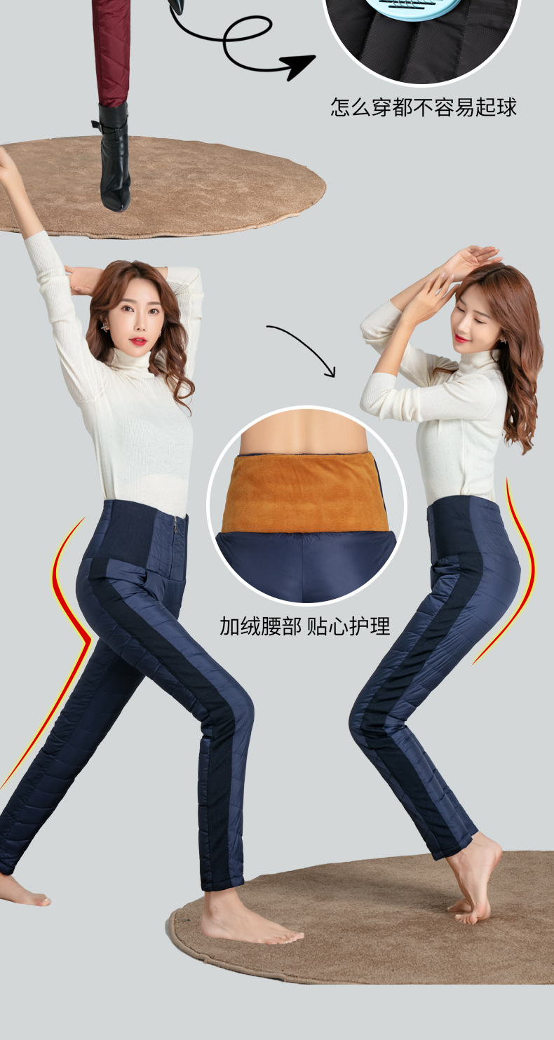 Yalu Down Pants Women's Outwear high waist thickened Fleece-lined Middle-aged and Elderly Plus size Slim Looking Skinny Jeans Ladieswear Fashion Cotton Pants Winter
