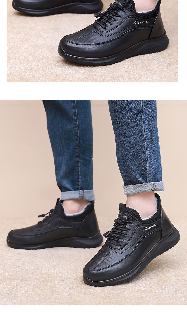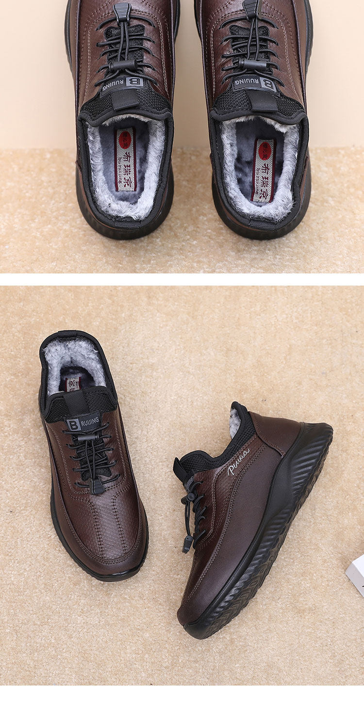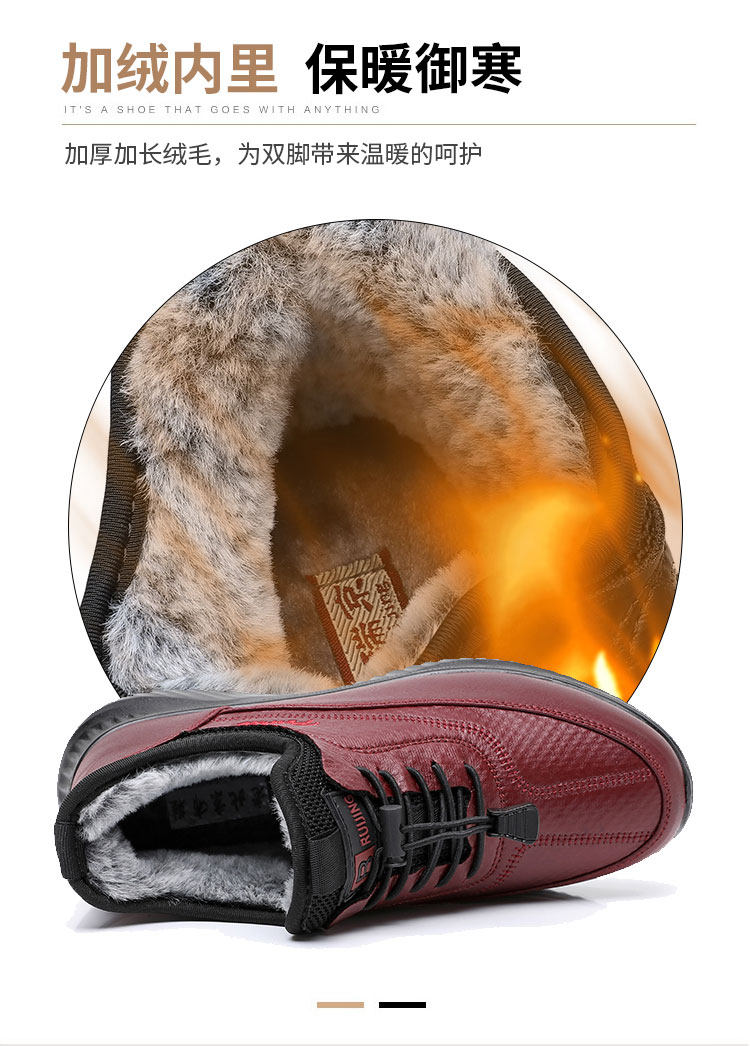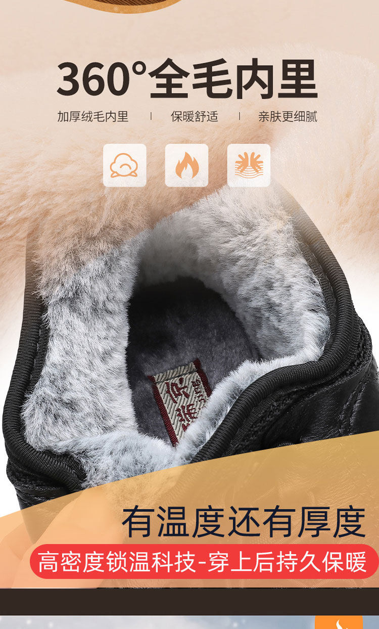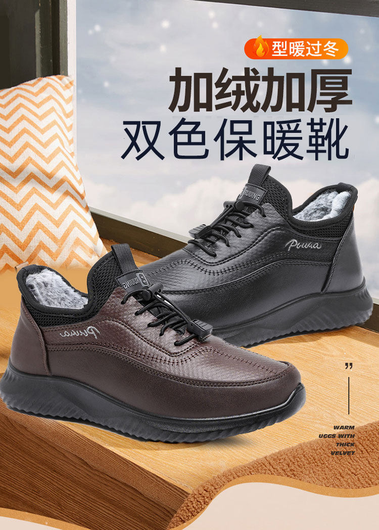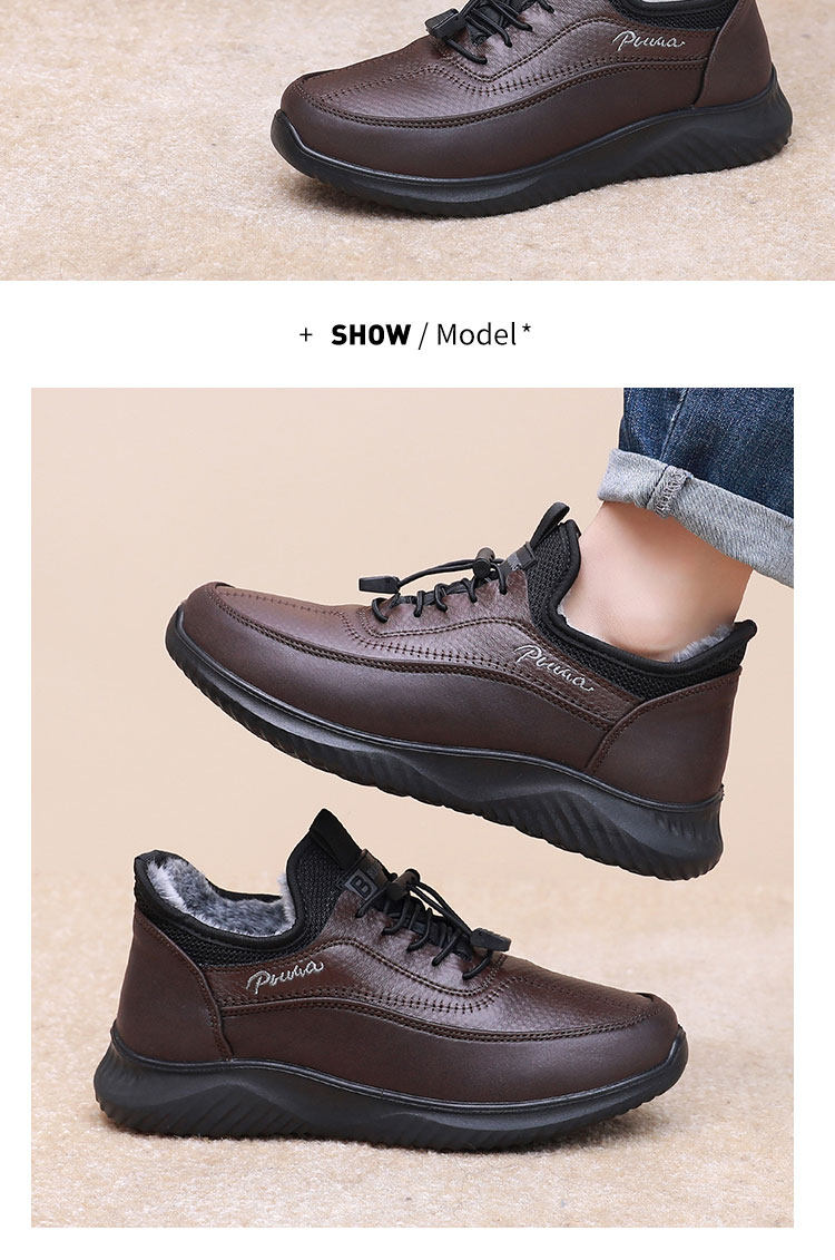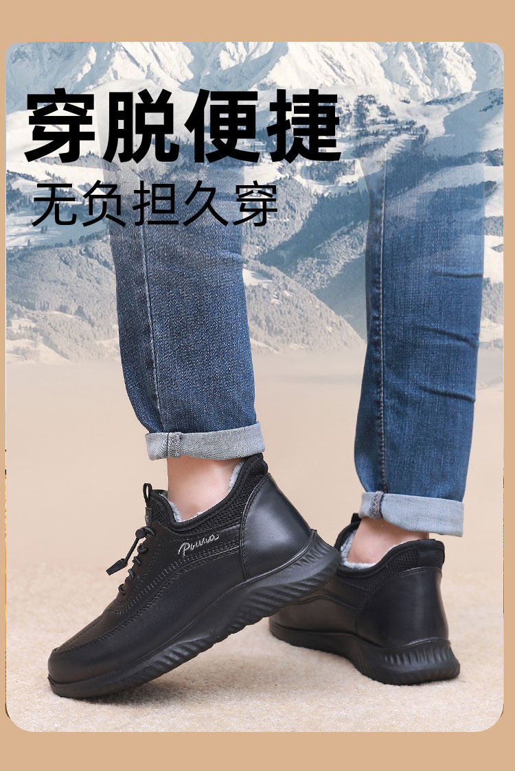 Old Beijing Cloth Shoes for Men, Winter Fleece-Lined, Warm, Middle-Aged and Elderly Dad's Cotton Shoes, Soft Sole, Non-Slip, Sports Walking Shoes for the Elderly