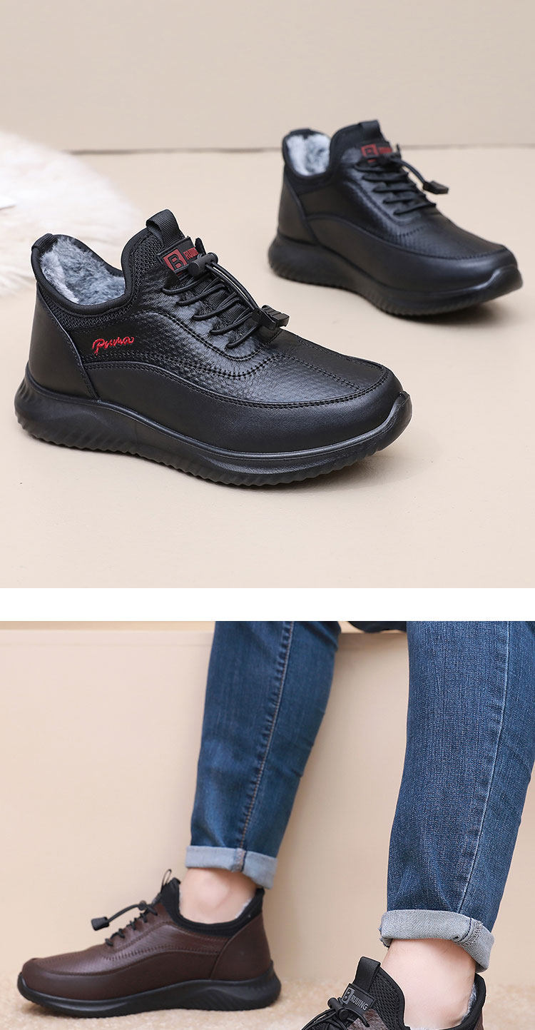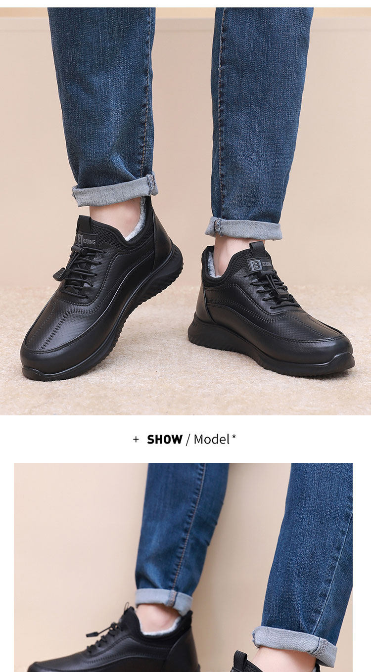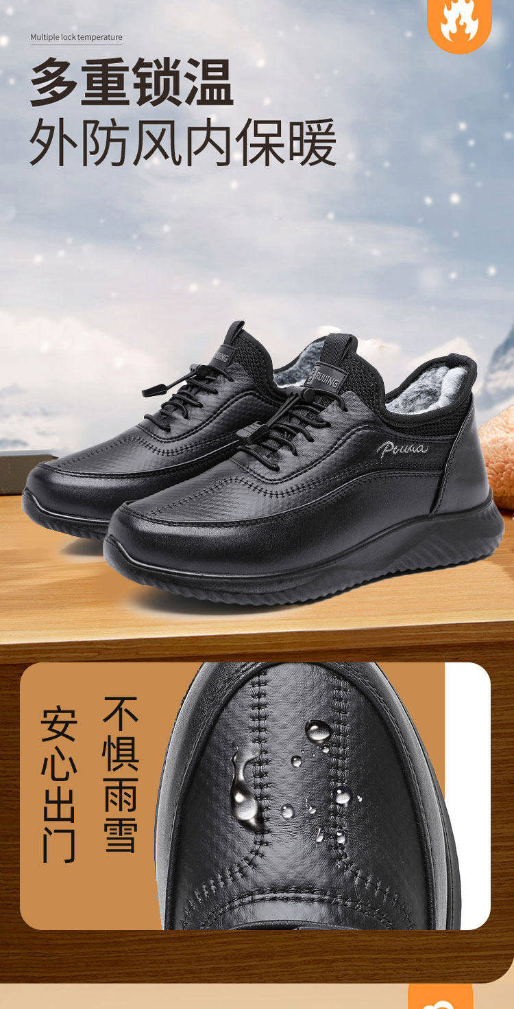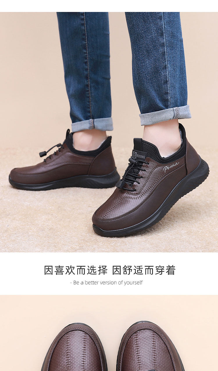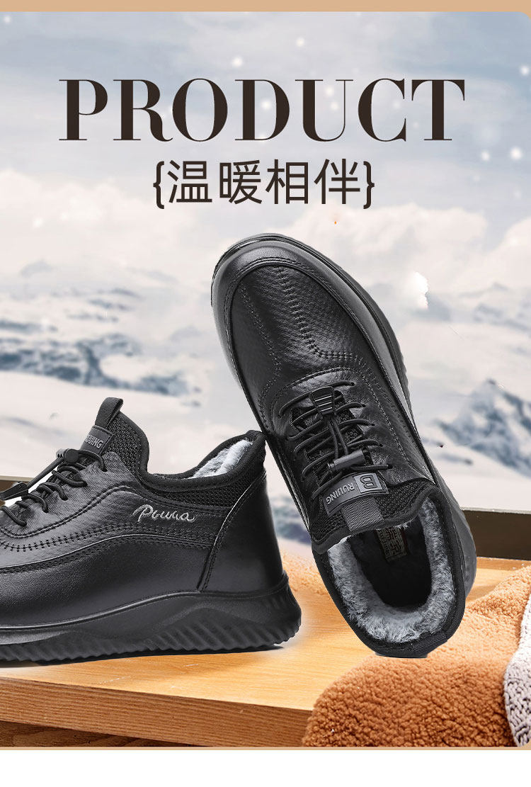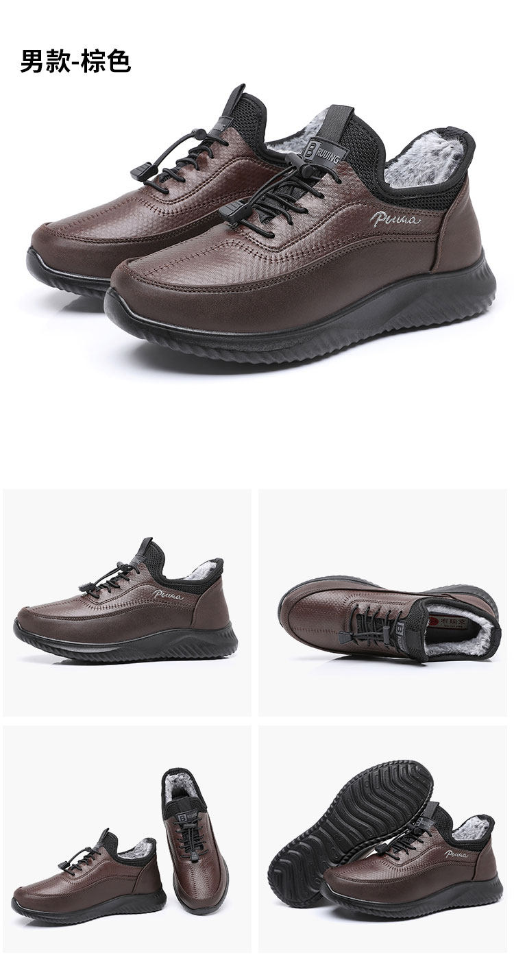 Old Beijing Cloth Shoes for Men, Winter Fleece-Lined, Warm, Middle-Aged and Elderly Dad's Cotton Shoes, Soft Sole, Non-Slip, Sports Walking Shoes for the Elderly