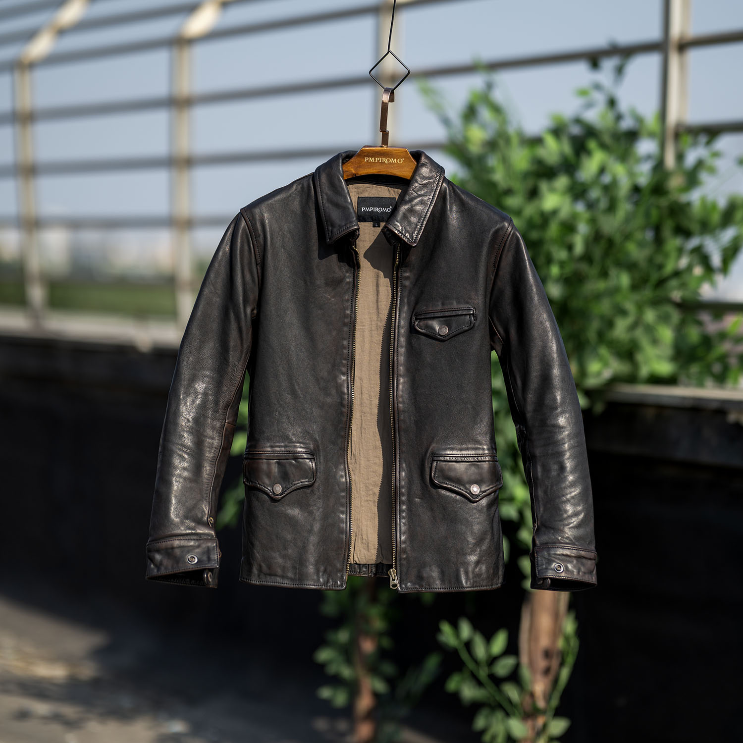 Don'T Be a Trash Can. the Gatekeeper Has Changed the Style. High-Quality Vintage-Style Men's Genuine Leather Jacket Made of Tea Core Horse Leather