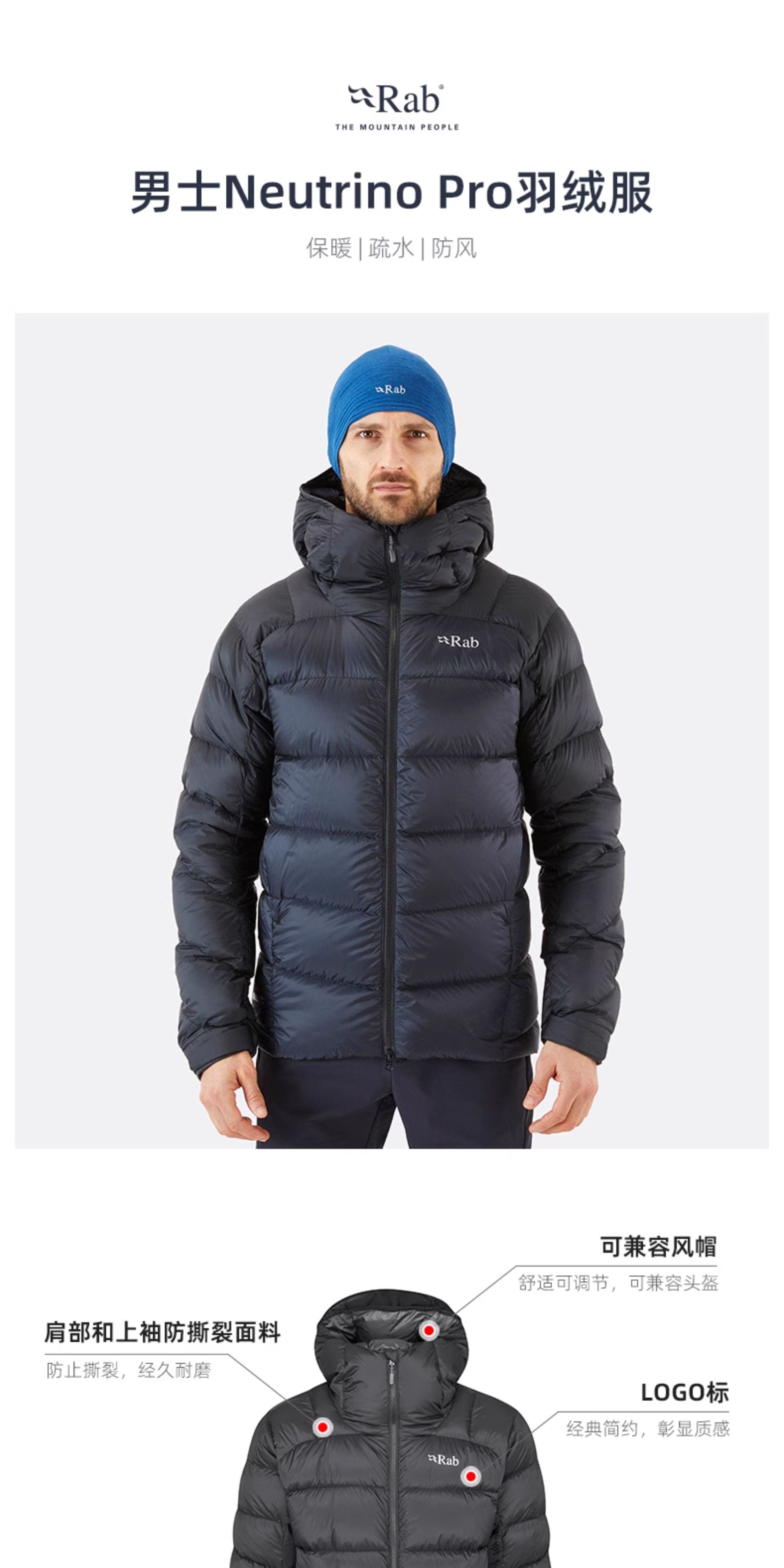 Rab Neutrino Pro Men's 800 Fill Power Goose down Warm Windproof Tear-Resistant Alpine down Jacket Qdn-95
