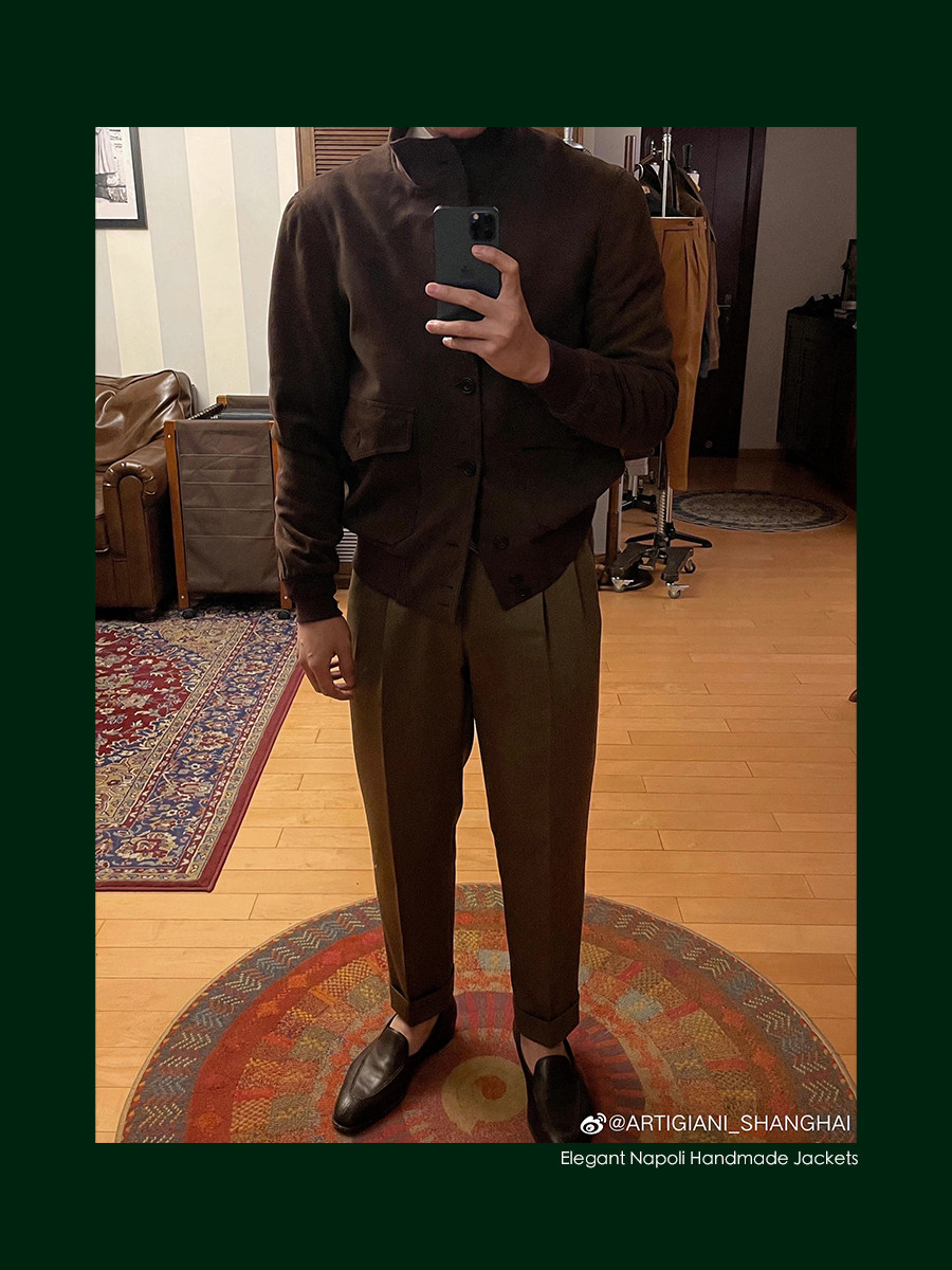 Artigiani Naples Handmade Jacket Italian Luxury Old Money High-End Sheepskin Jacket A1 Bomber Jacket