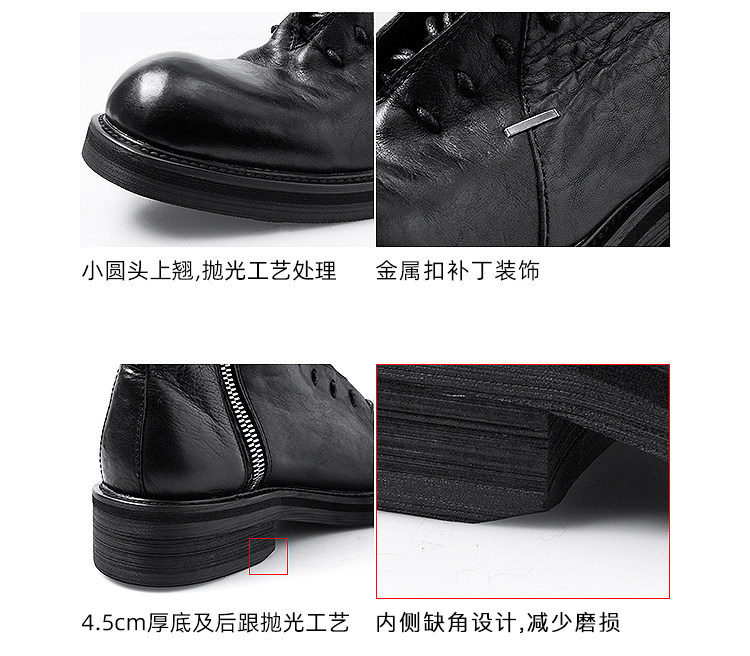 Illusionist Dark Pioneer Original Design High-Top Boots Men's Height-Increasing Work Boots Handmade Shoes Cowhide Martin Boots