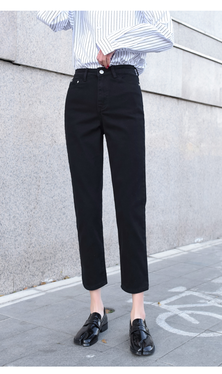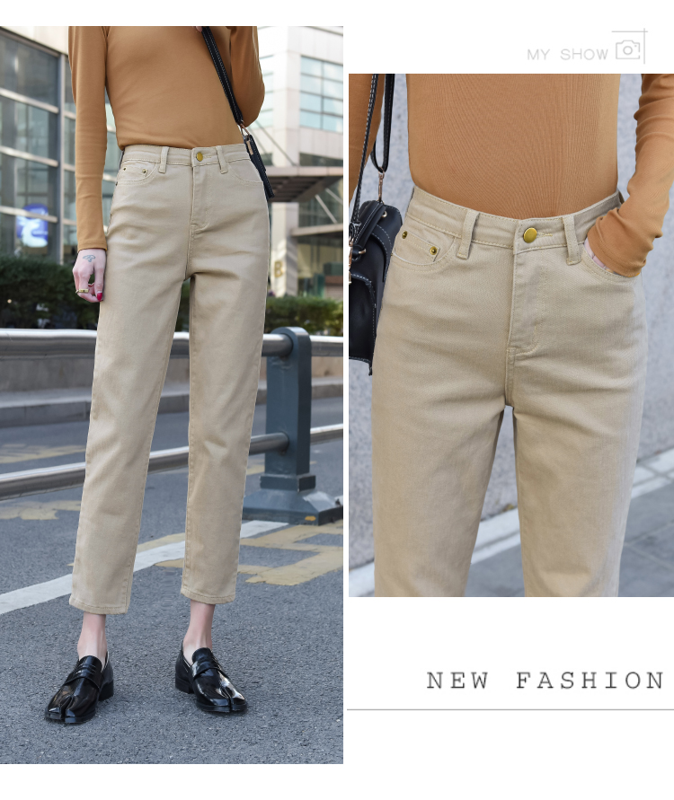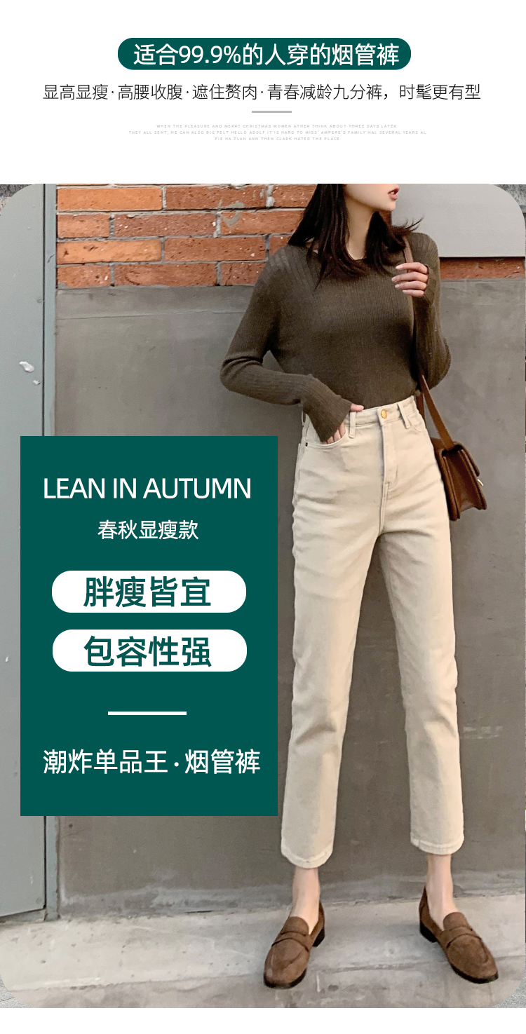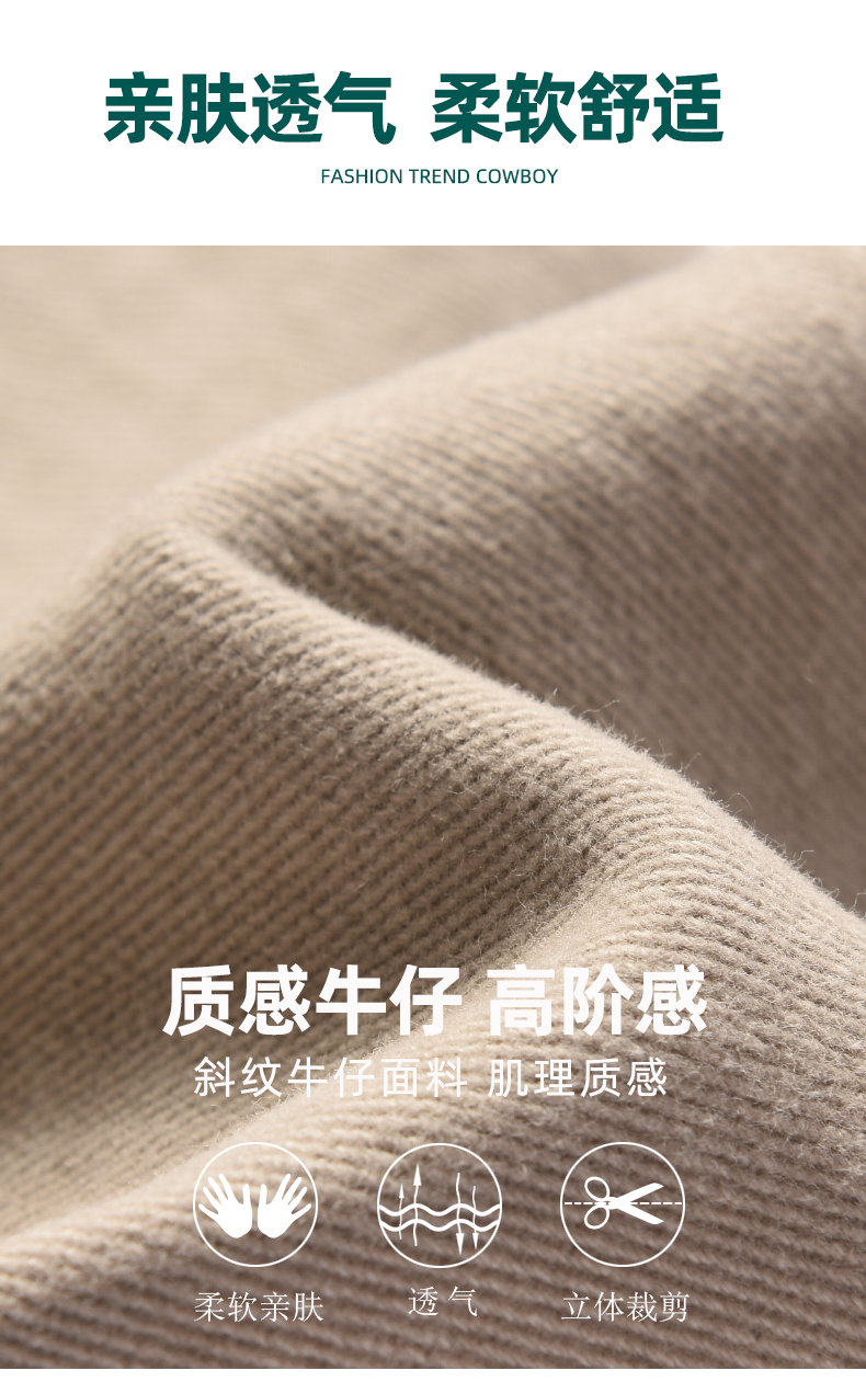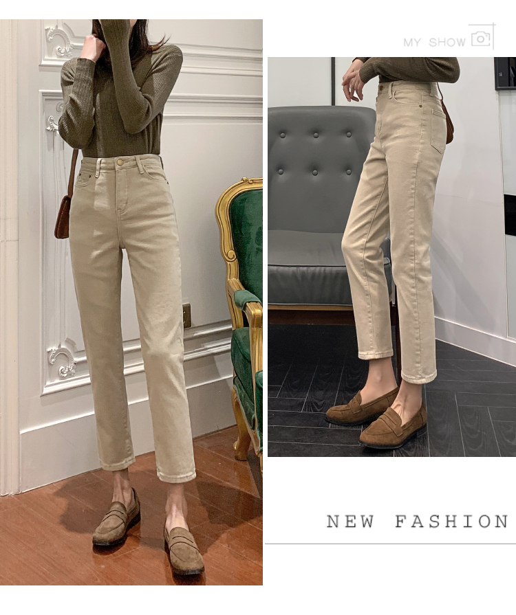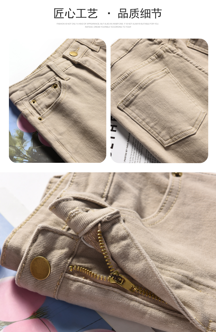 Women's Denim Cigarette Pants for Spring, Autumn, and Winter, Thin Fleece-Lined Khaki Pants, Petite Size, Cropped Narrow Fit, Fleece-Lined Baguette Straight-Leg Pants