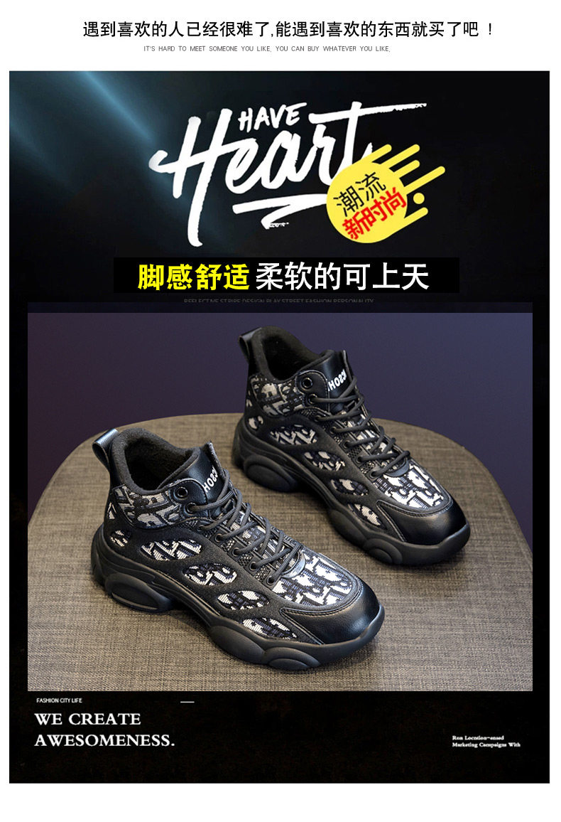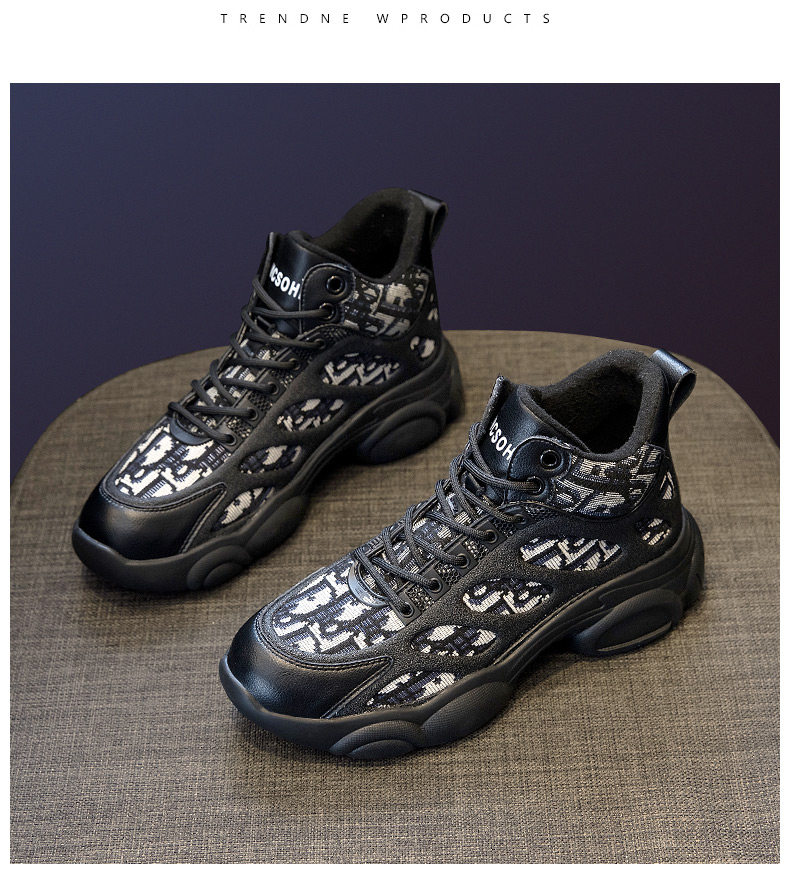 Genuine Leather High-Top Dad Shoes for Women, 2025 Autumn and Winter New Versatile Thick-Soled Fleece-Lined Warm Non-Slip Casual Sneakers Trendy