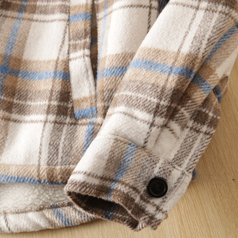 手感细腻软糯,表面是呢子质感的短绒格子布