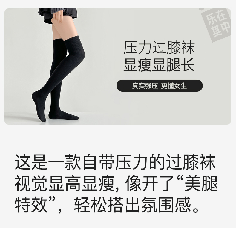 Enjoy It Pressure Slimming Over-The-Knee Socks for Women, Summer Jk Socks, Strong Compression Black Calf-Length Socks, Thigh-High Stockings