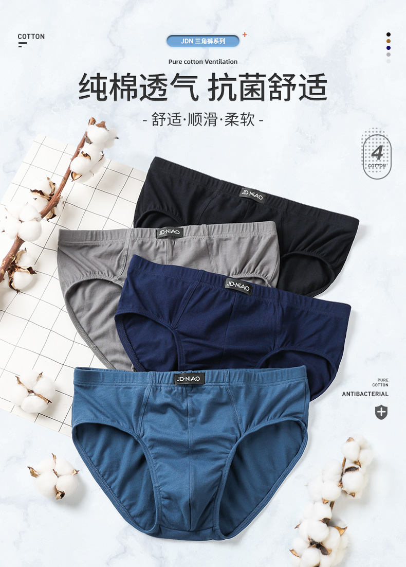 Pure Cotton Antibacterial Men's Underwear Summer Loose Breathable Mid-Waist Briefs Shorts Large Size Triangle Briefs Men's Underwear