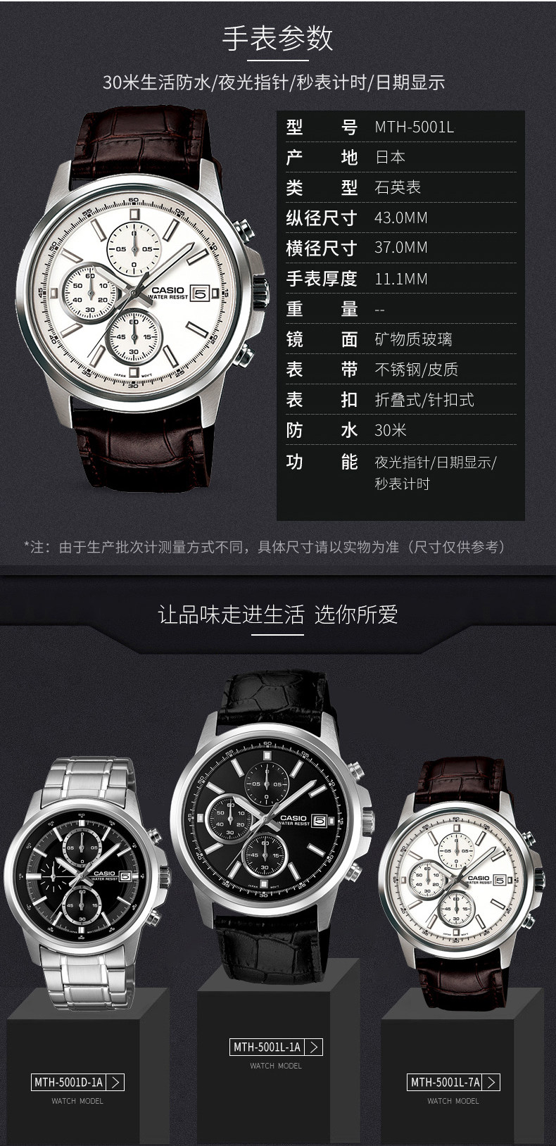 Casio Men's Watch Genuine Brand-Name Waterproof Business Leather Strap Quartz Watch Brand Men's Watch Mth-5001L-7A