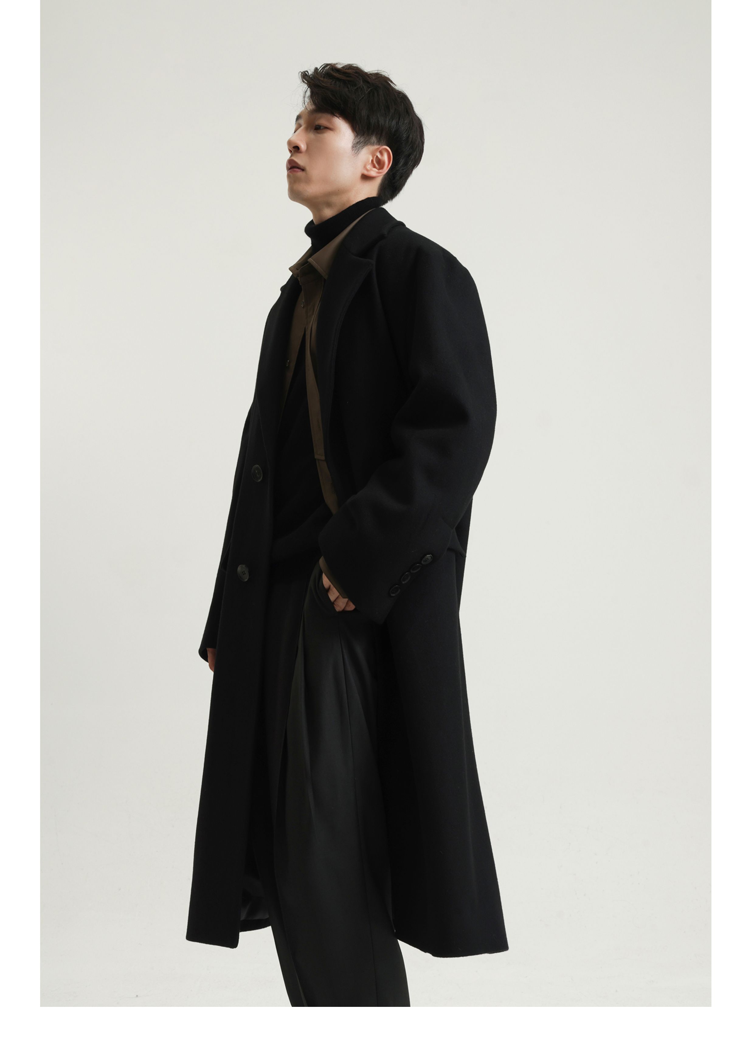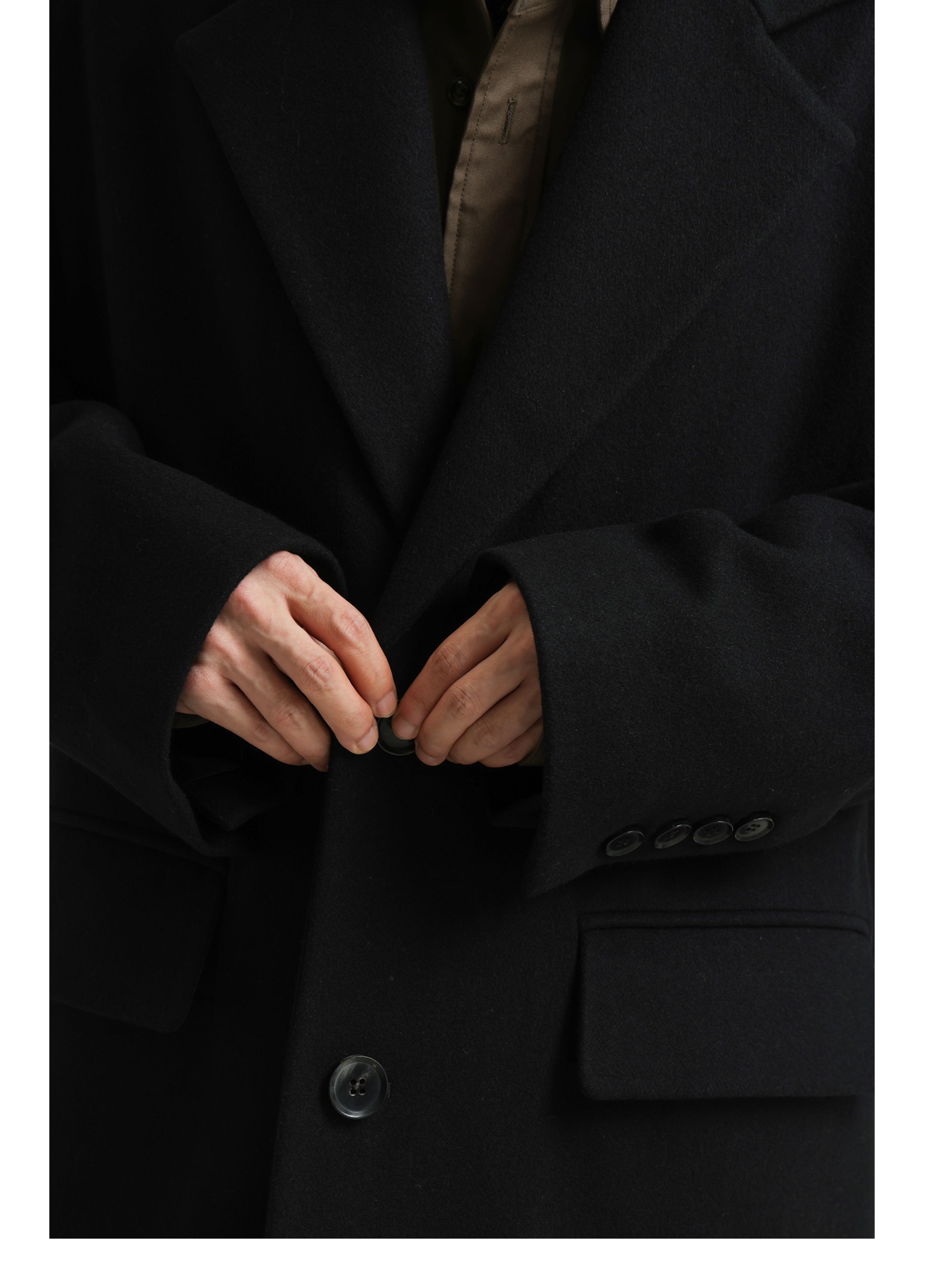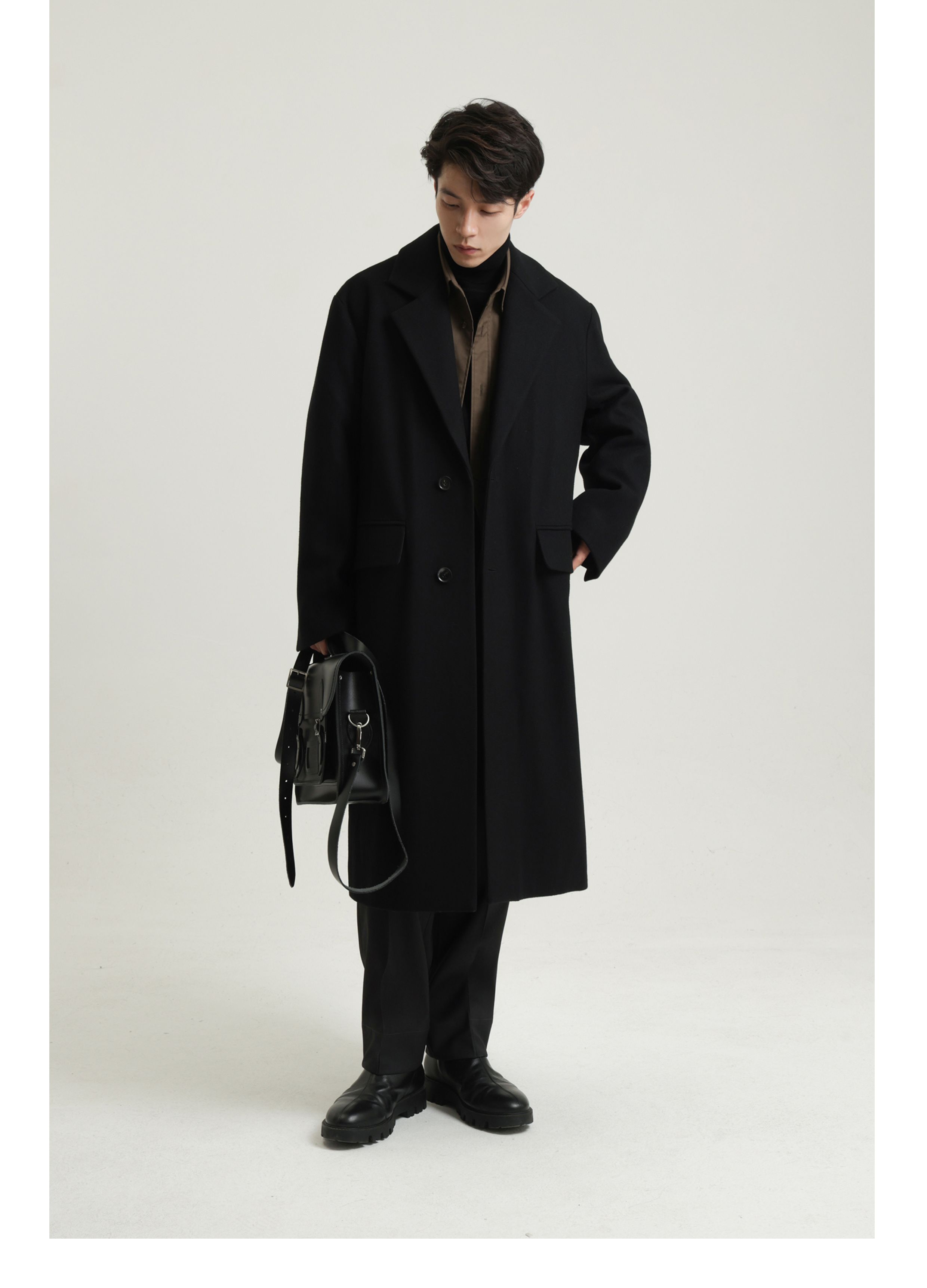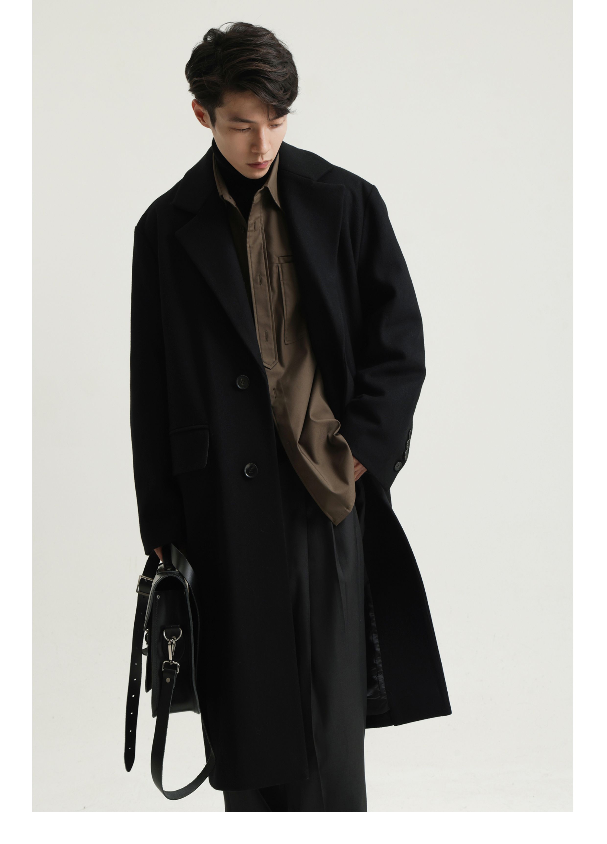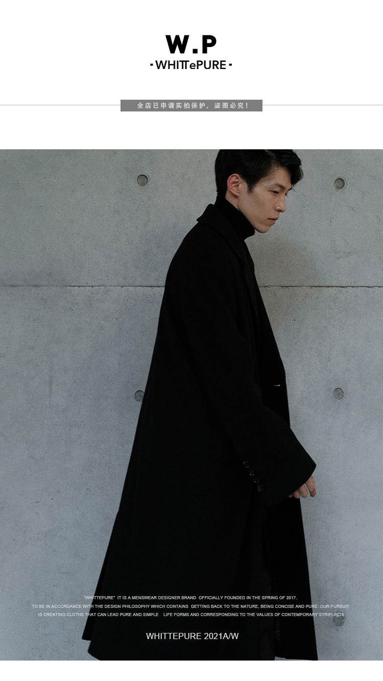 【Whitt Epure】Wp Shirakawa Long Wool Coat with Suit Collar Woolen Jacket for Men Winter Wear