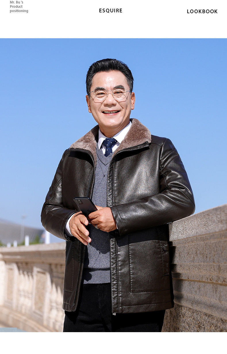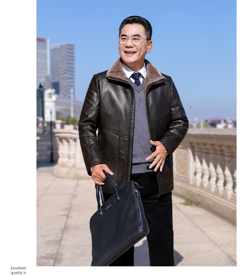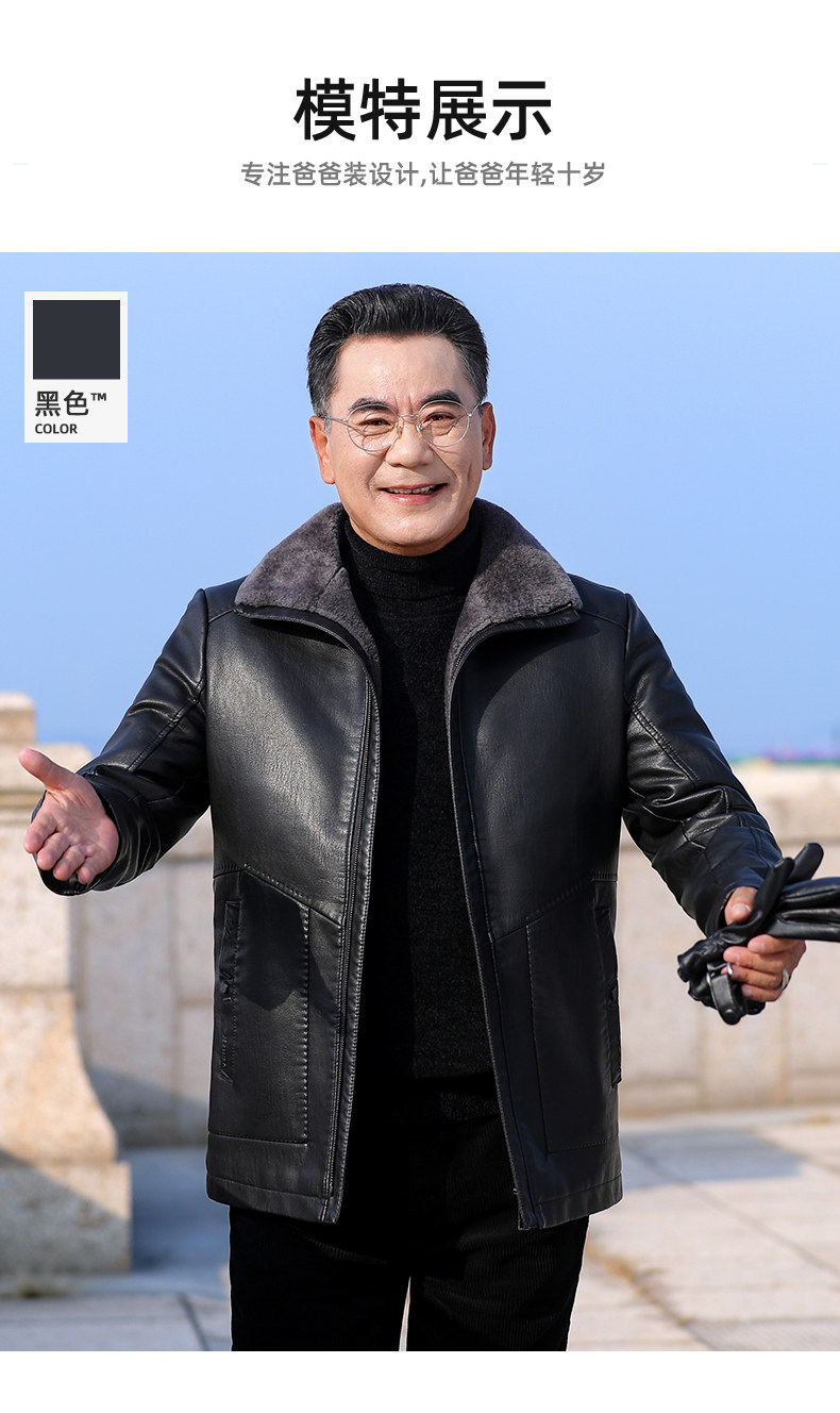Dad's Winter Leather Jacket, Middle-Aged and Elderly Leather Jacket, Warm Fleece-Lined Thickened Leather and Fur Integrated down Jacket for Men, Middle-Aged