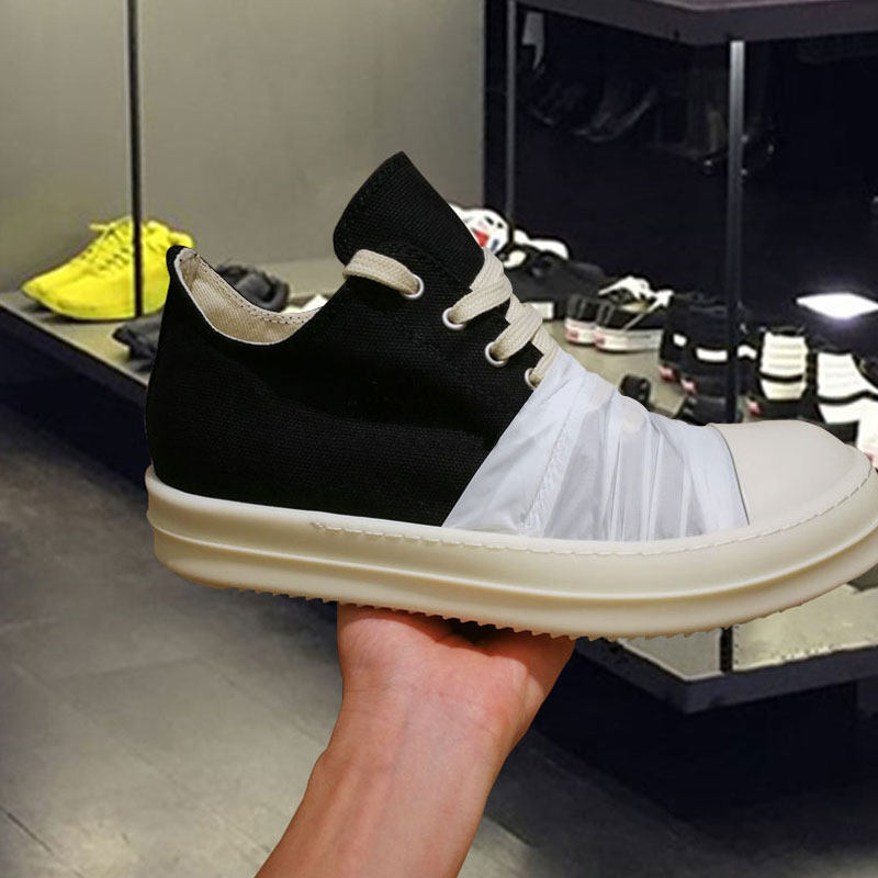 Men's Low-Top Canvas Shoes with Thick Soles, Versatile Trendy Shoes, European and American Style Couple Shoes, Black and White Satin Short Boots, Casual Sneakers