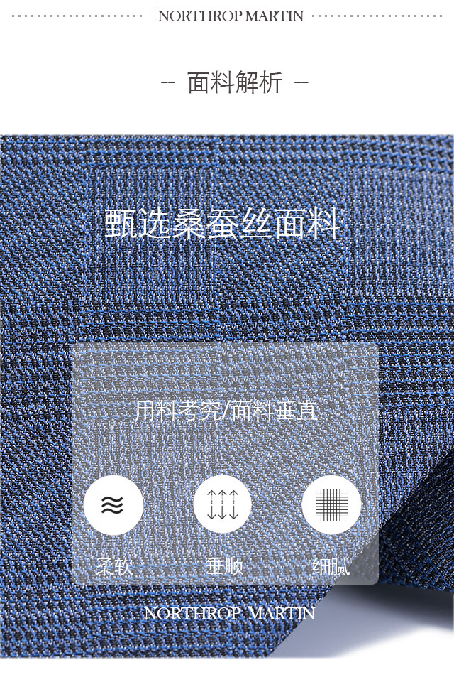 North Martin Tie for Men, Knot-Free Zipper, Business High-End Blue, One-Pull Silk Mulberry Silk Gift Box Set