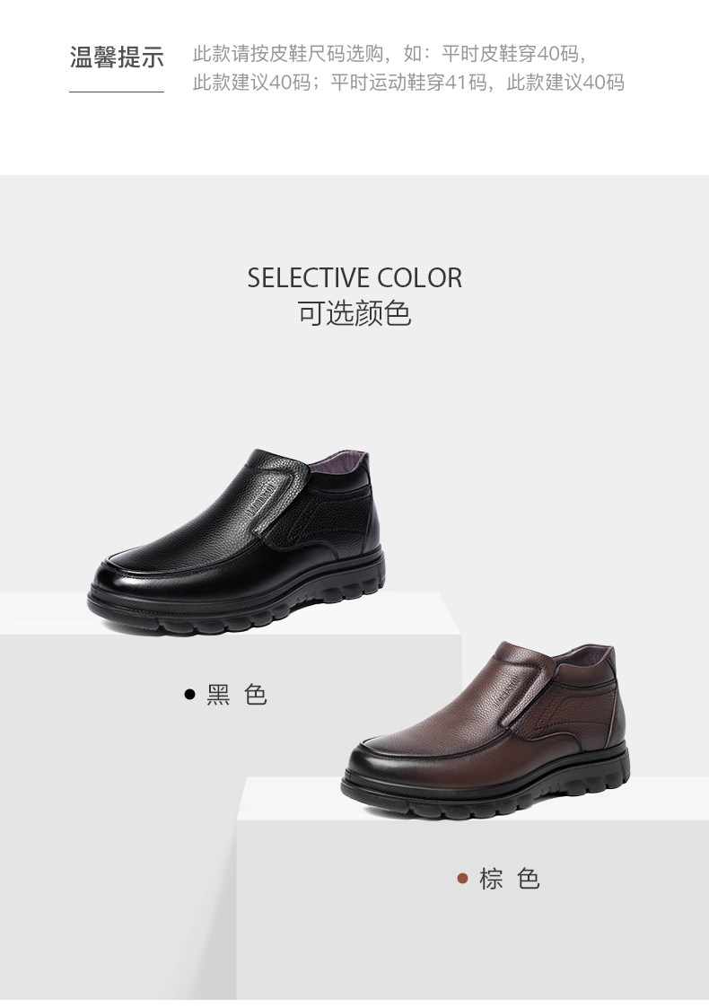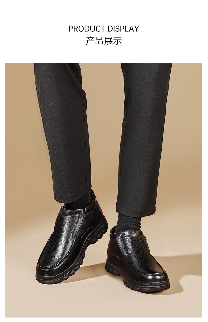 Genuine Leather Wool-Lined High-Top Cotton Shoes for Elderly Men, Leather Shoes for Fathers, Warm Snow Boots