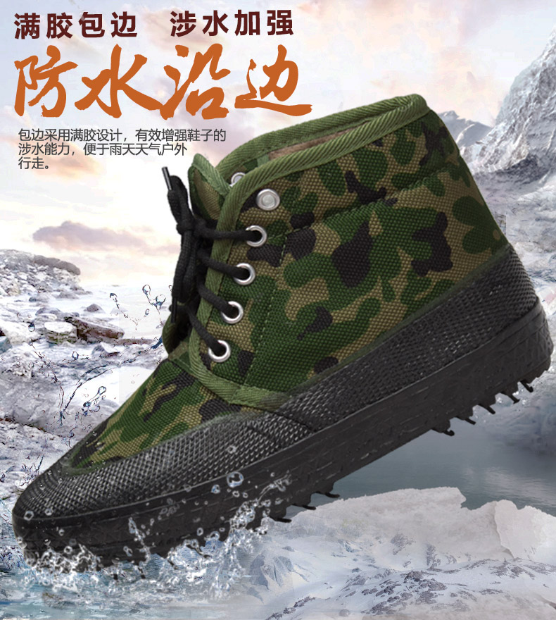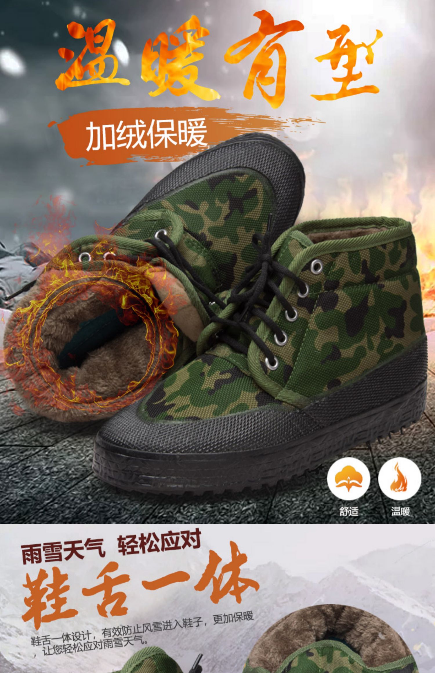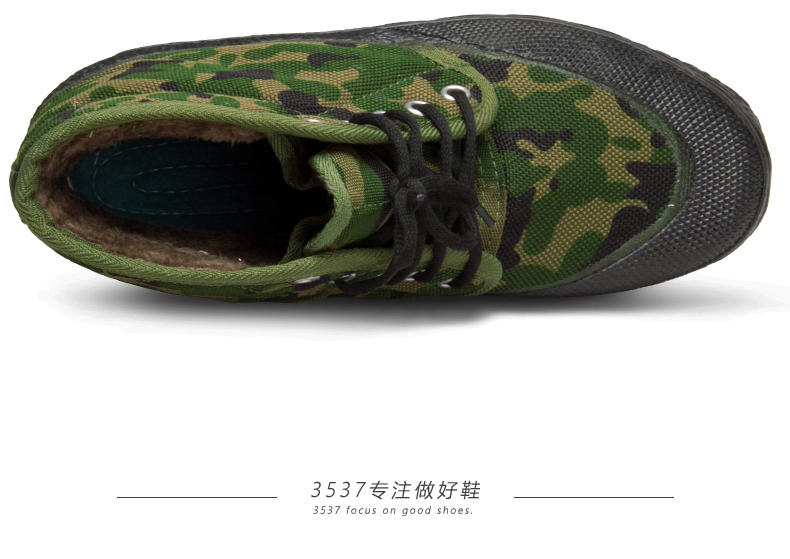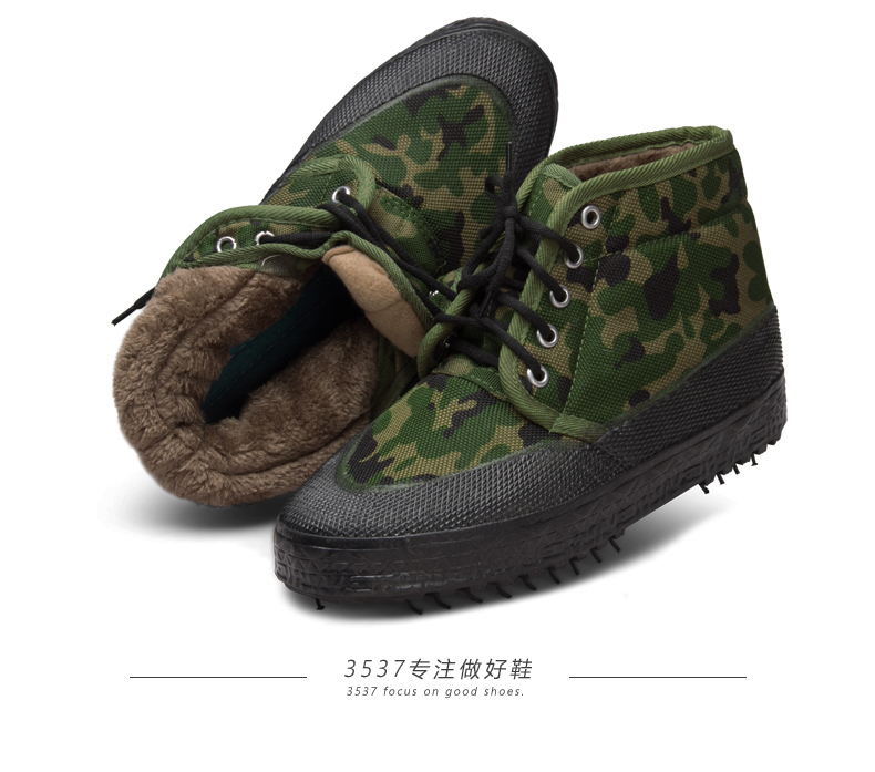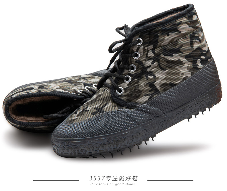 3537 Jiefang Shoes Men's Velvet Winter Cold-Proof and Warm High-Top Camouflage Shoes Rubber Shoes Labor Protection Cotton Shoes Construction Site Yellow Sneakers