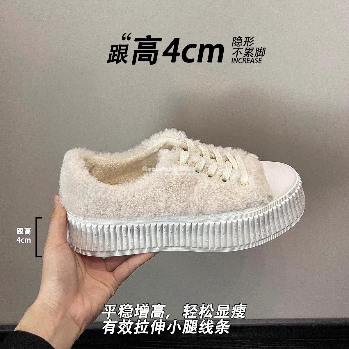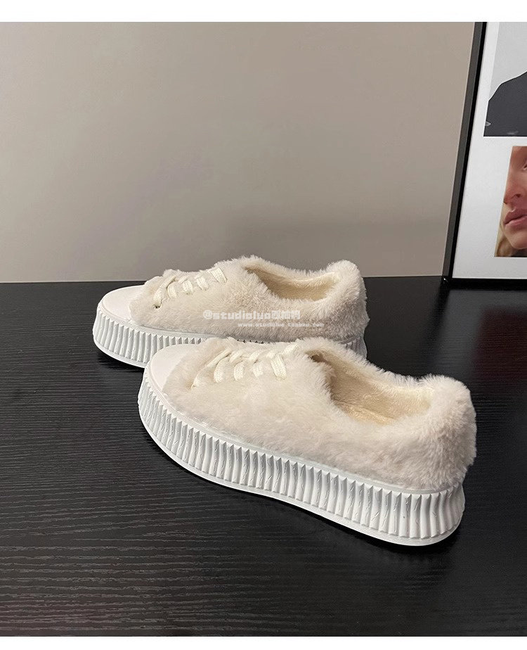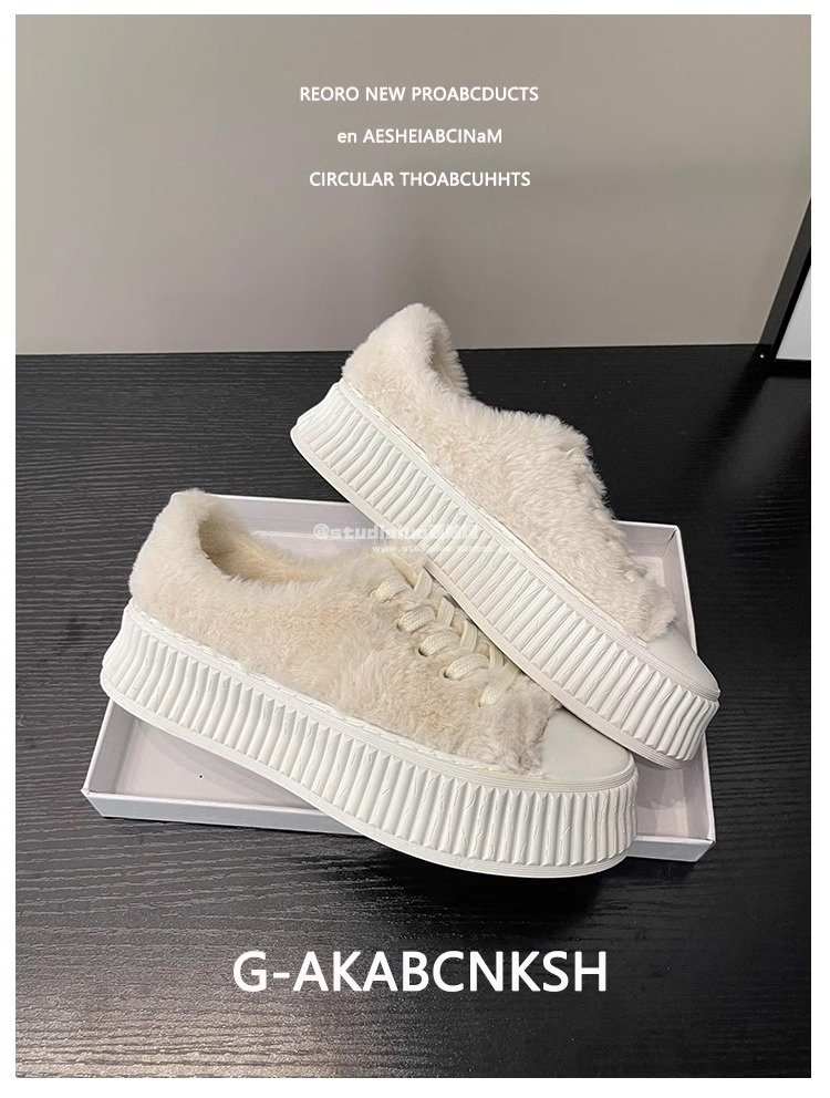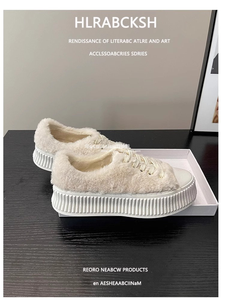 Hong Kong Style Women's Furry Shoes for Spring and Autumn 2025 New Popular Thick-Soled Height-Increasing Fairy-Style Lamb Wool Plush Loafers