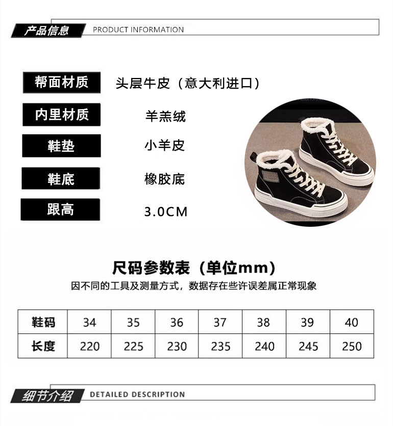 Hong Kong Trendy Brand Genuine Leather Snow Boots for Women 2025 Spring and Autumn New Style Fleece-Lined High-Top Sneakers Lamb Wool Cotton Shoes Short Boots