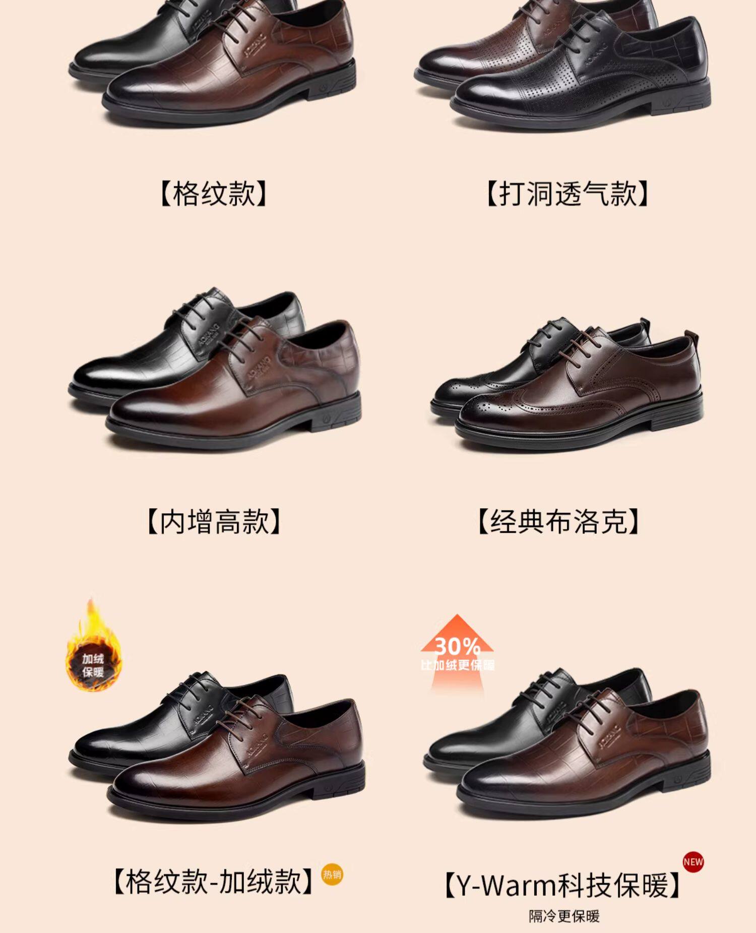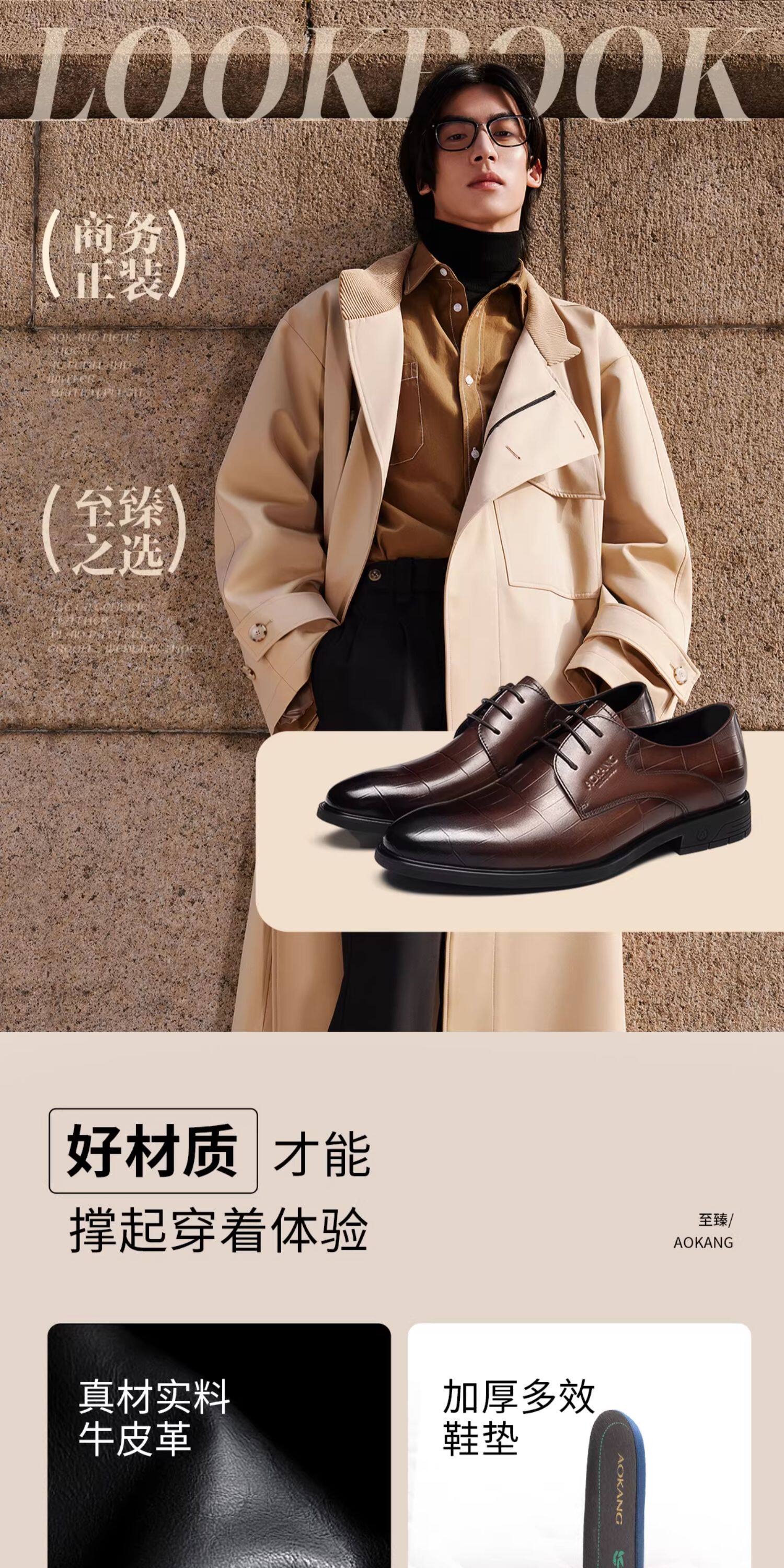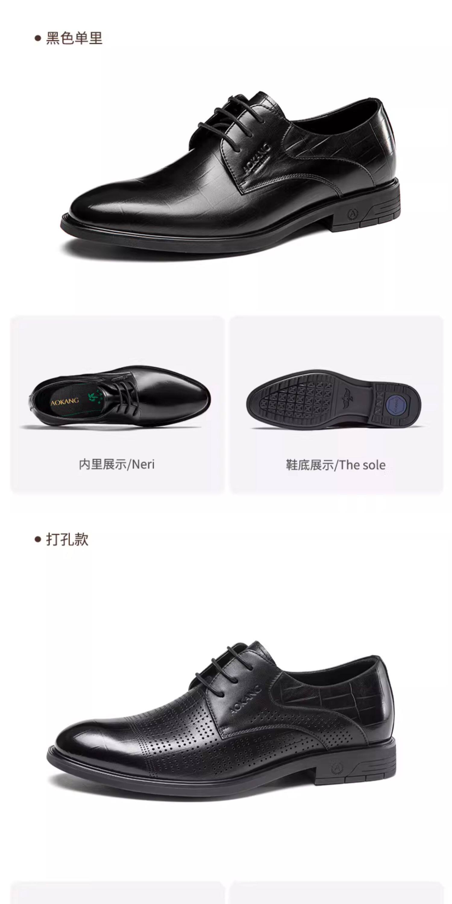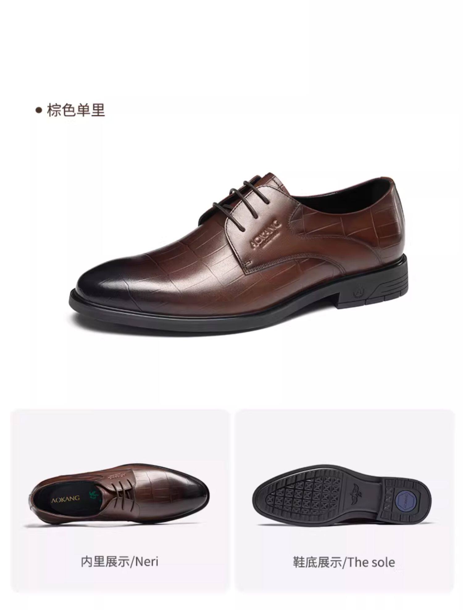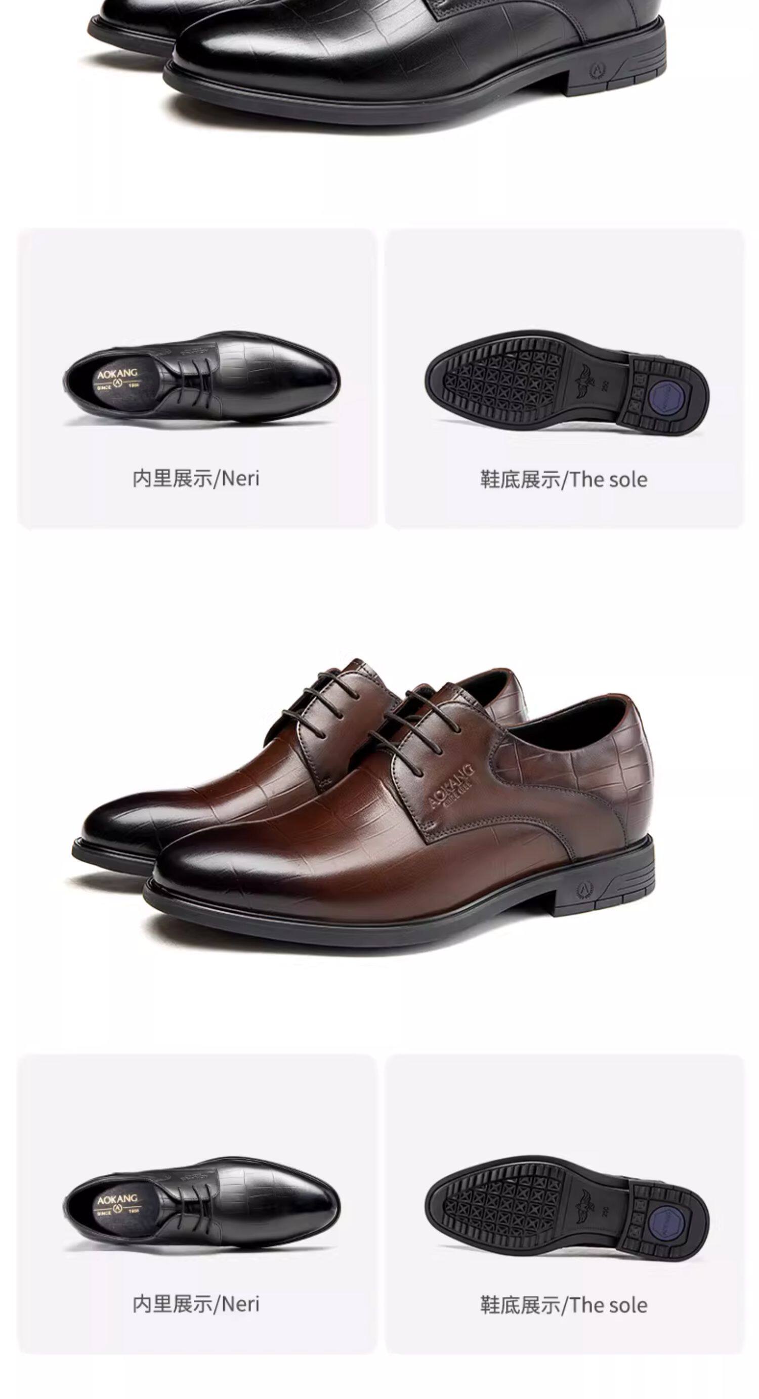 Aokang Men's Shoes for Spring and Autumn, British Style Fashion Plaid Business Formal Leather Shoes, Genuine Leather, Comfortable, Height-Increasing Groom's Wedding Shoes