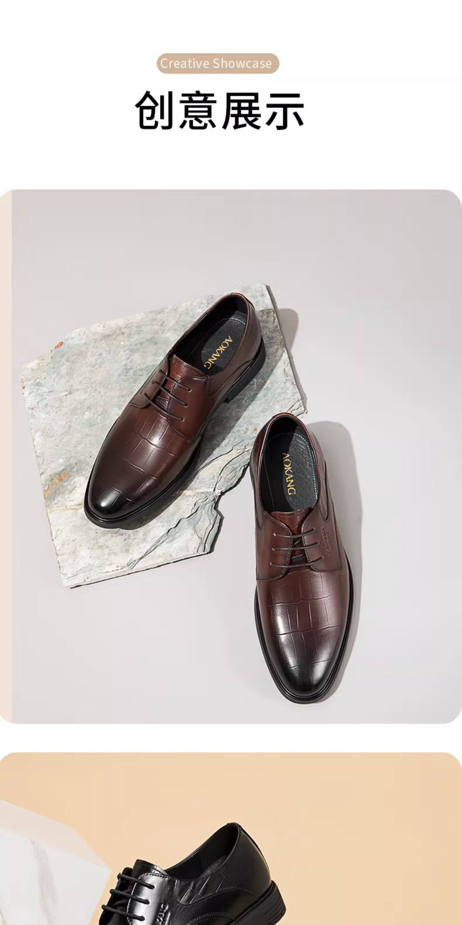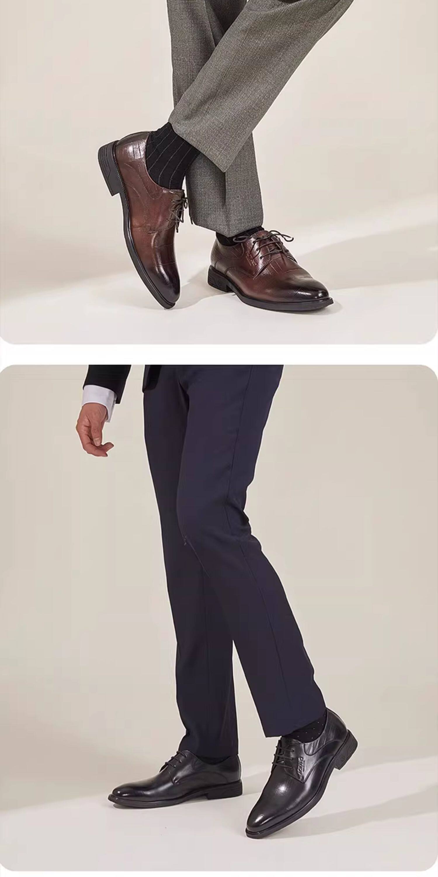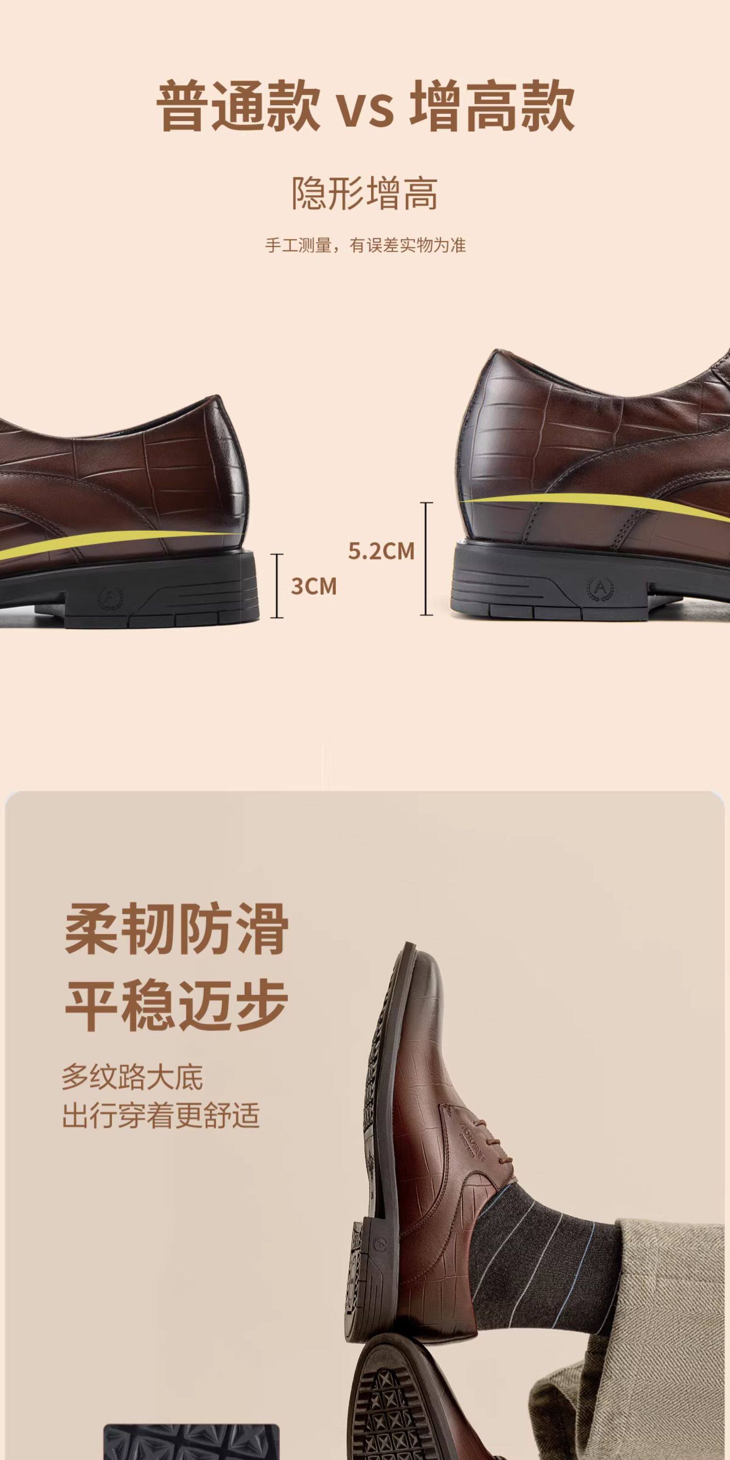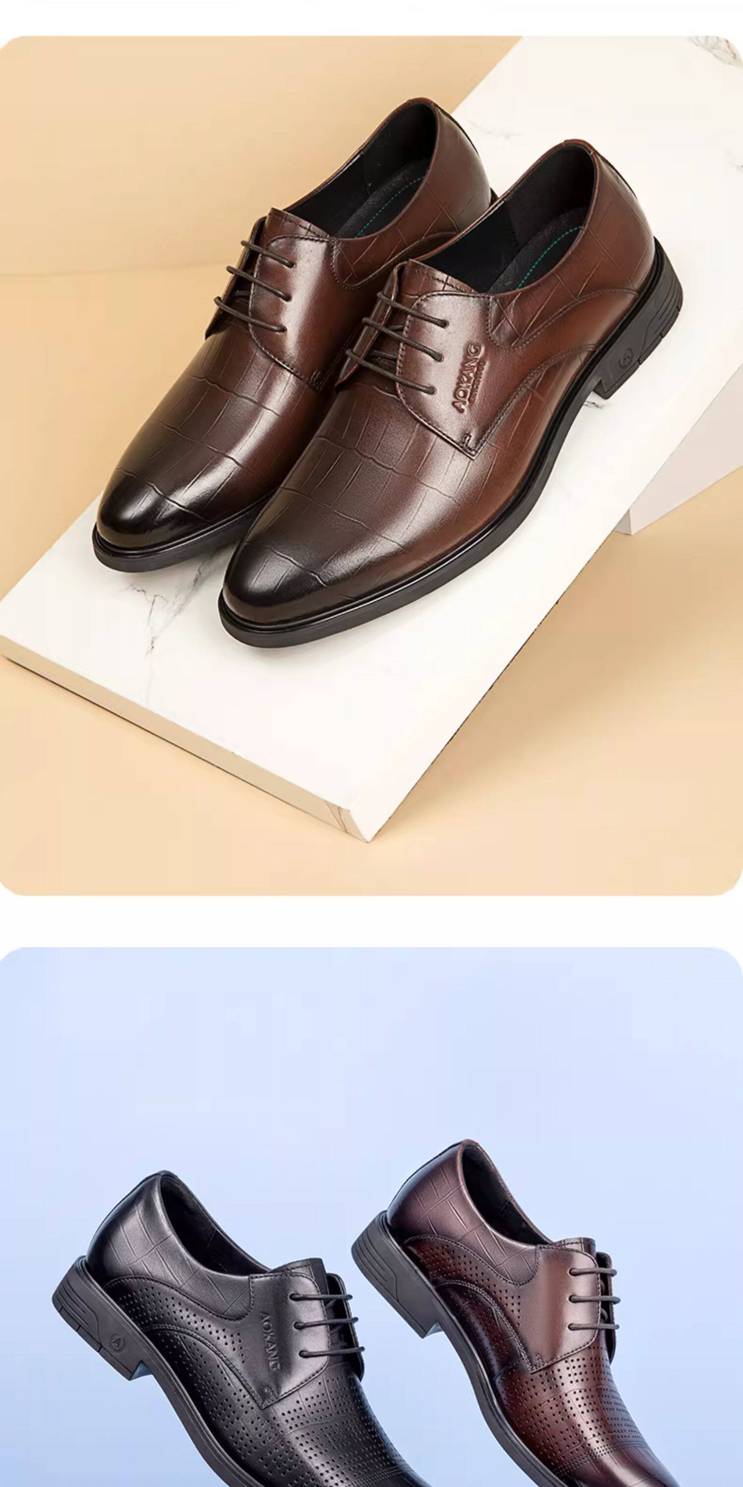 Aokang Men's Shoes for Spring and Autumn, British Style Fashion Plaid Business Formal Leather Shoes, Genuine Leather, Comfortable, Height-Increasing Groom's Wedding Shoes