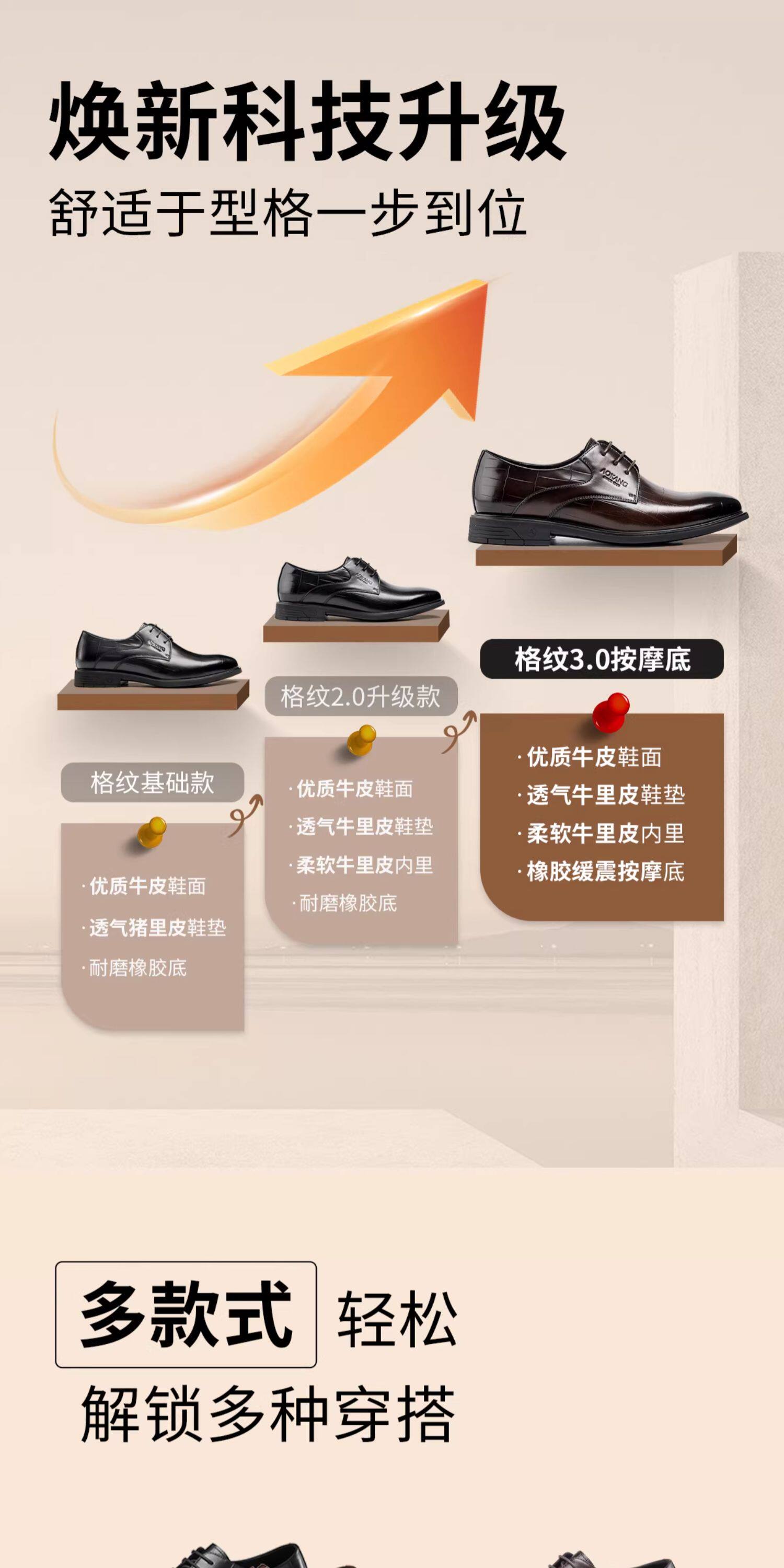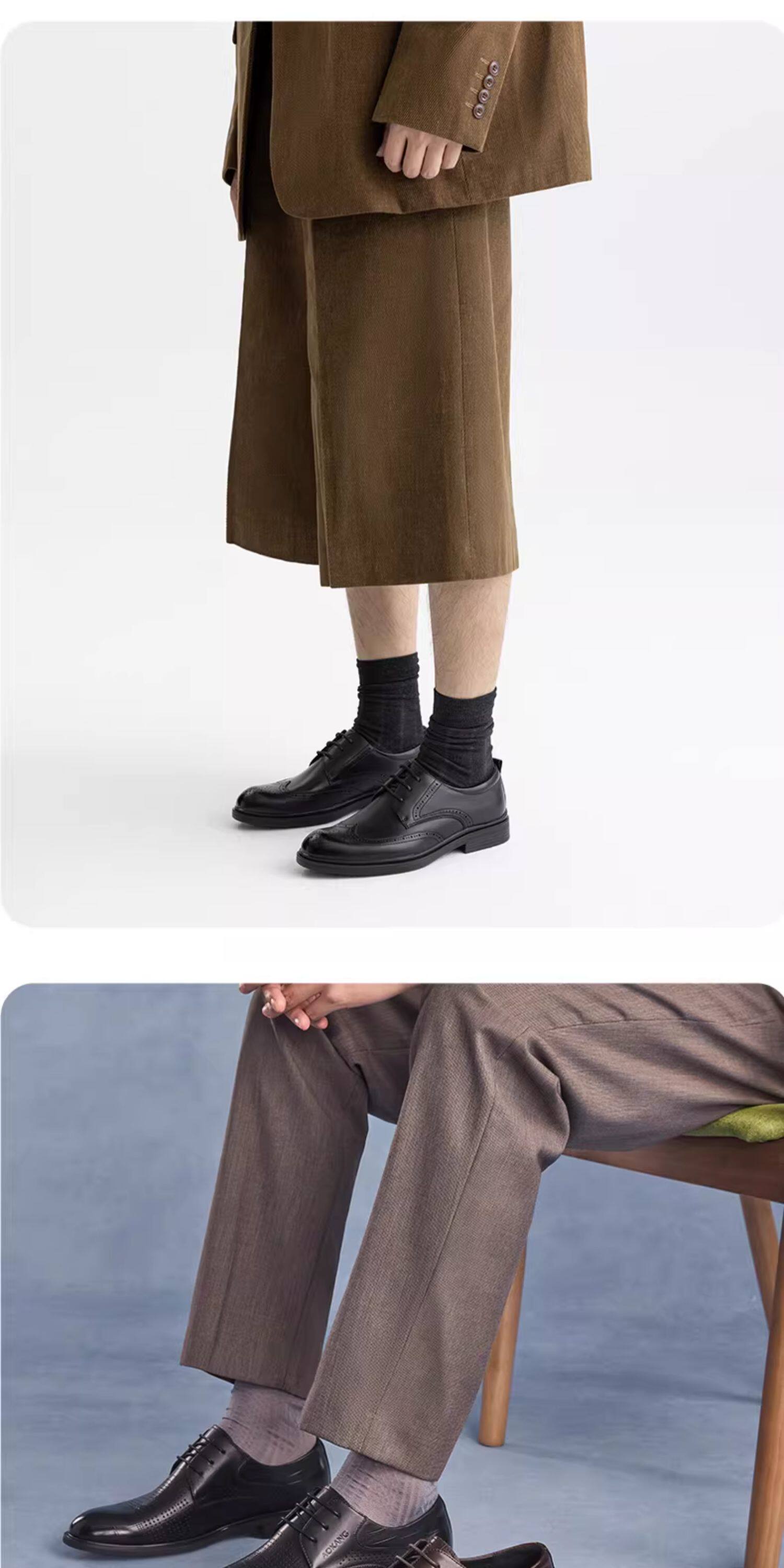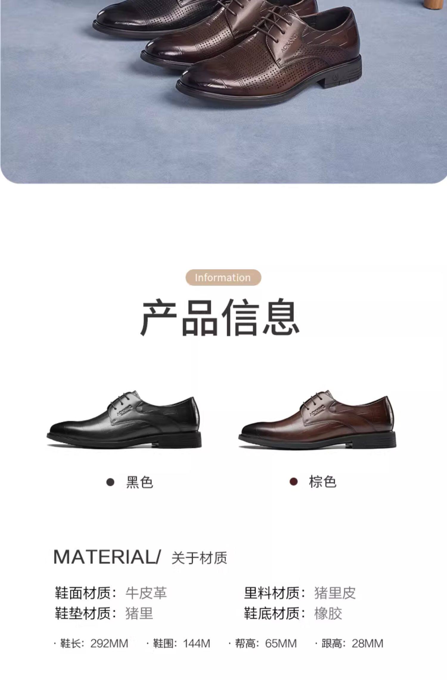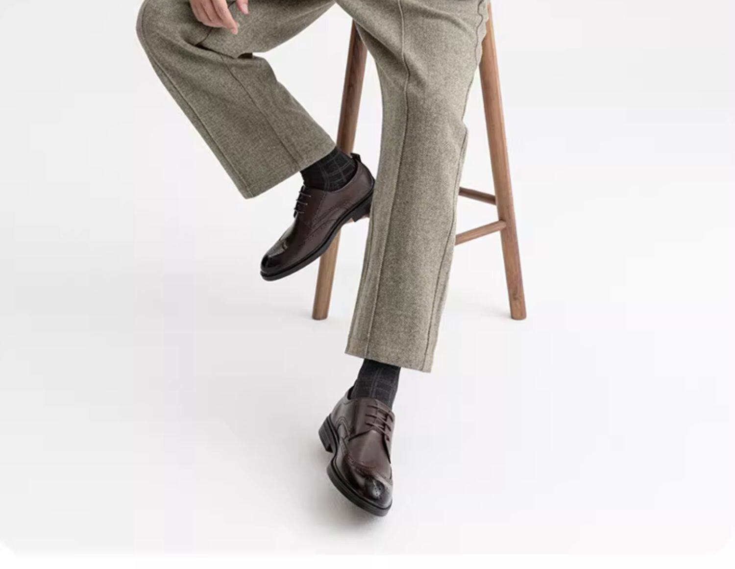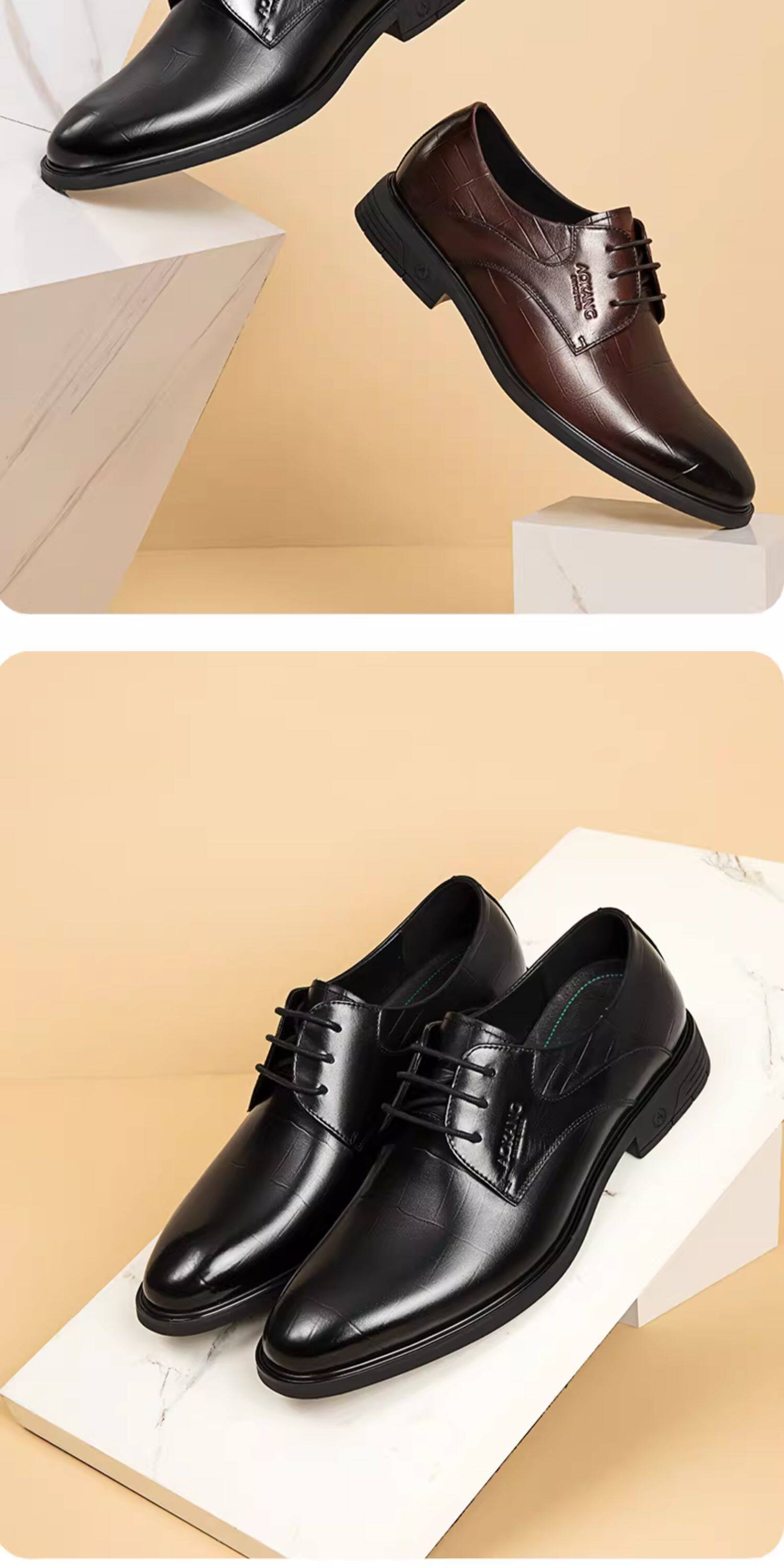 Aokang Men's Shoes for Spring and Autumn, British Style Fashion Plaid Business Formal Leather Shoes, Genuine Leather, Comfortable, Height-Increasing Groom's Wedding Shoes