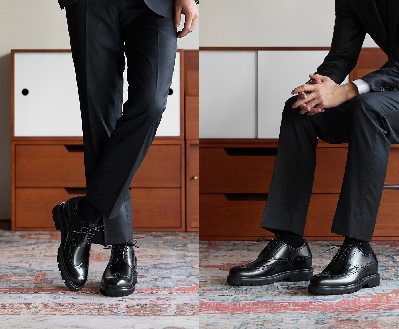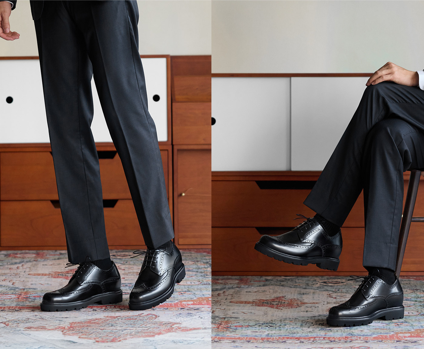 【Increase Height by Approximately 7.2Cm】Thomwills Men's Leather Shoes with Thick Soles, Casual British Brogue Business Derby Shoes for Men