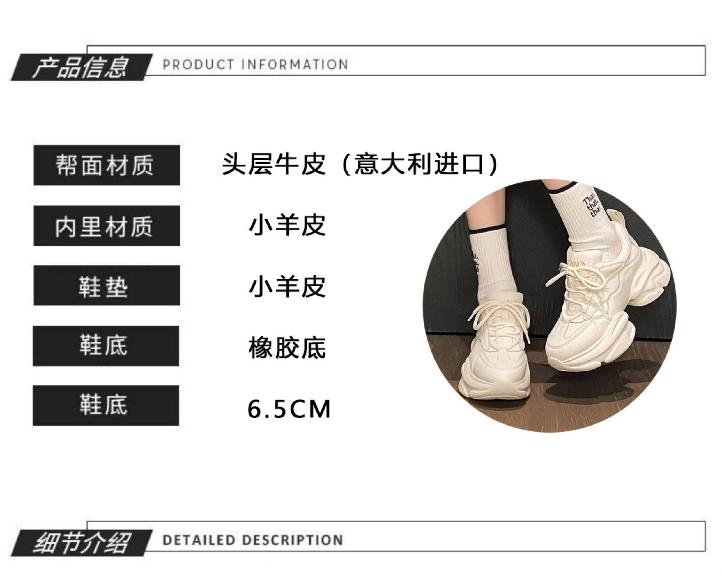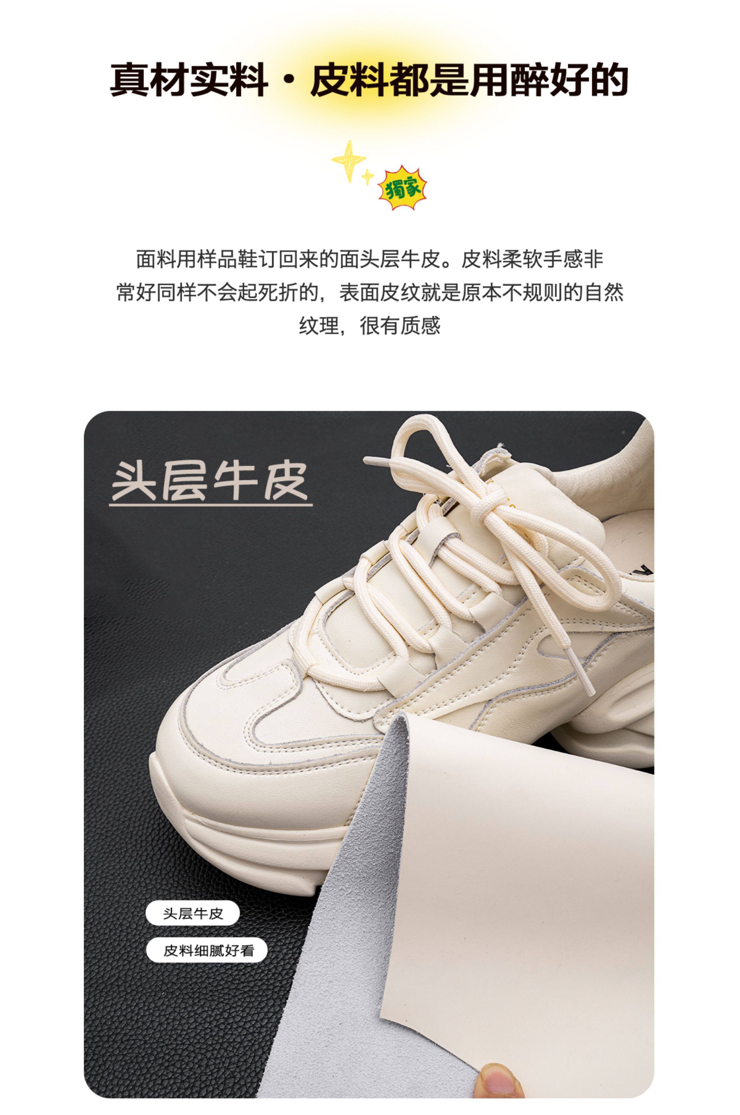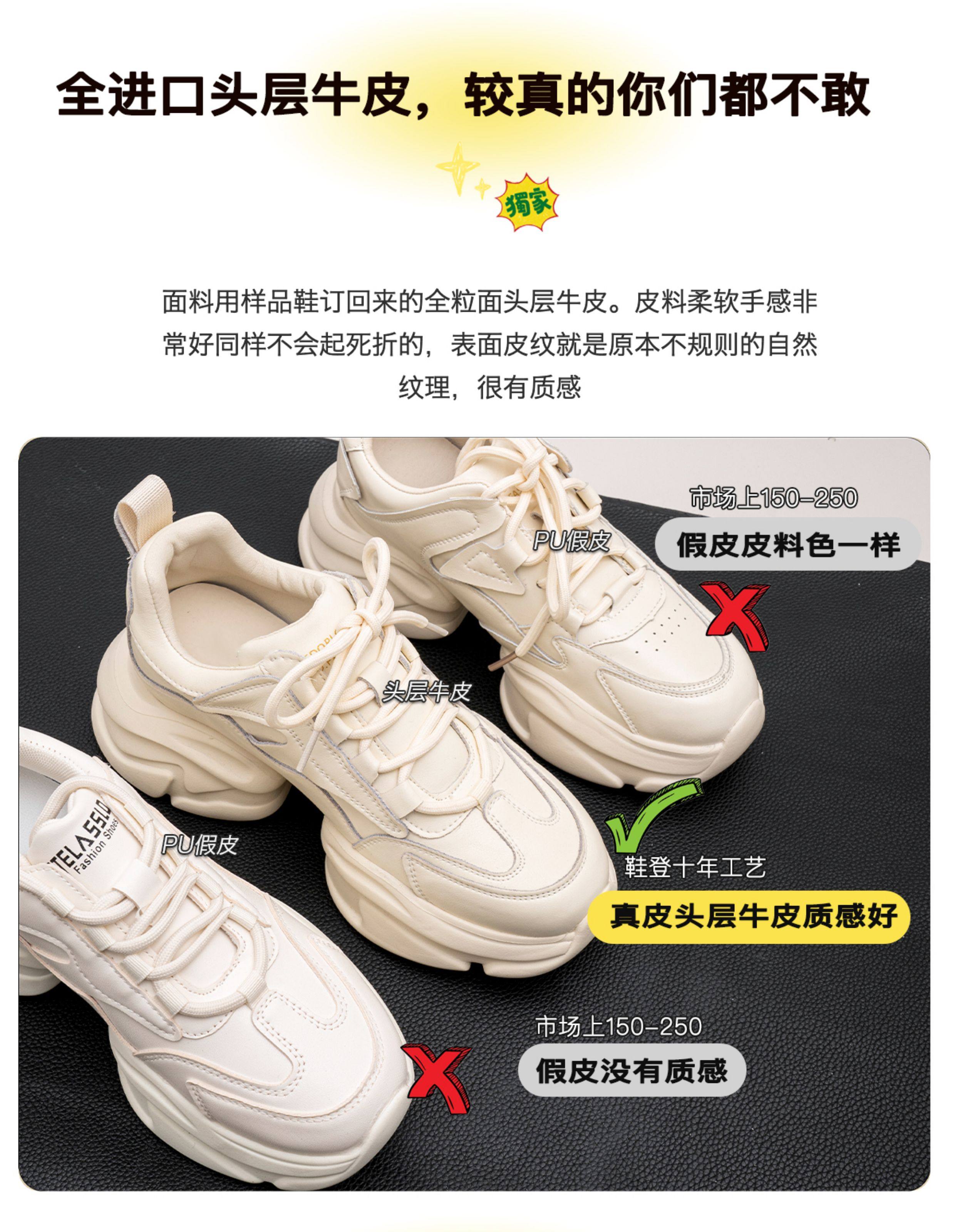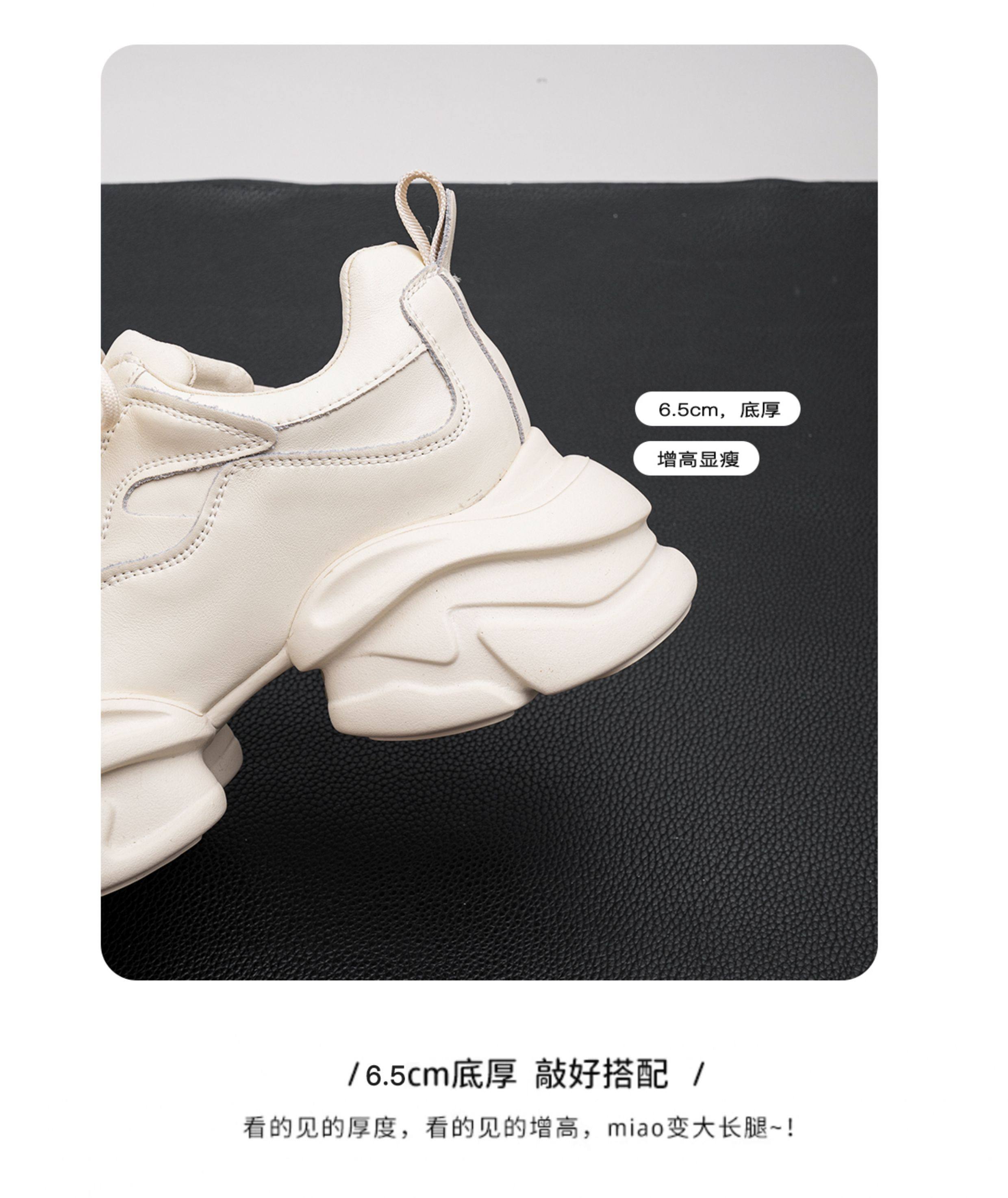 Hong Kong Genuine Leather Dad Shoes for Women, Ins 2025 Spring and Autumn, Super Popular Casual Versatile Thick-Soled Platform Casual Sneakers