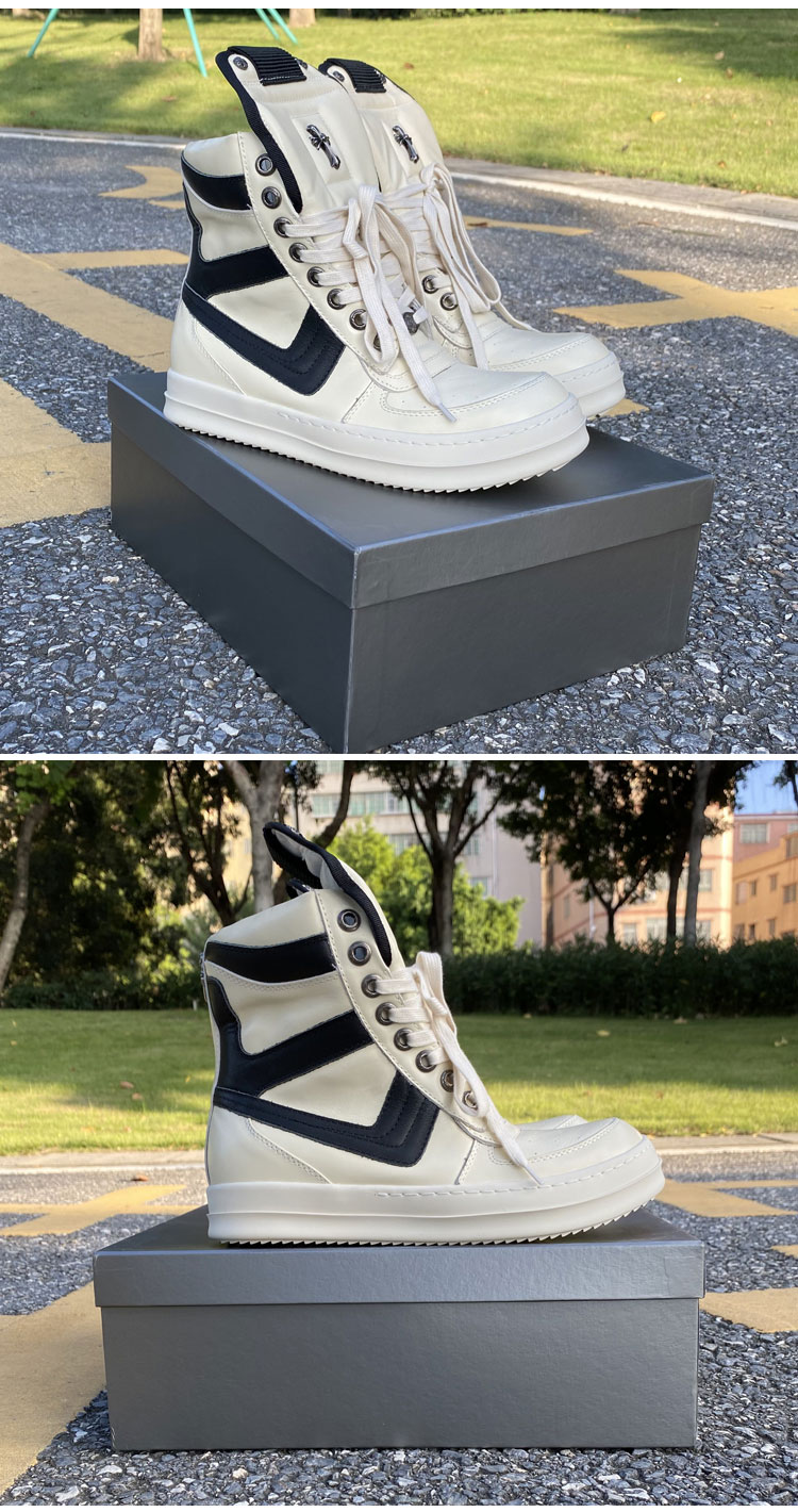 RO disabled inverted triangle big hook high top shoes trendy men's shoes leather skate shoes Thick Sole Casual short boots Women's Couple