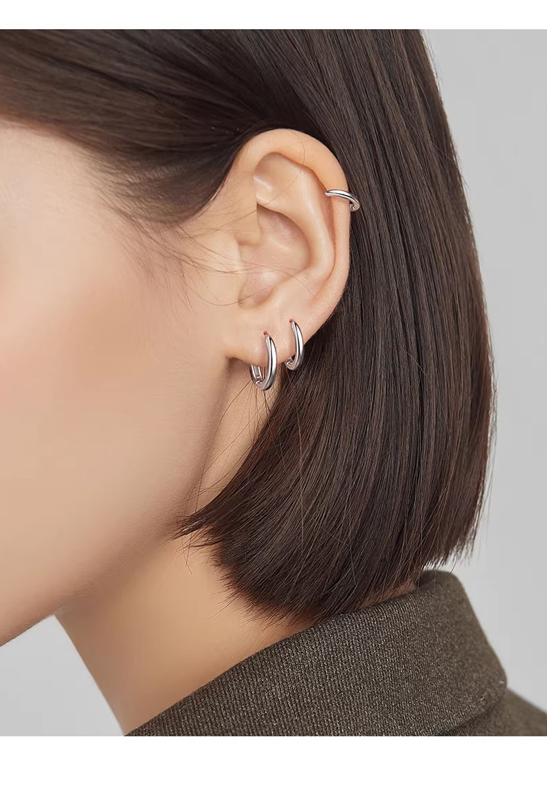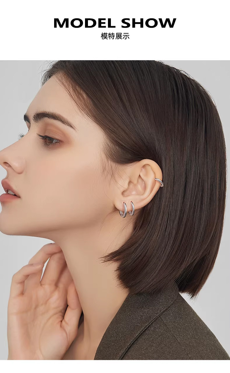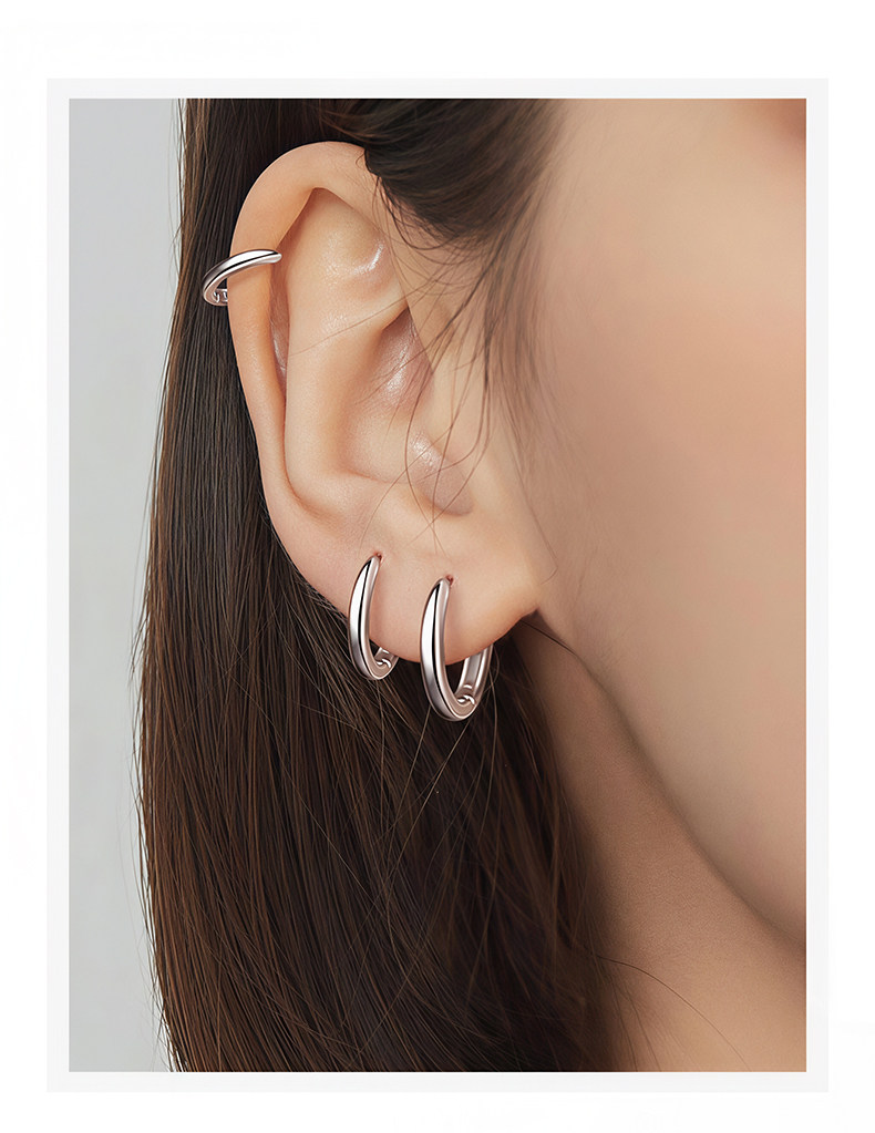 999 Pure Silver Earrings for Women, Hoop Style, High-End Feel, ins Style Ear Bone Studs, No Need to Remove for Sleeping, Ear Piercing Care, Ear Studs, Ear Hoops, Ear Accessories