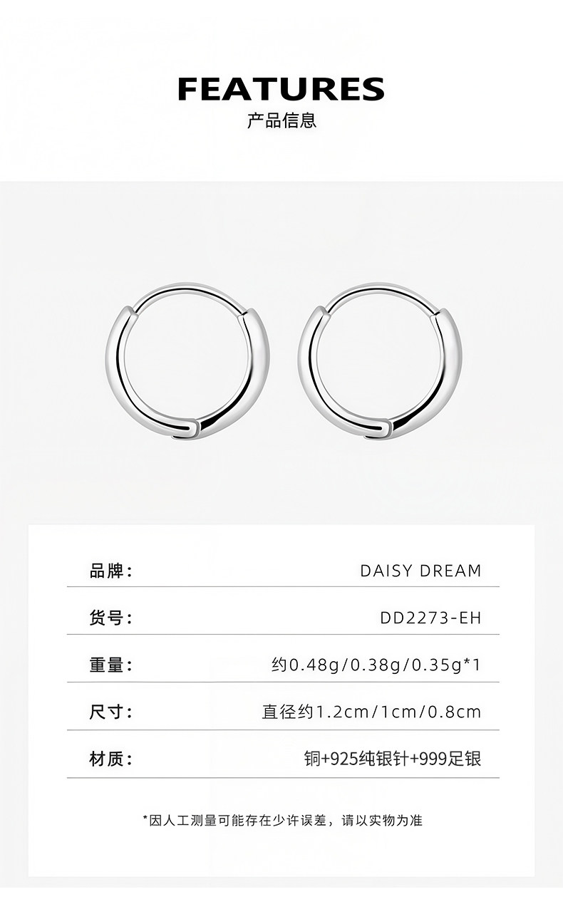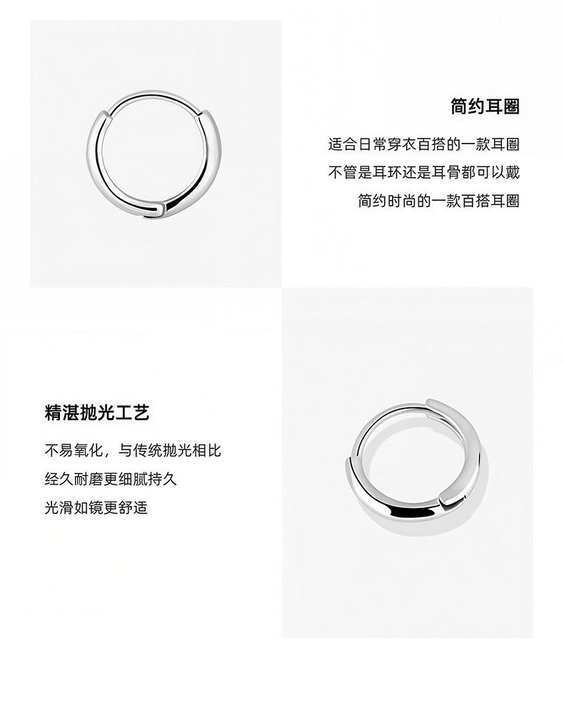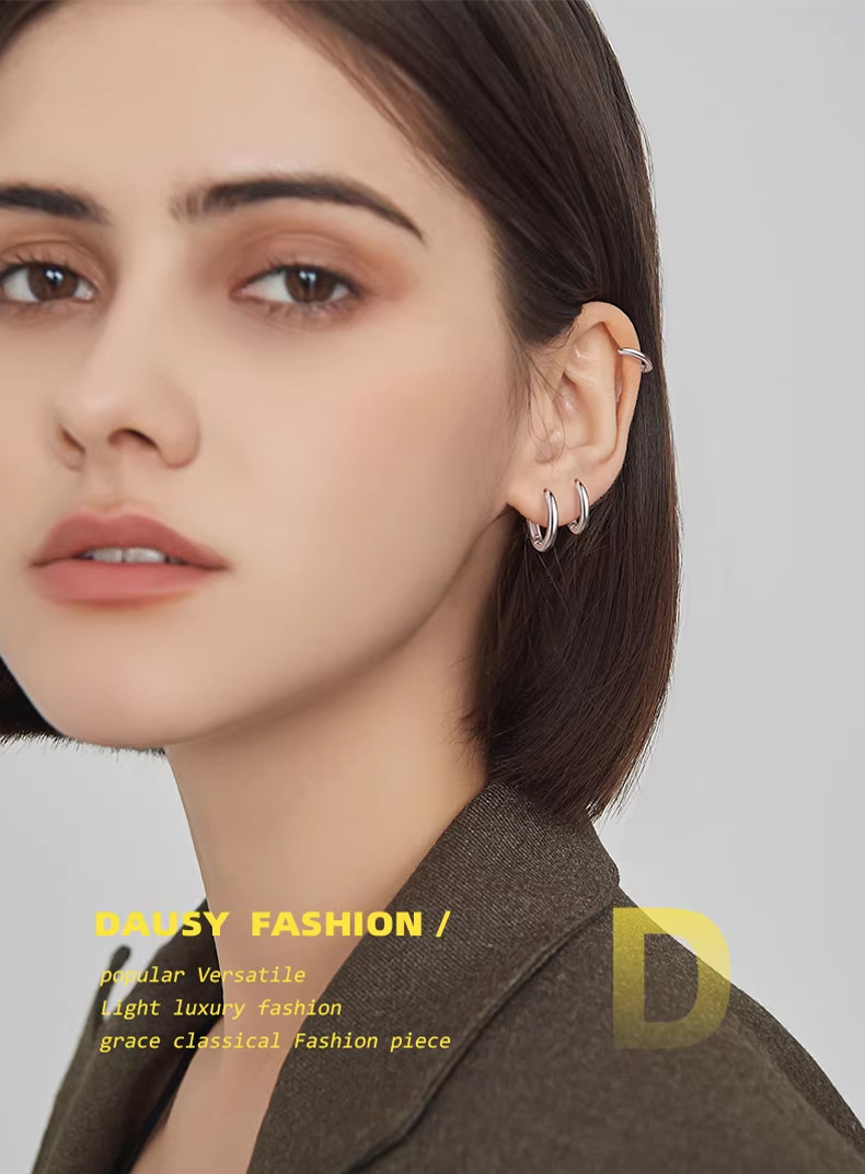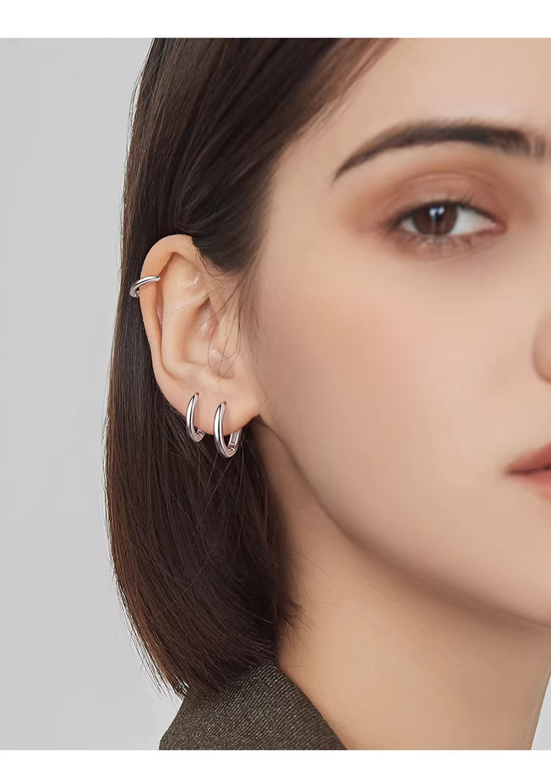 999 Pure Silver Earrings for Women, Hoop Style, High-End Feel, ins Style Ear Bone Studs, No Need to Remove for Sleeping, Ear Piercing Care, Ear Studs, Ear Hoops, Ear Accessories