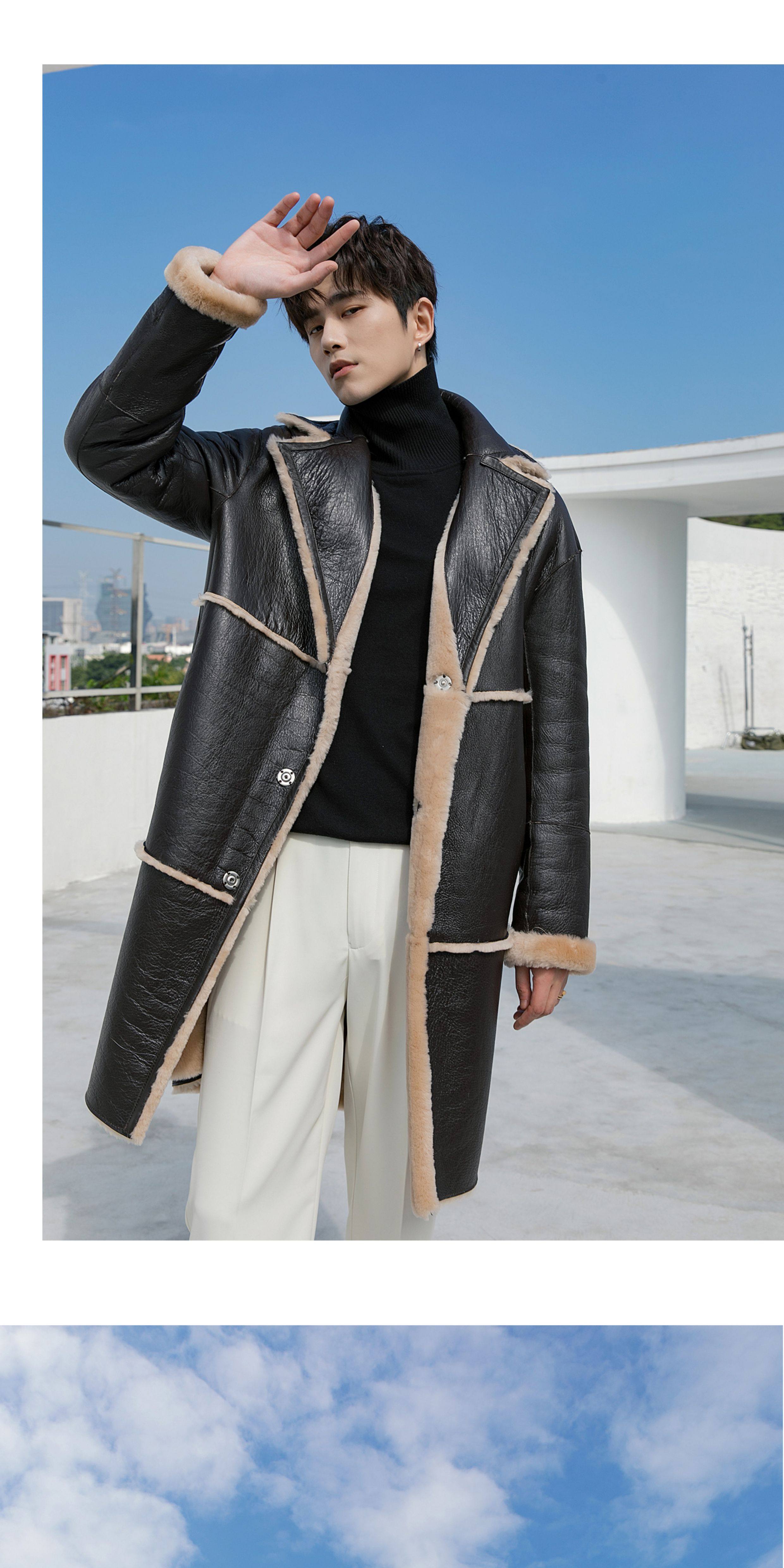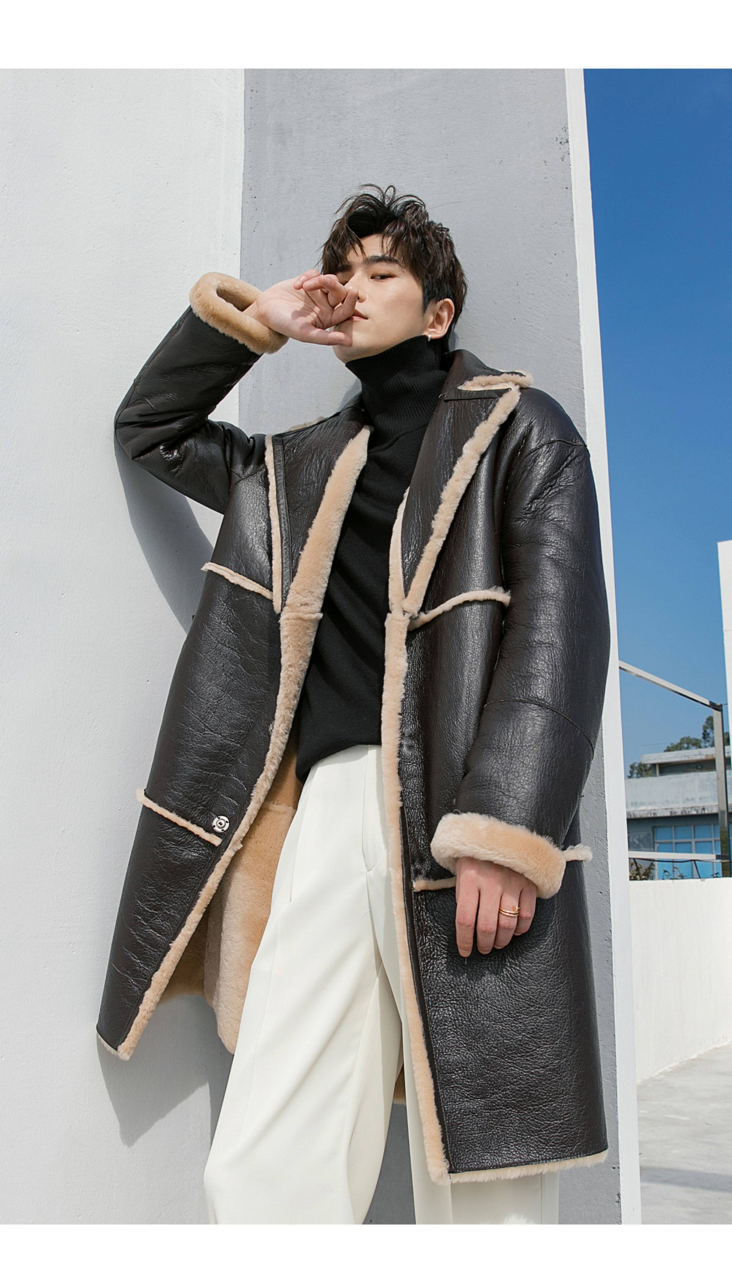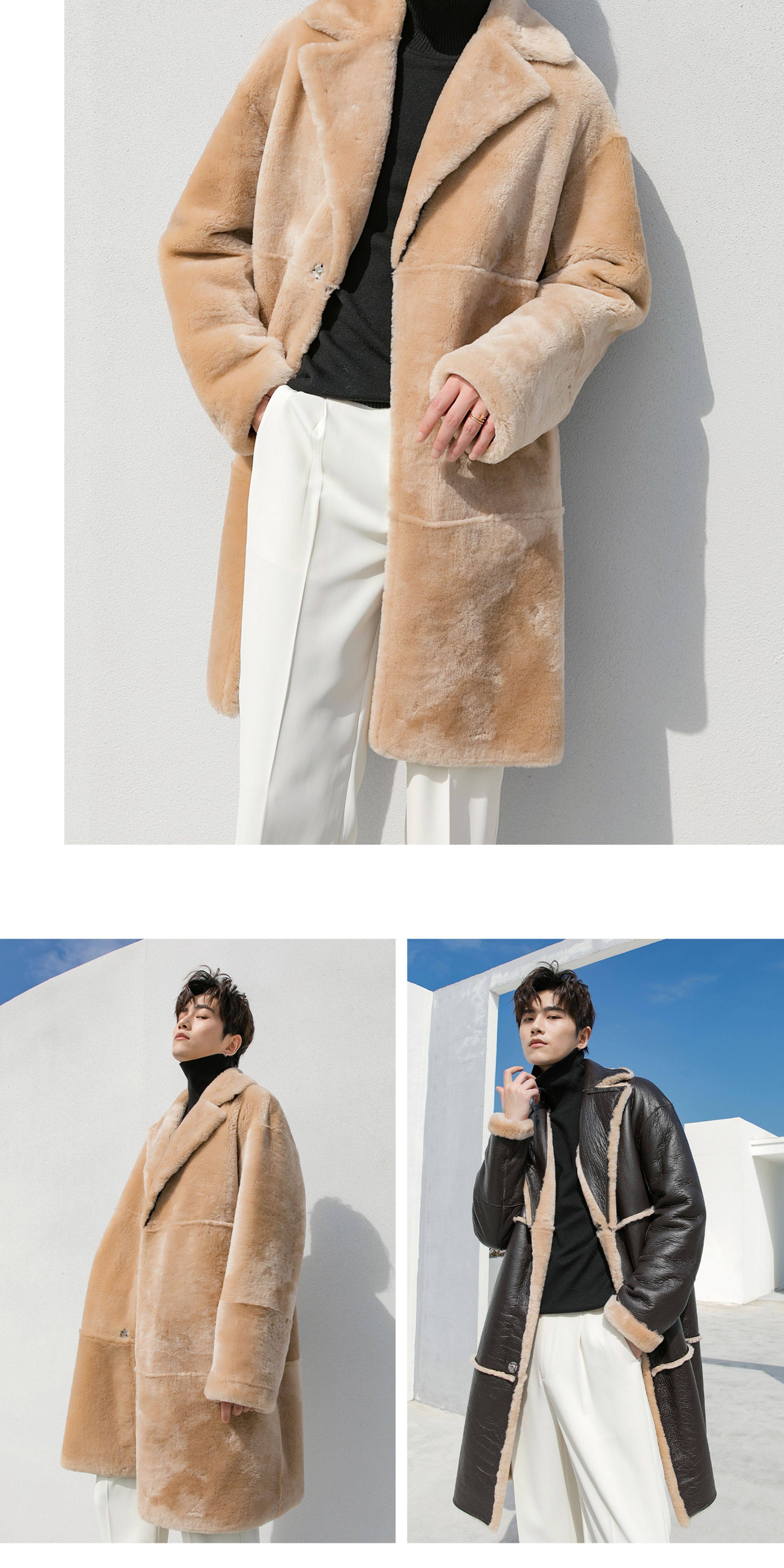 Men's Mid-Length Shearling Coat 2025 Winter Lamb Wool Genuine Leather Fur Coat Reversible Leather Jacket