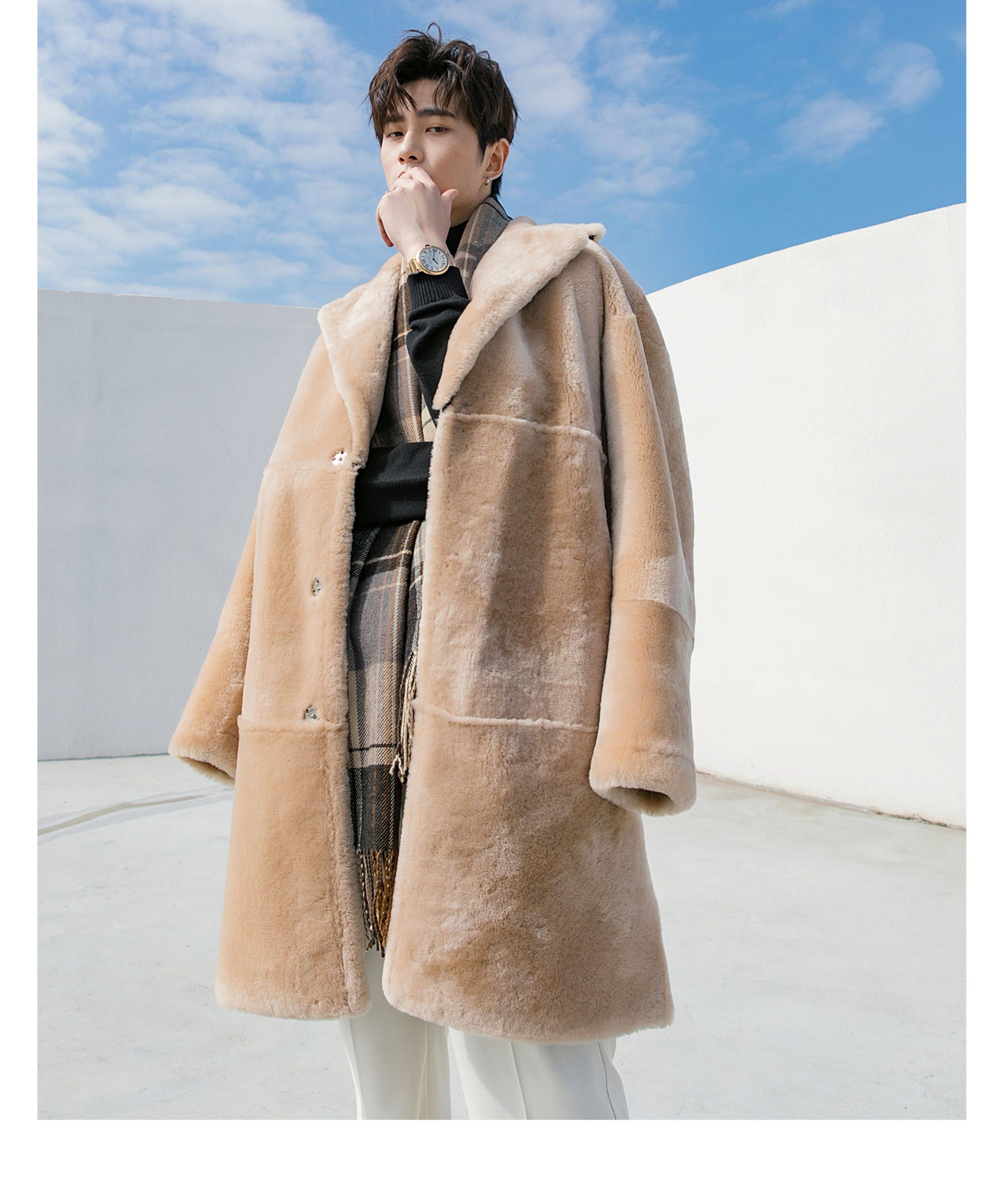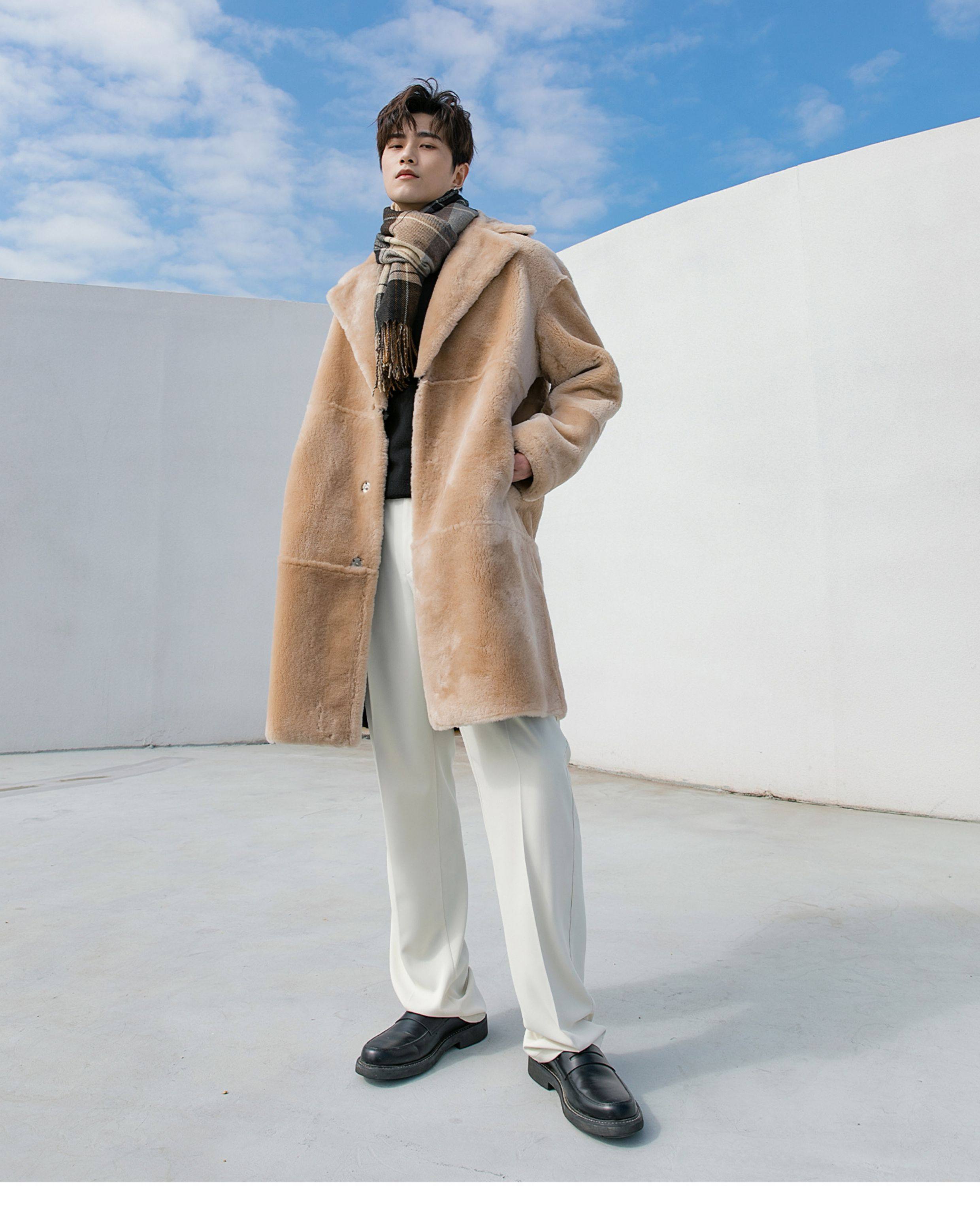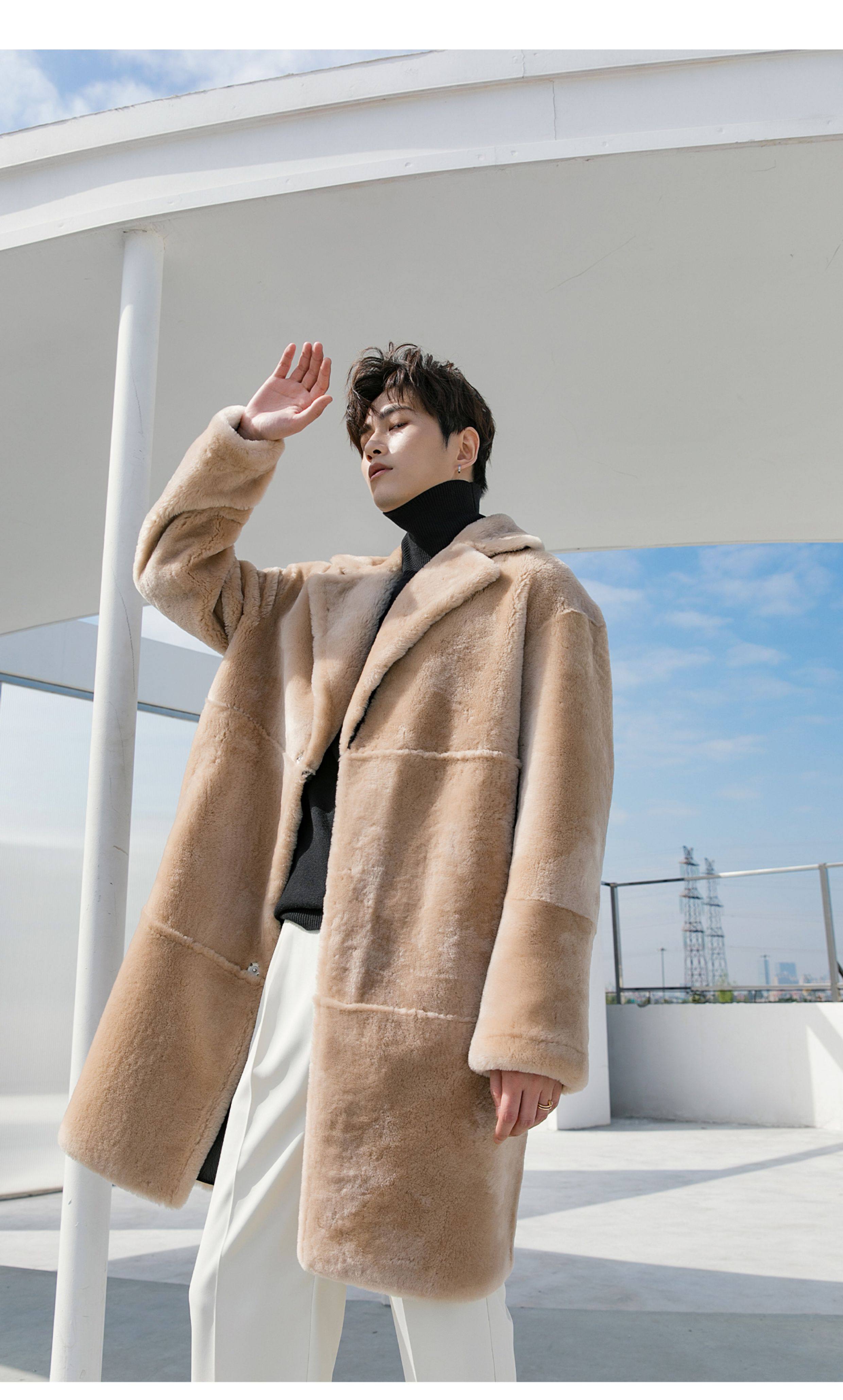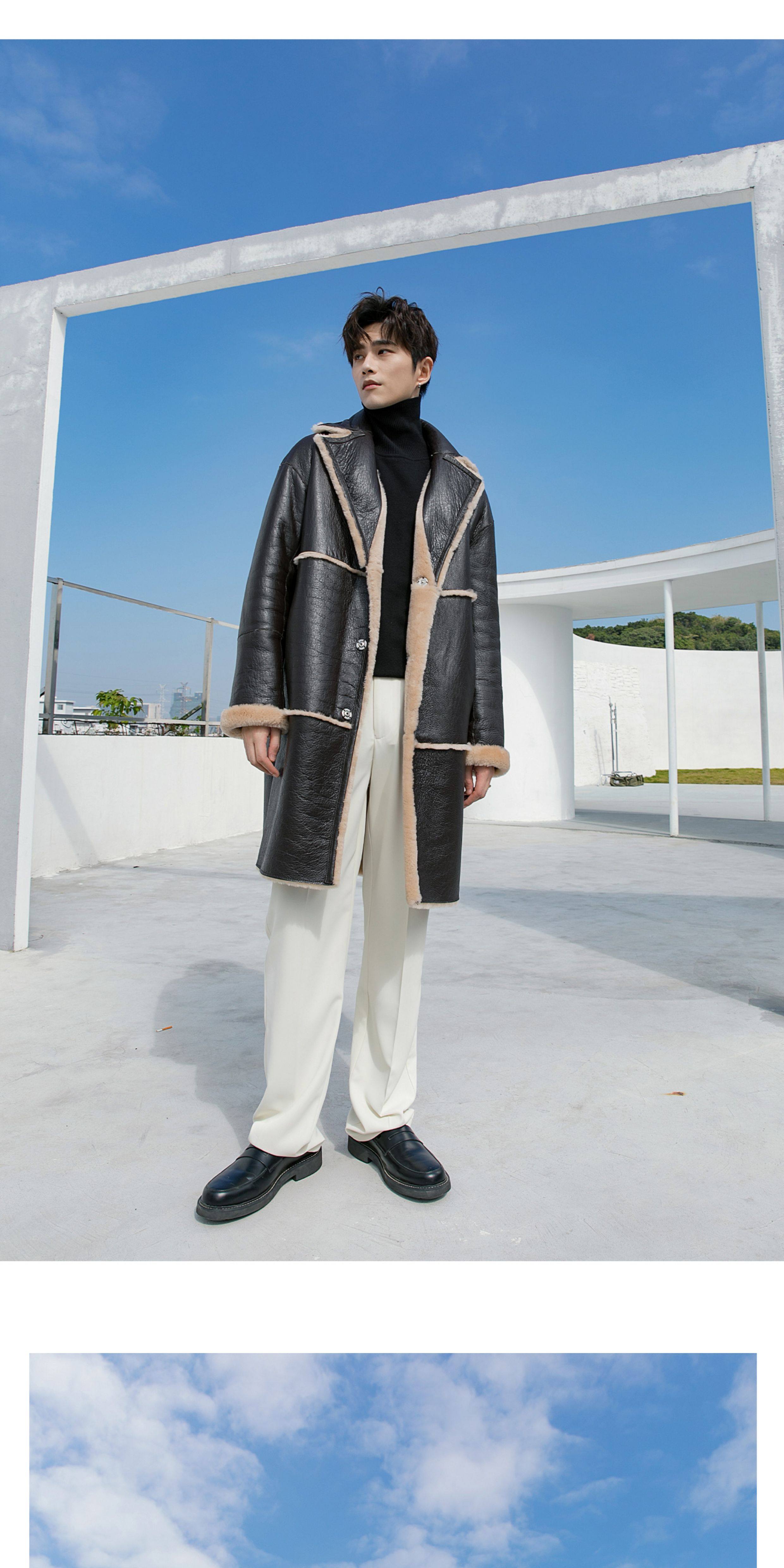 Men's Mid-Length Shearling Coat 2025 Winter Lamb Wool Genuine Leather Fur Coat Reversible Leather Jacket