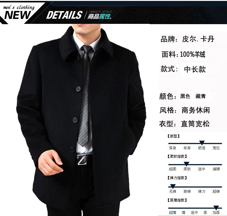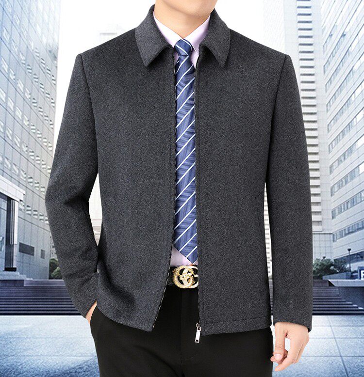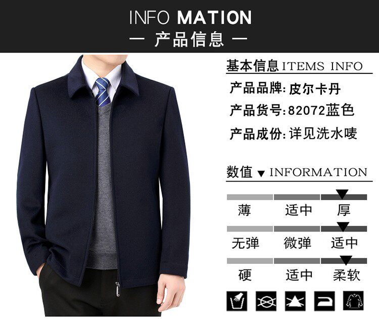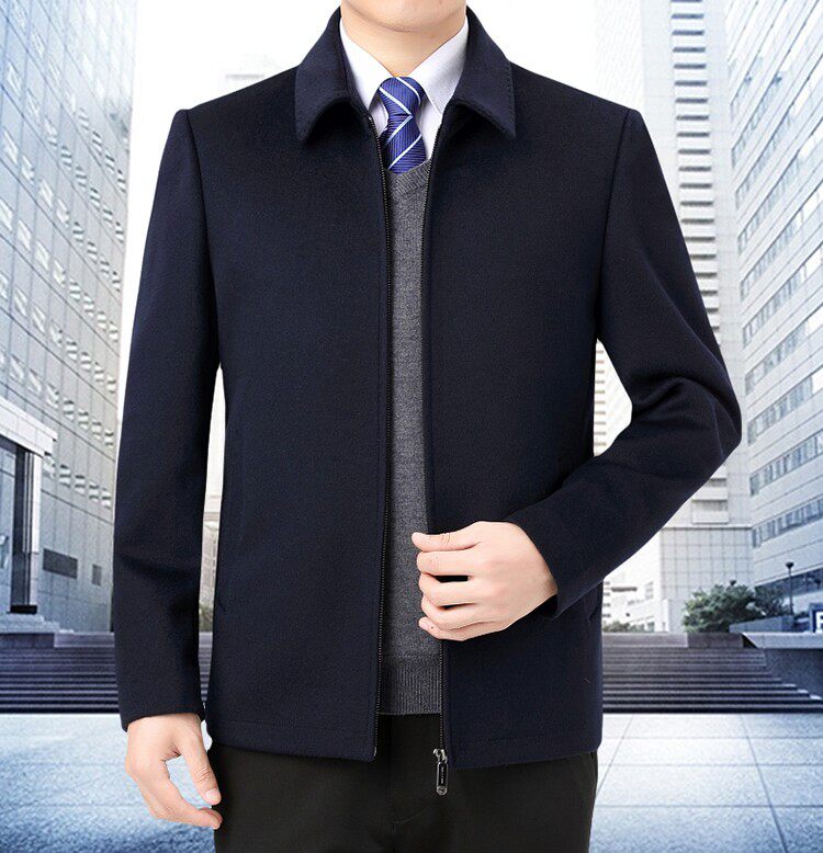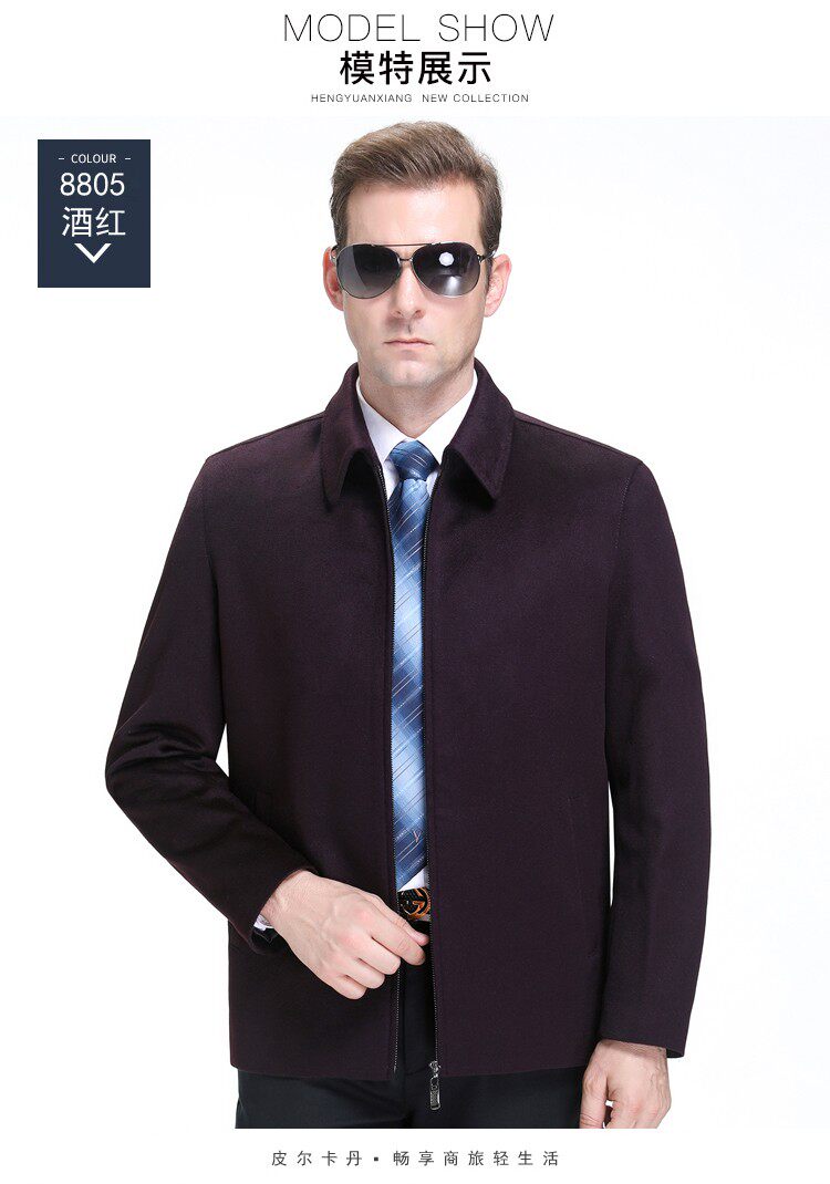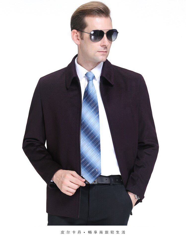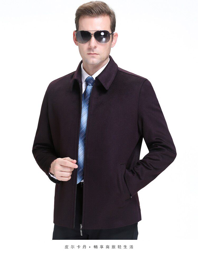 Pierre Cardin Middle-Aged and Elderly Men's Cashmere Jacket Autumn and Winter Woolen Coat Dad's Short Cashmere Coat