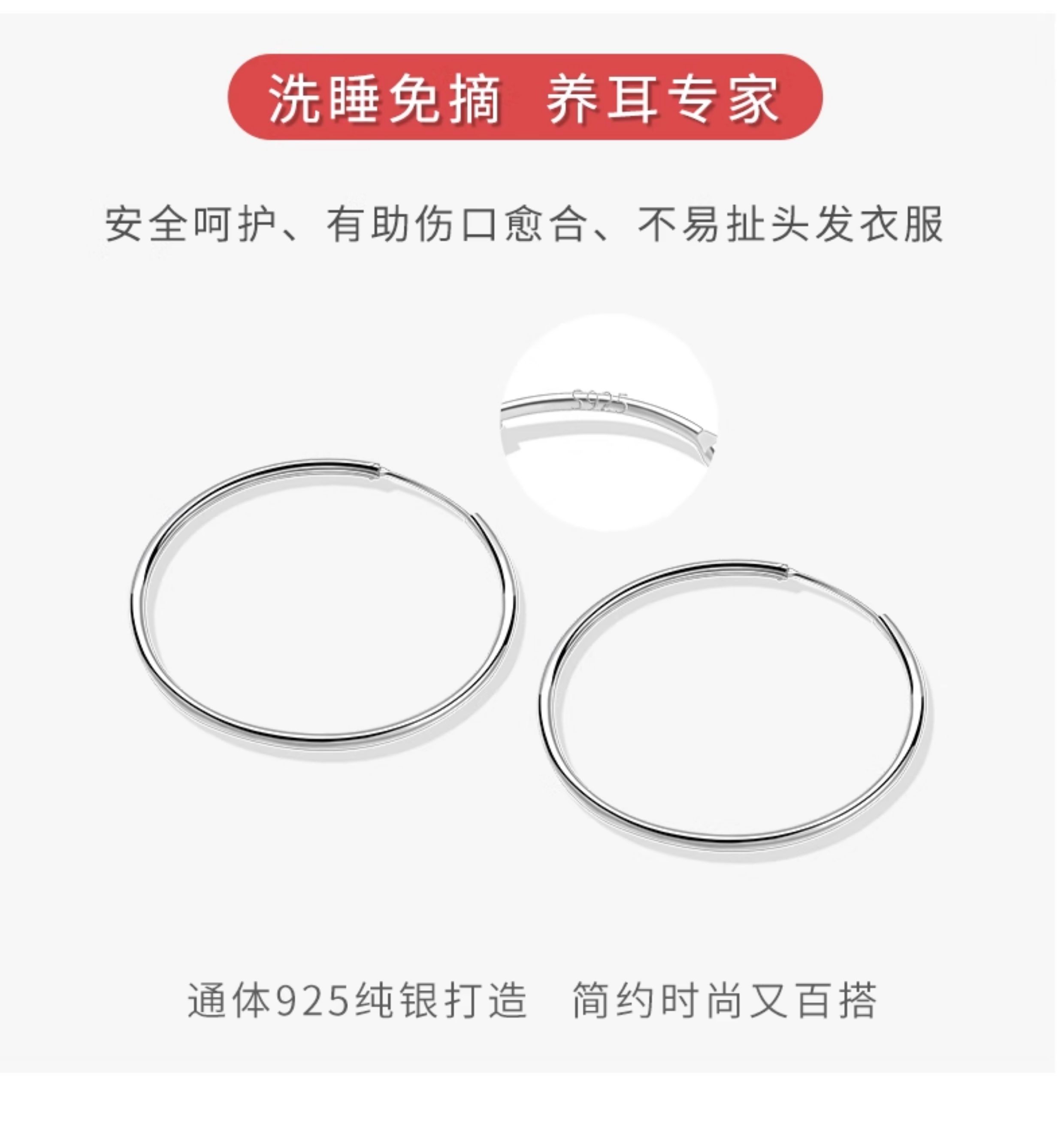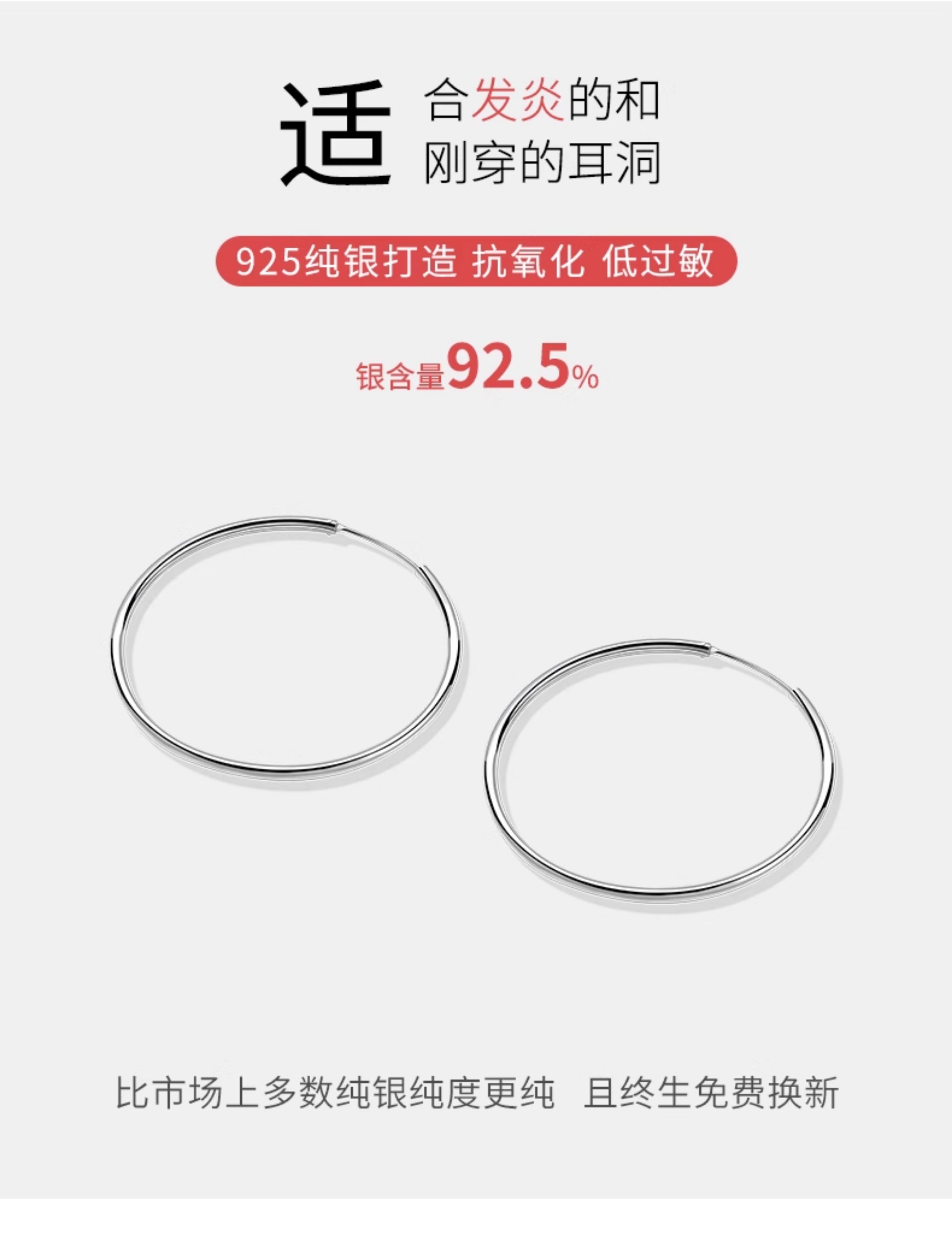 S925 Sterling Silver Large Circle Plain Hoop Earrings Women's Earrings Internet Celebrity Hot Style Elegant Earrings 2025 New Trendy Earrings