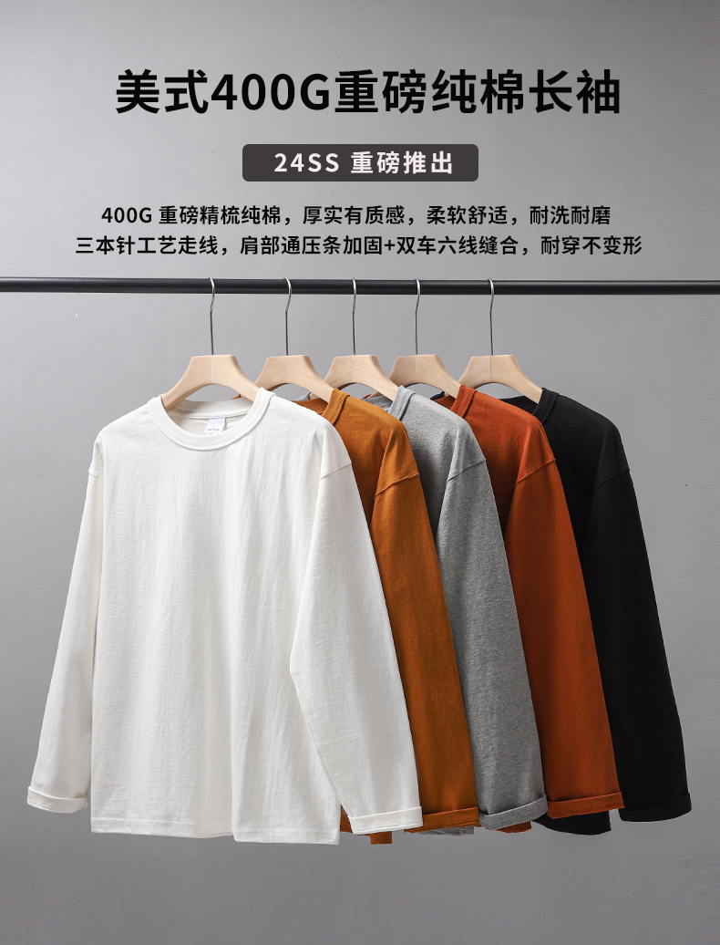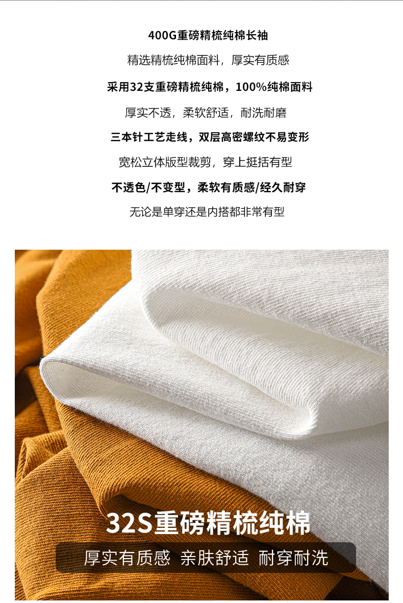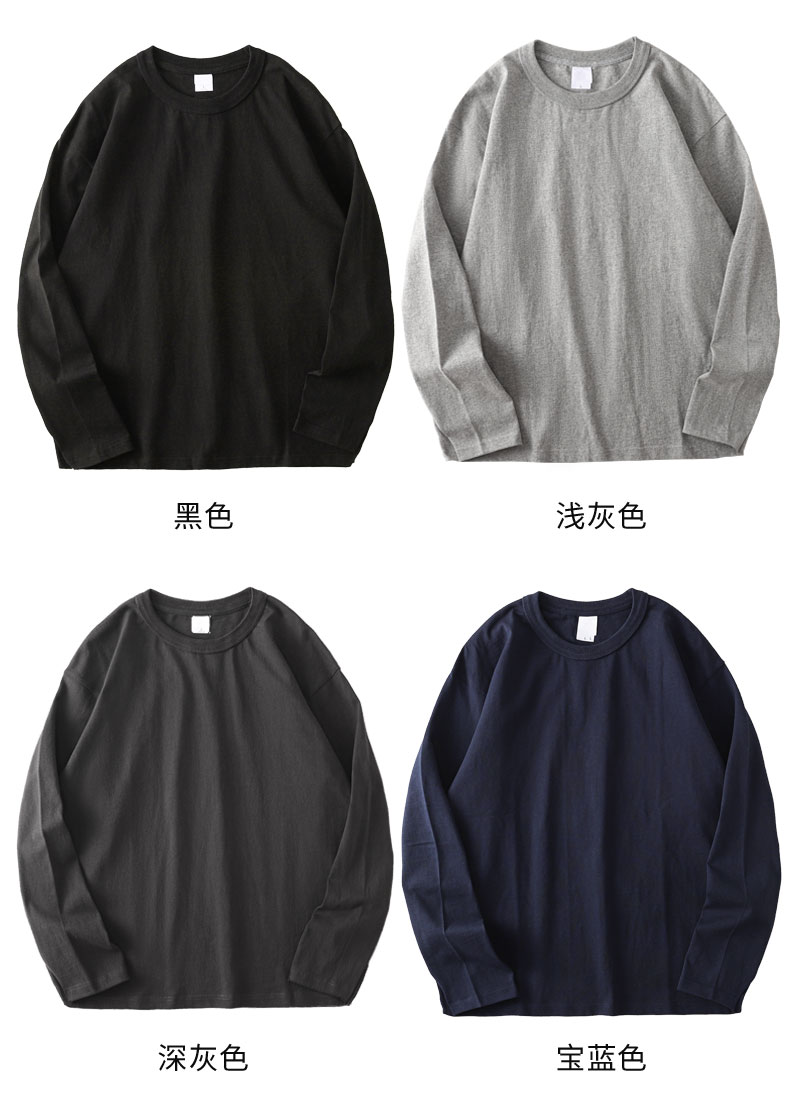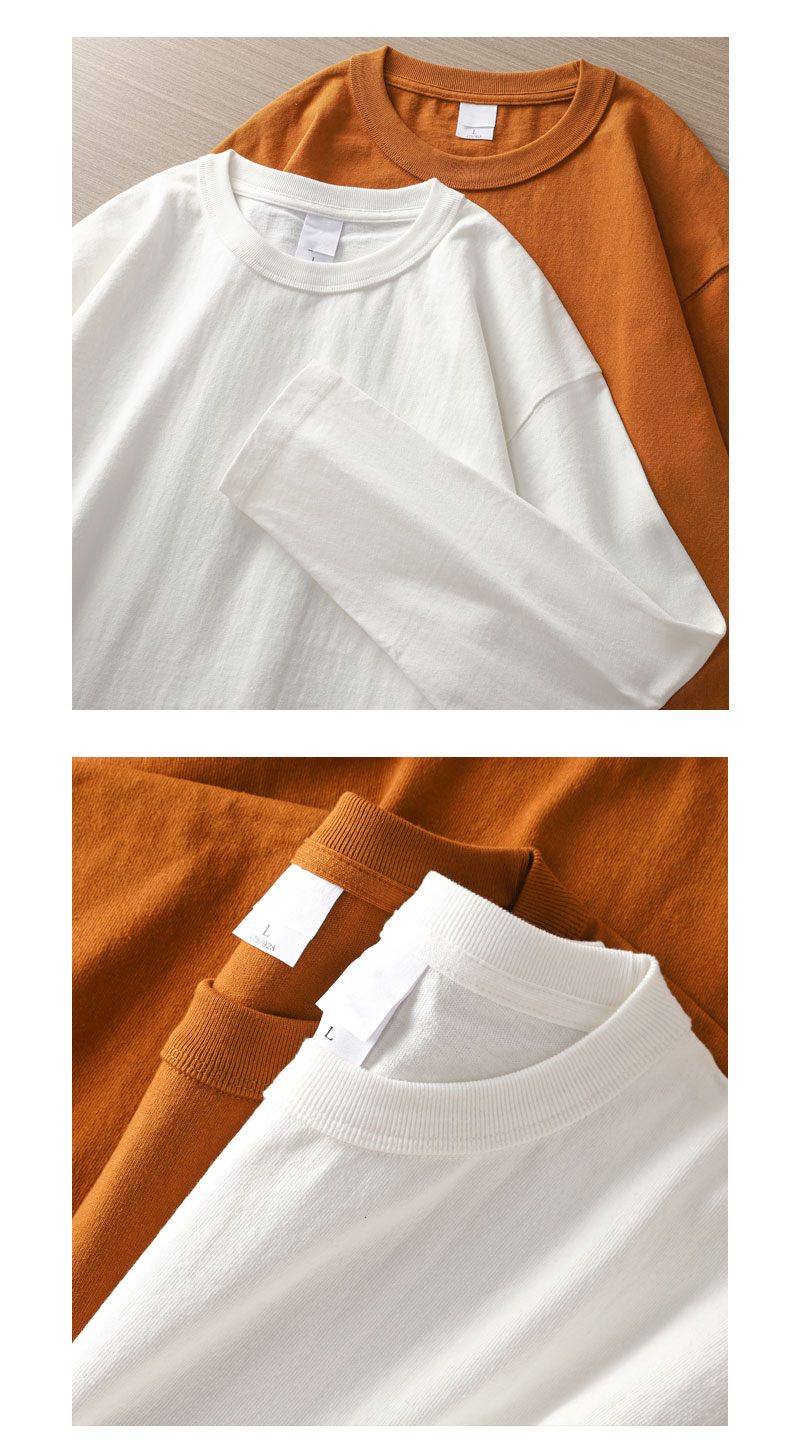 Three Needles 400g Heavy weight Long sleeves T-Shirt Men's pure cotton White Bottoming Shirt Men American Loose Sweatshirt Autumn and Winter
