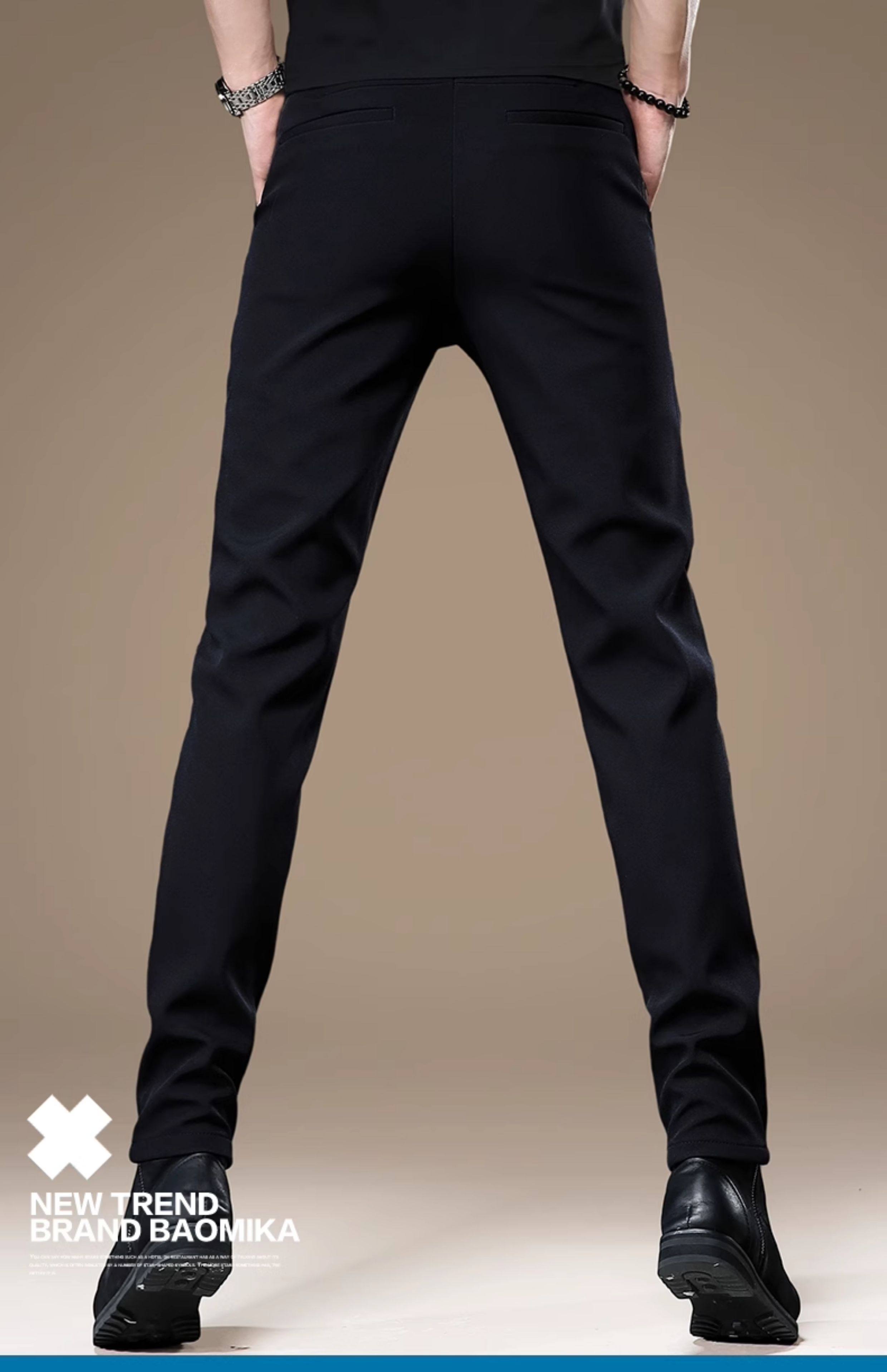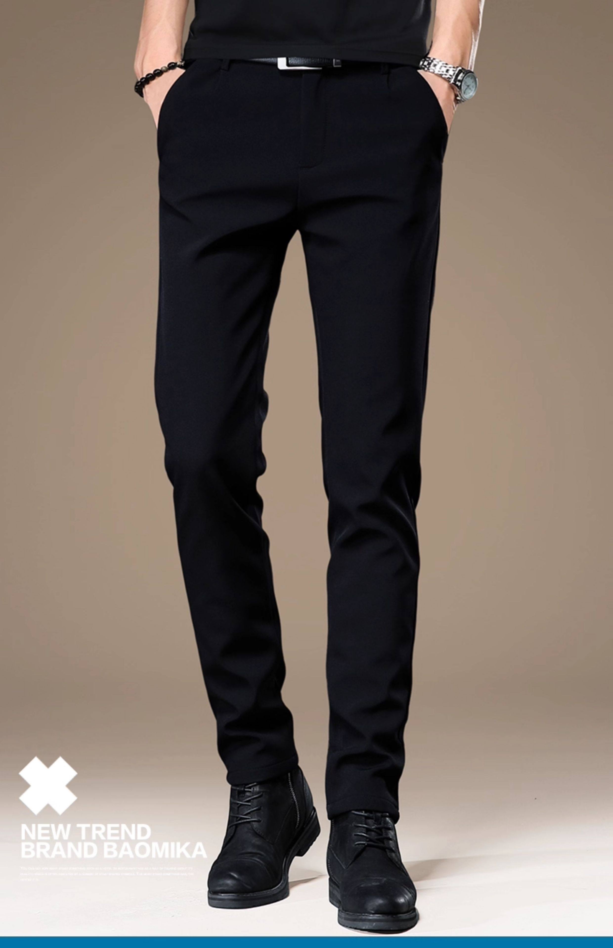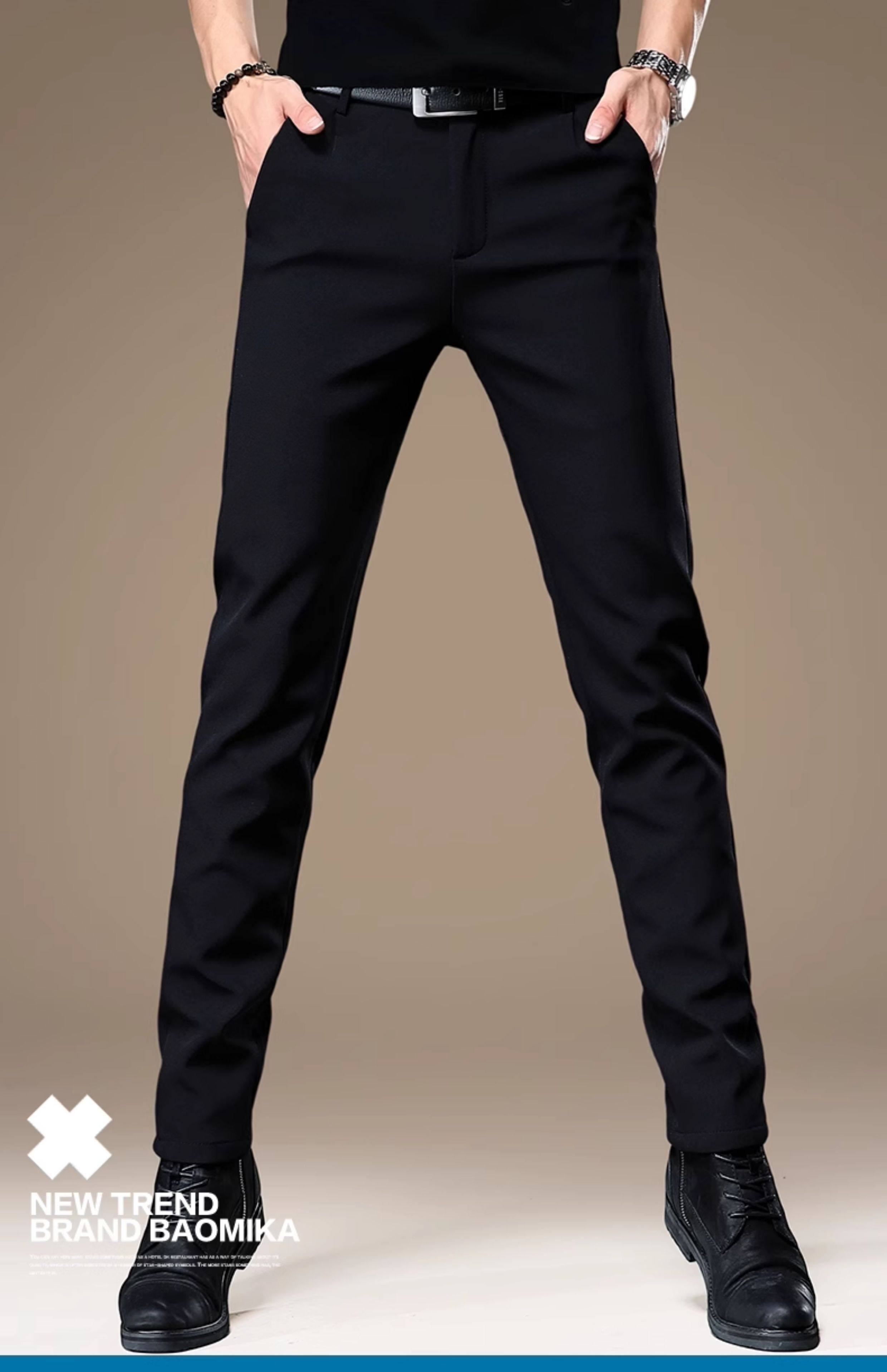 High-End Korean Style Men's Dress Pants with a Premium Drape, Business Casual, Thick for Autumn and Winter, Slim Fit, Stretchy Black Casual Pants for Men