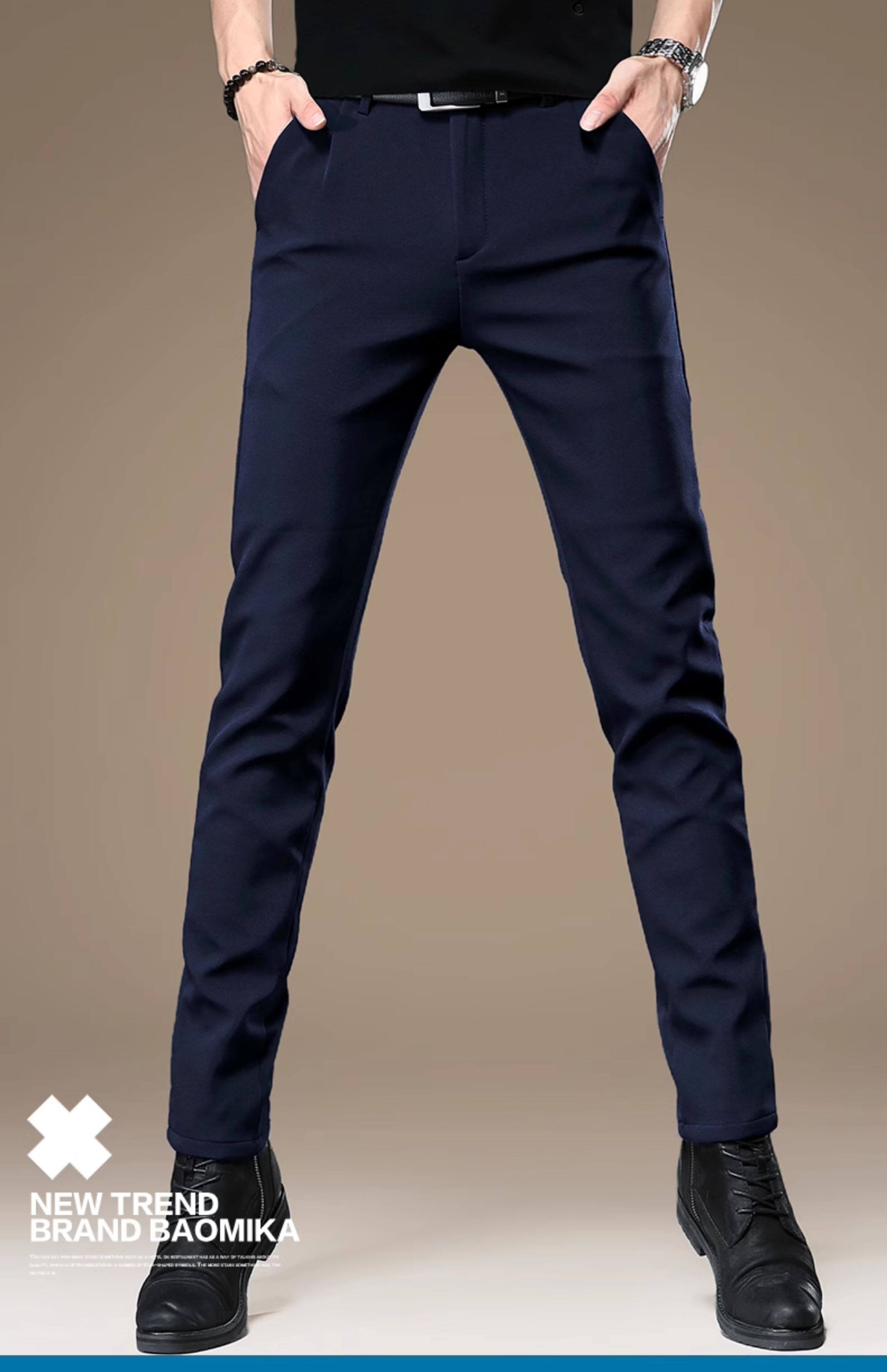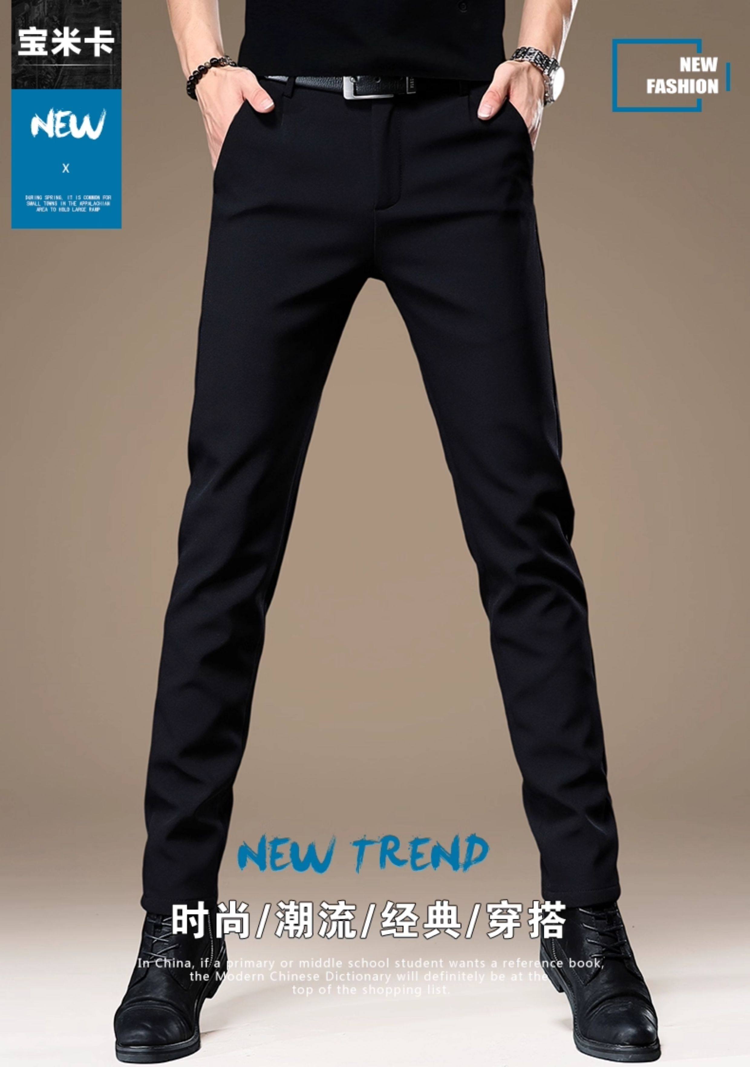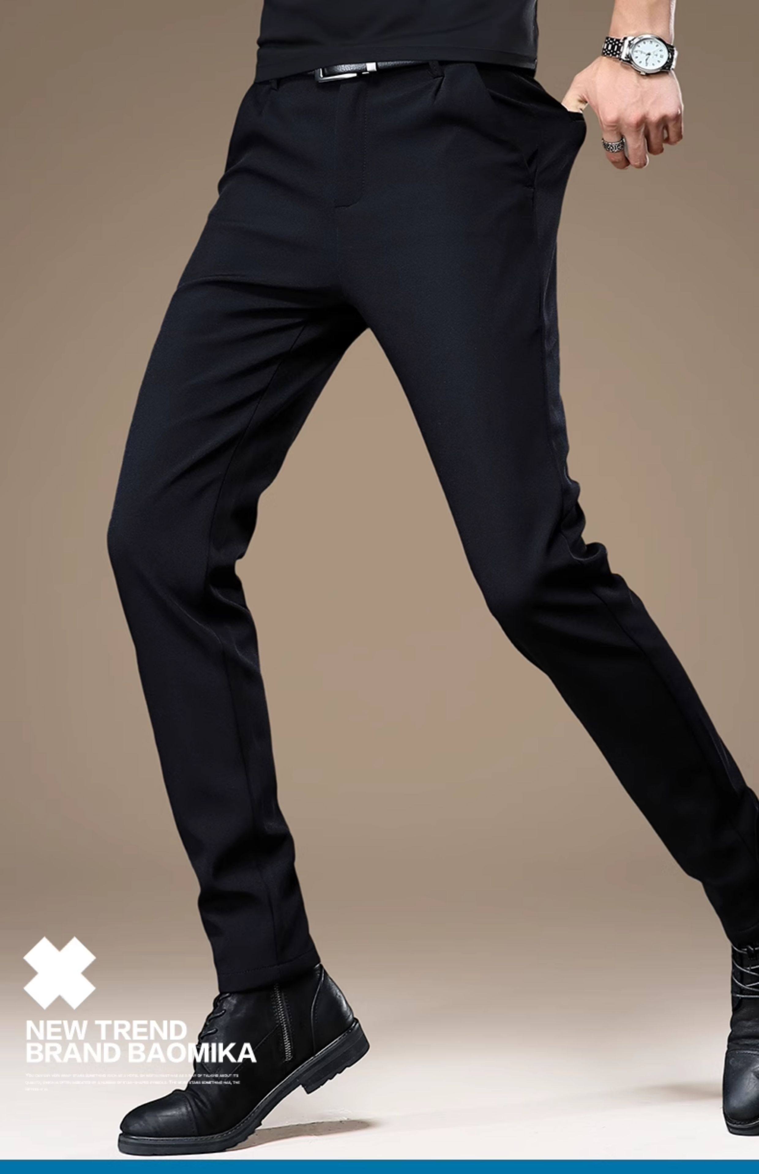 High-End Korean Style Men's Dress Pants with a Premium Drape, Business Casual, Thick for Autumn and Winter, Slim Fit, Stretchy Black Casual Pants for Men