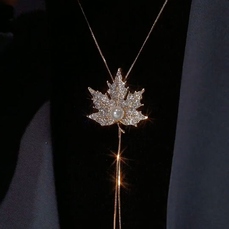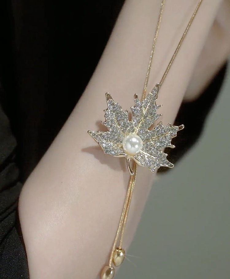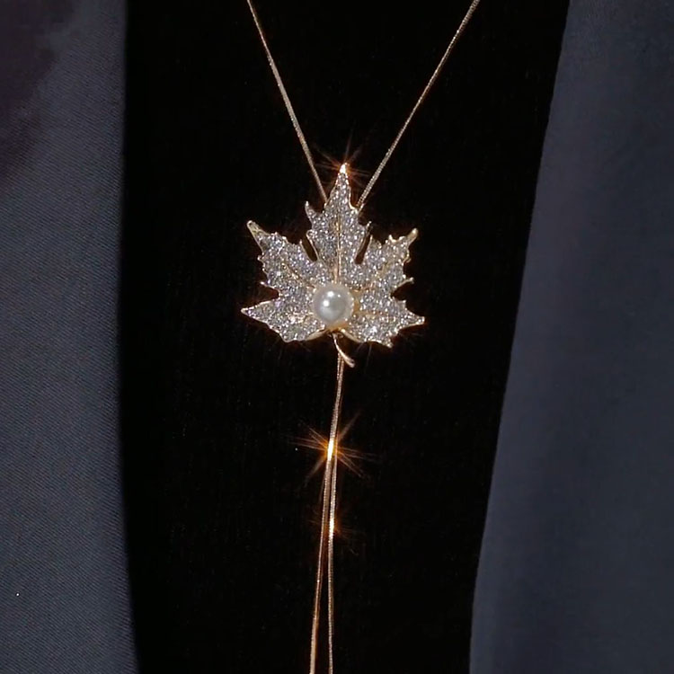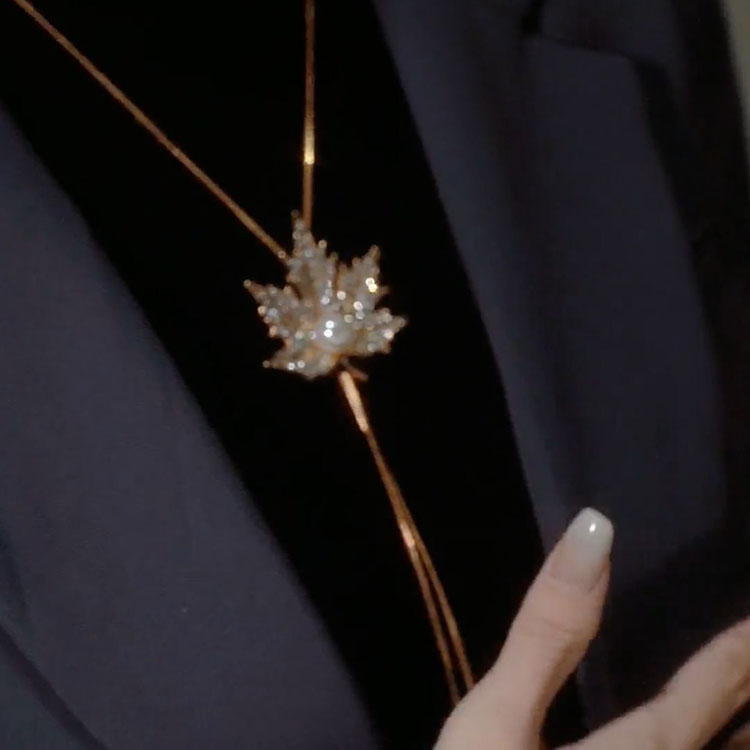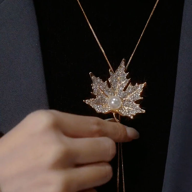 Autumn and Winter Maple Leaf Sweater Chain for Women, Long, Fashionable, Versatile Necklace Accessory, Personalized Clothing Pendant, Sweatshirt Chain for Women
