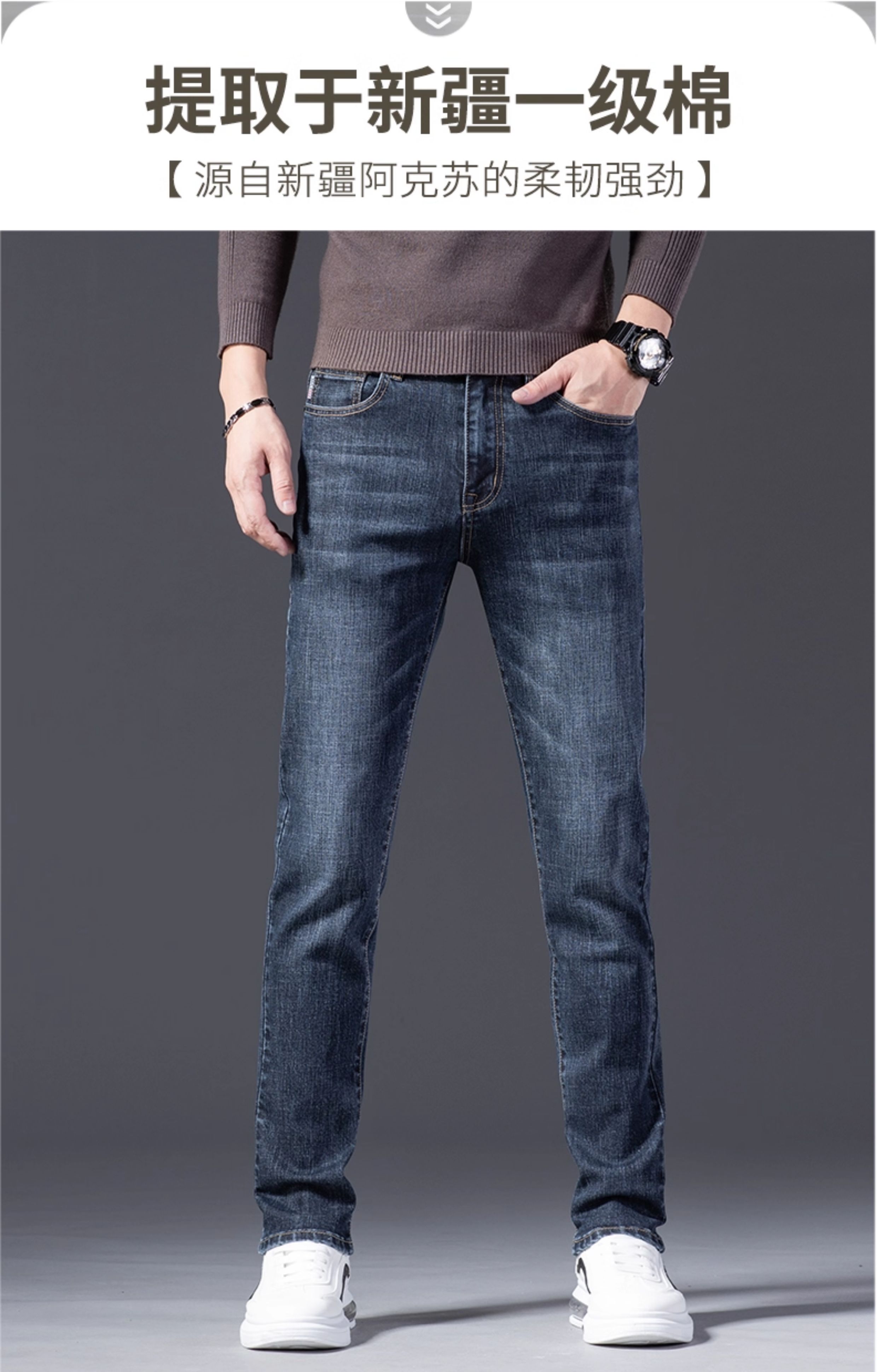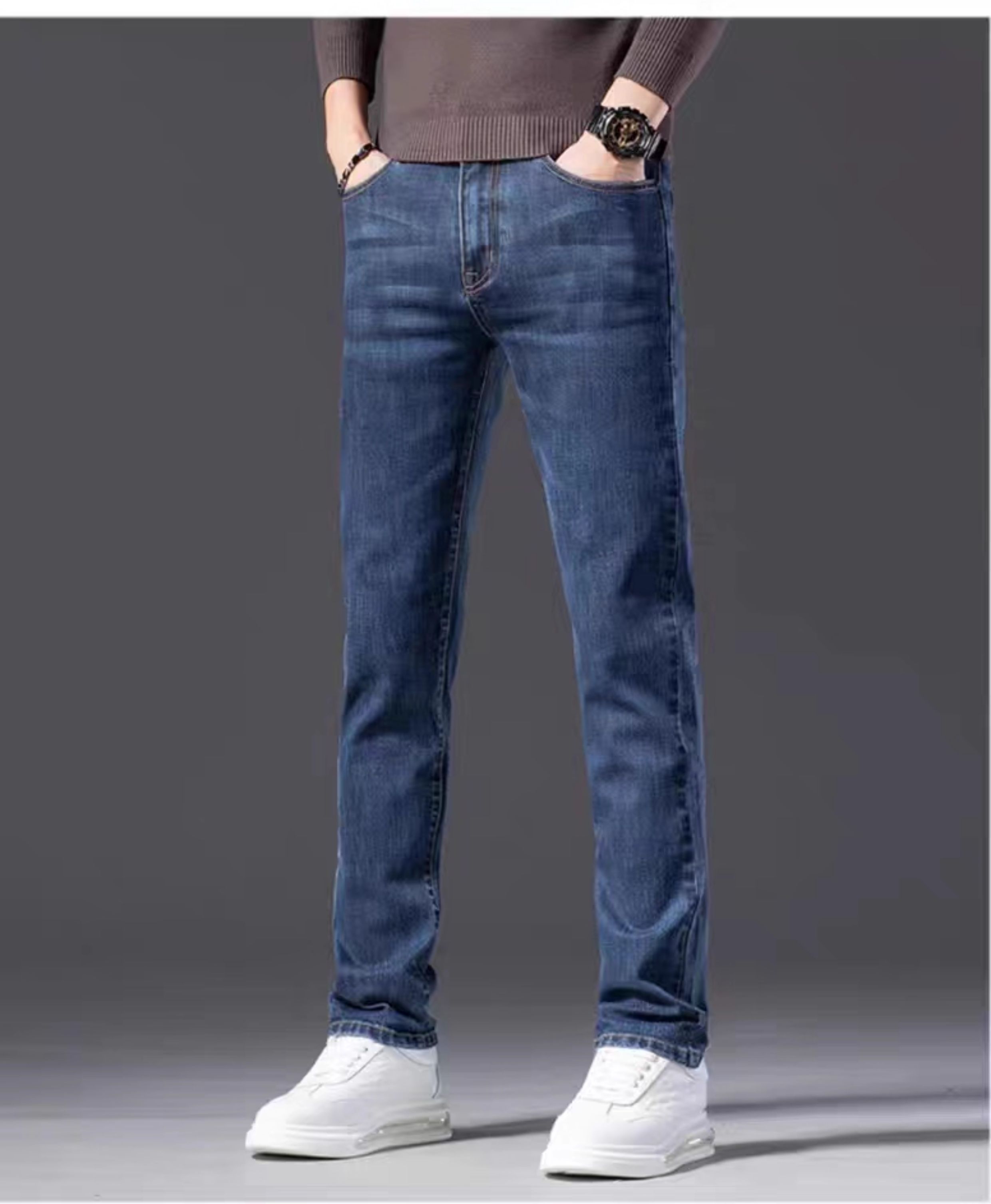 High-End Guangzhou Xintang Town Men's Jeans Autumn and Winter 2025 New Spring and Autumn Men's Straight Loose Fleece-Lined Long Pants