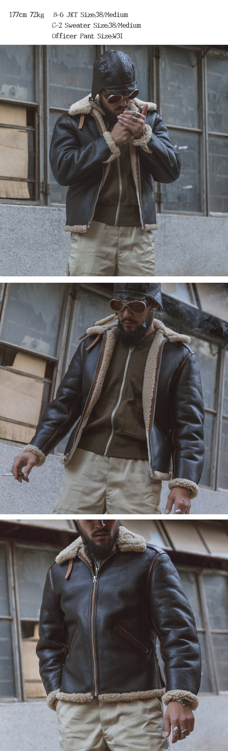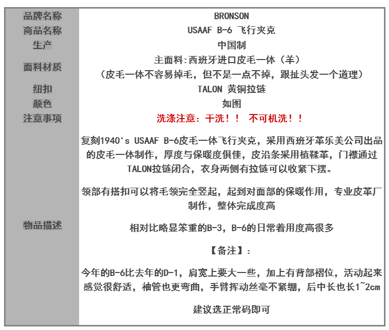 B-3是对应严寒区域的皮毛一体夹克,非常厚,穿起来较为臃肿,B-6则是中等寒冷地区的皮毛一体夹克,较B-3的厚度要薄一些(毛高短一些),着用起来较为合身,机动性也有提升,
