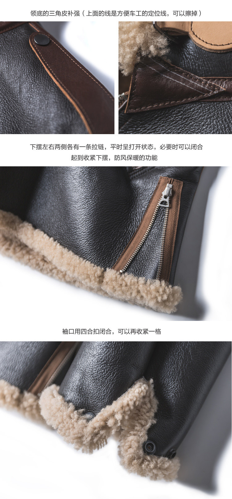 细节也由复杂变的简化,比如下摆用拉链闭合就能收紧,相对比B-3的皮带扣调节收紧,效率提高了