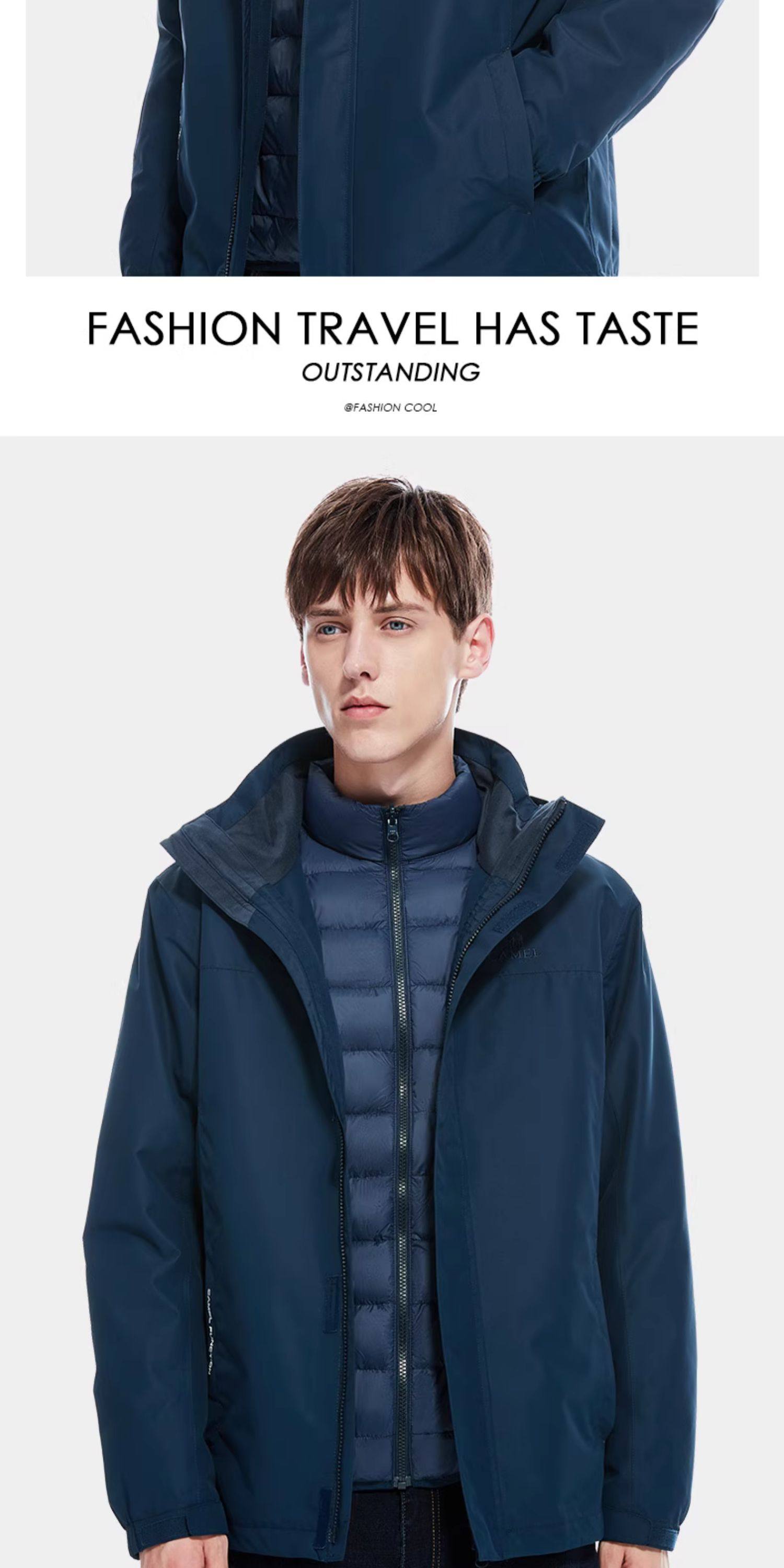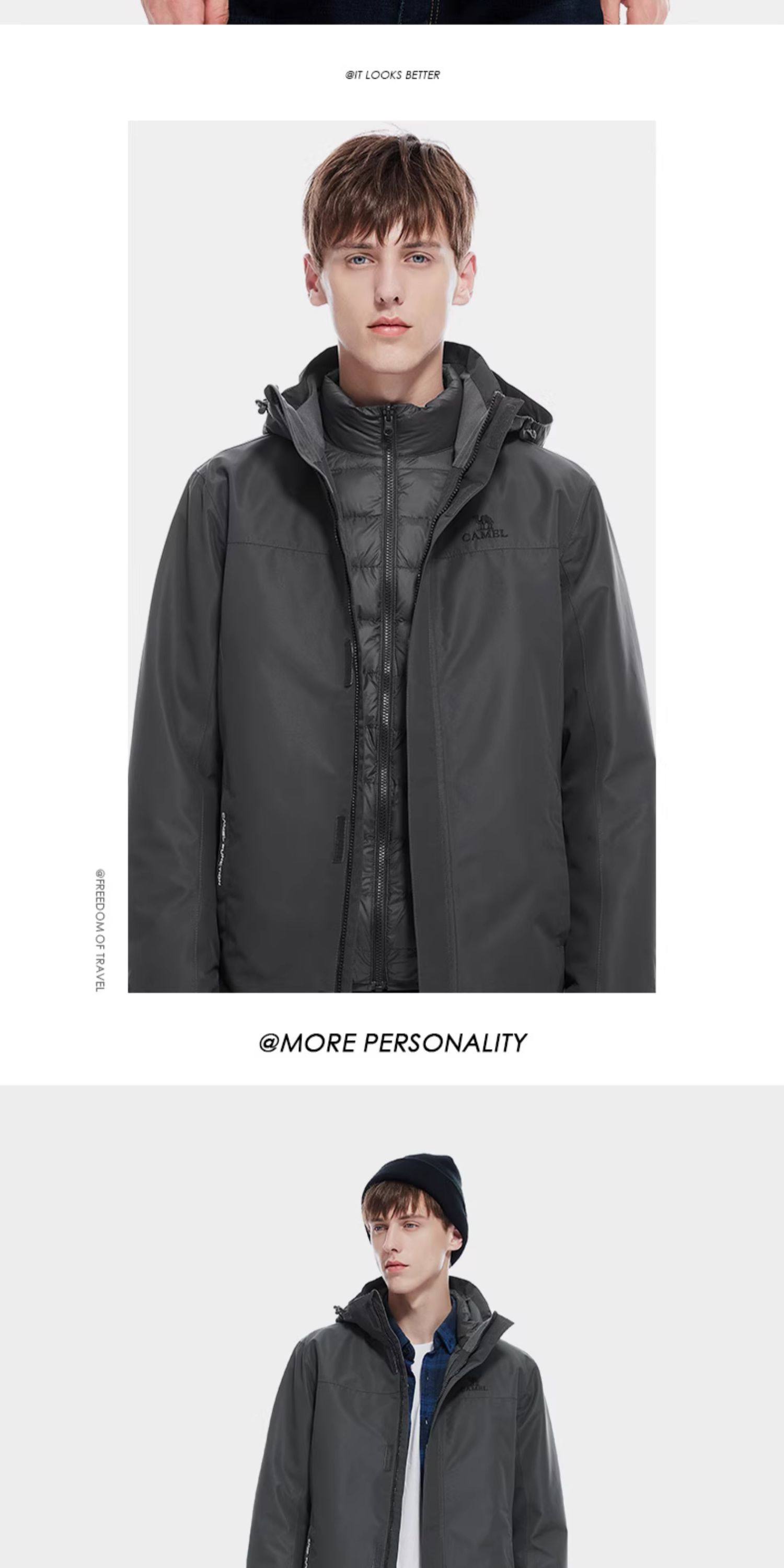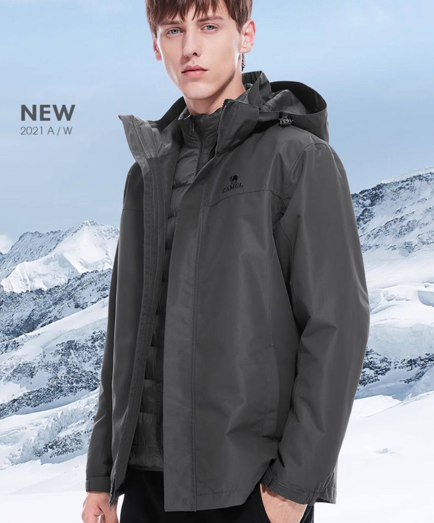 Camel Outdoor Goose down Liner Jacket for Men and Women 3-in-1 2026 Winter Outdoor Cold-Proof Warm down Jacket Coat