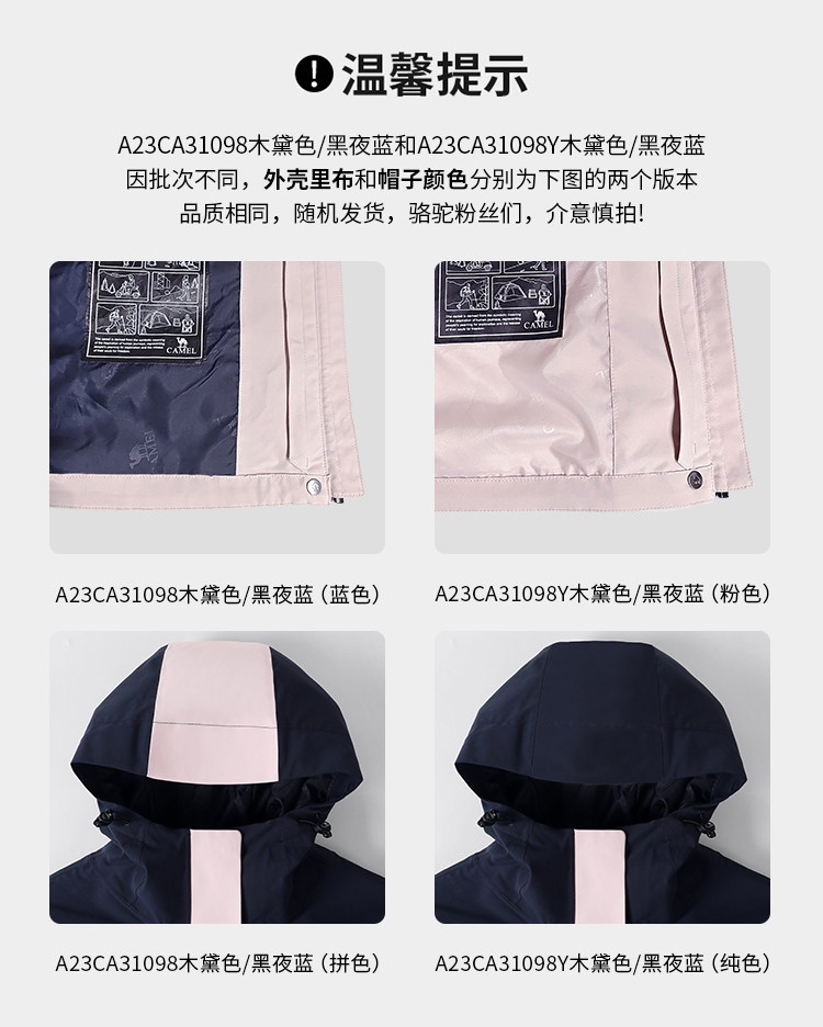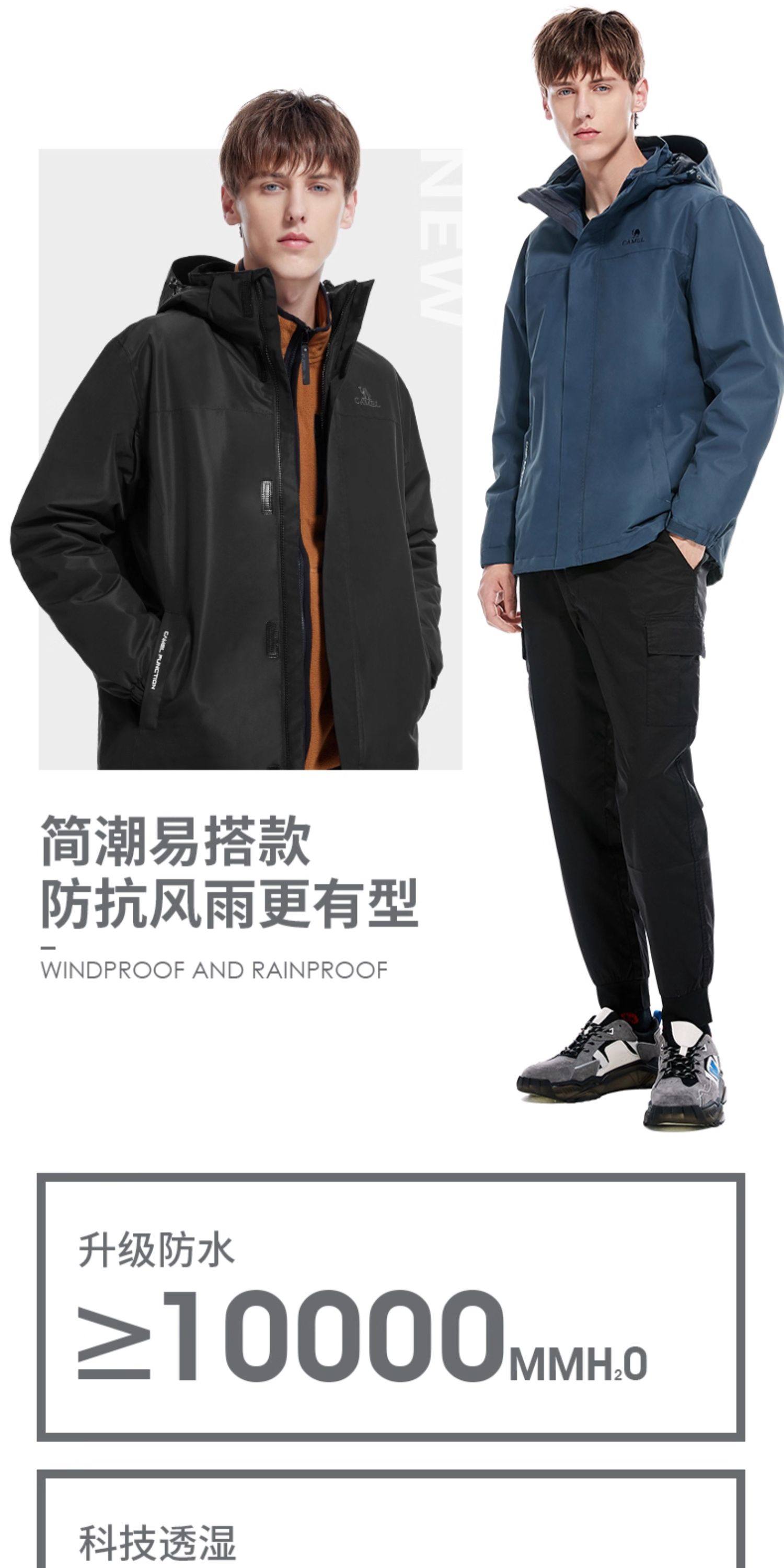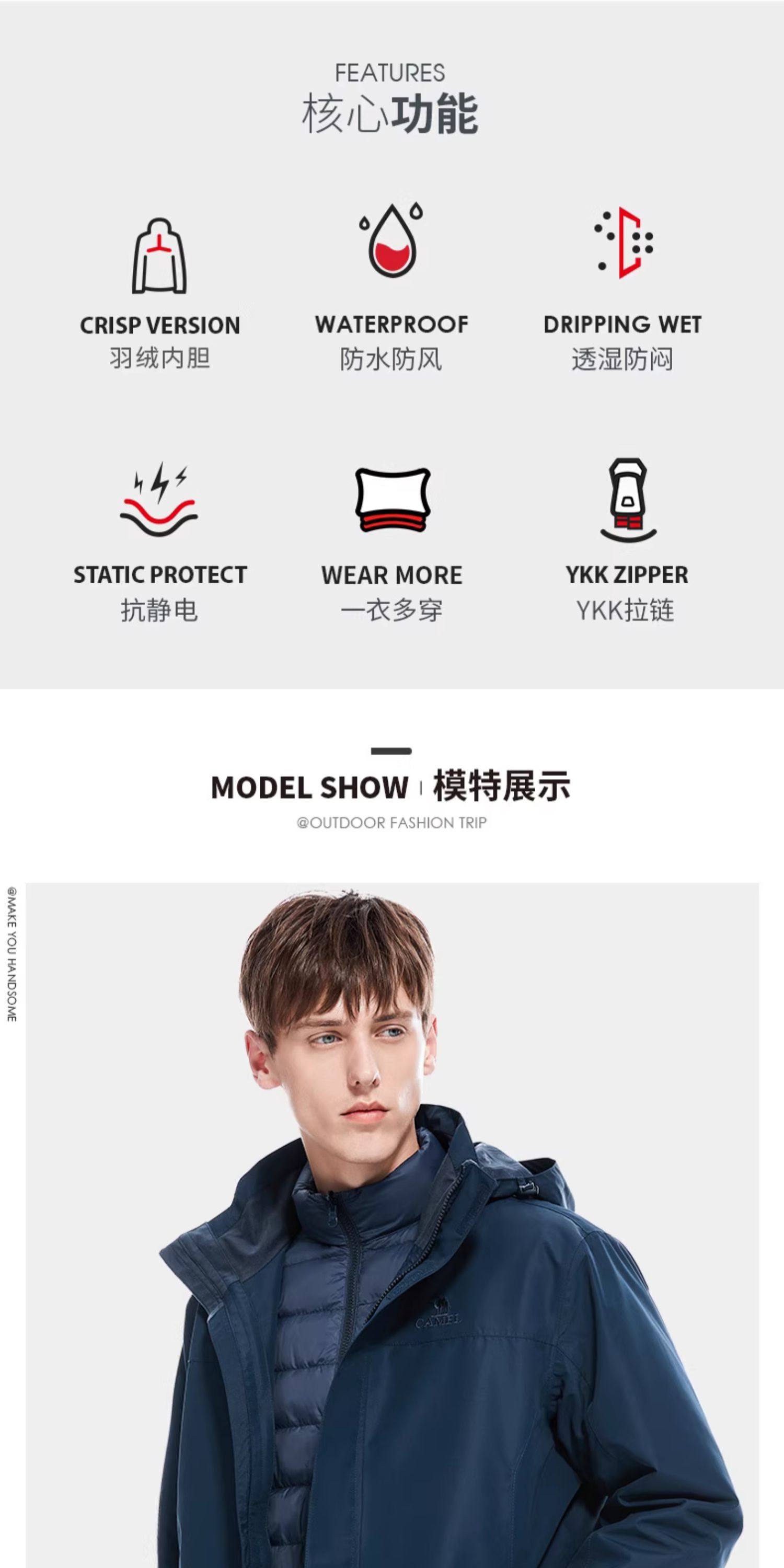 Camel Outdoor Goose down Liner Jacket for Men and Women 3-in-1 2026 Winter Outdoor Cold-Proof Warm down Jacket Coat