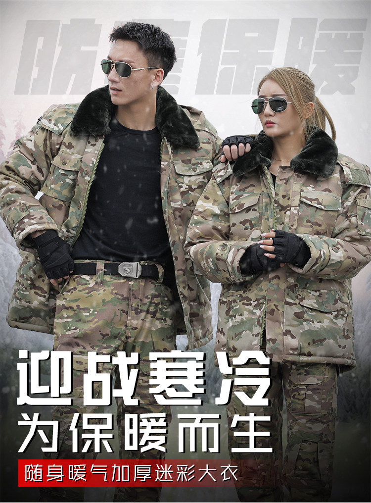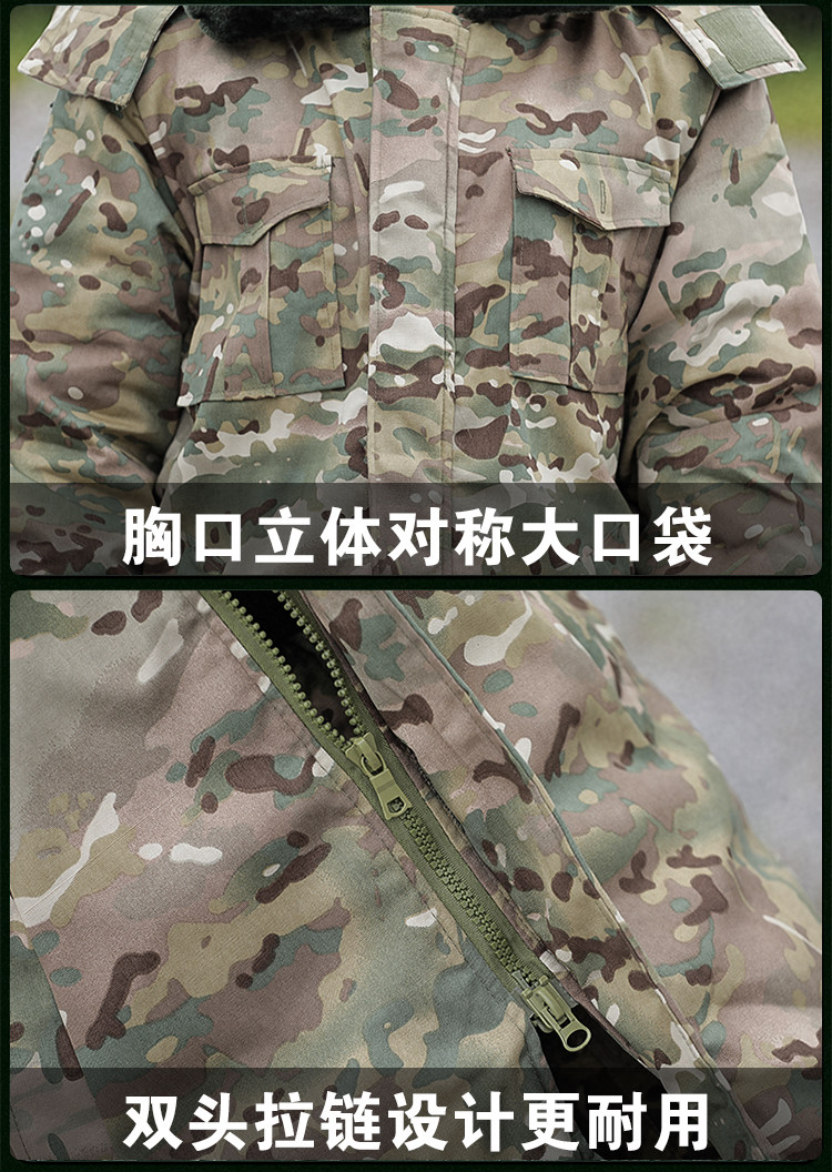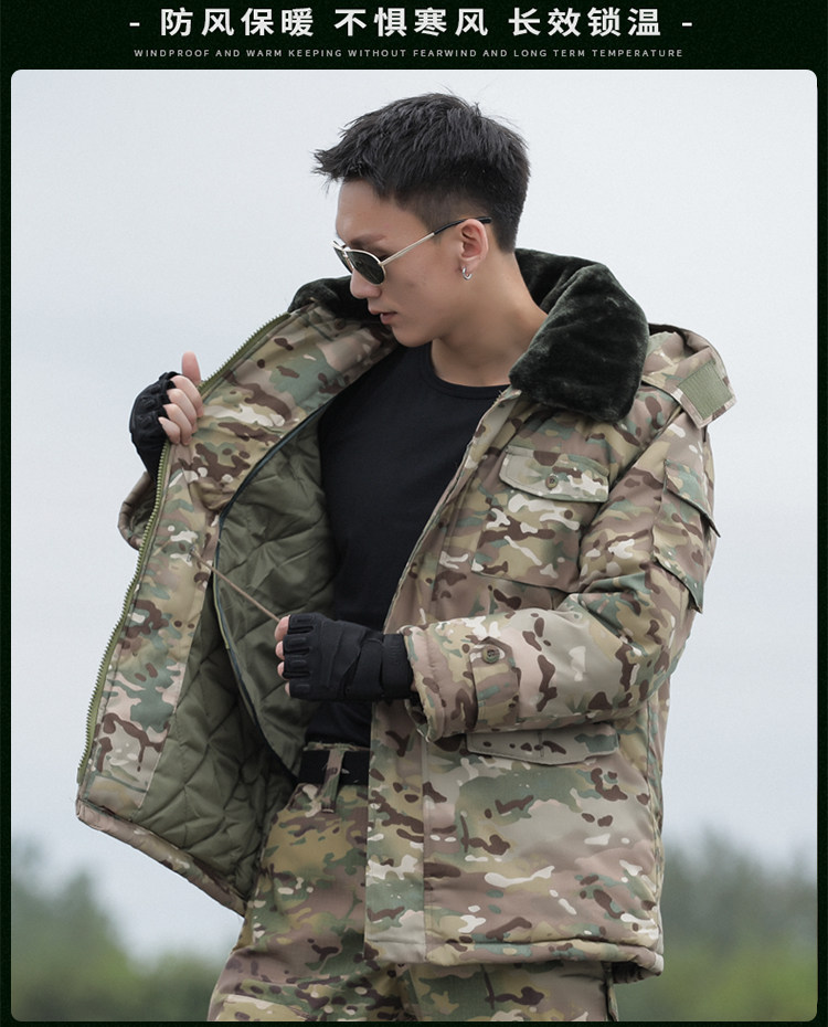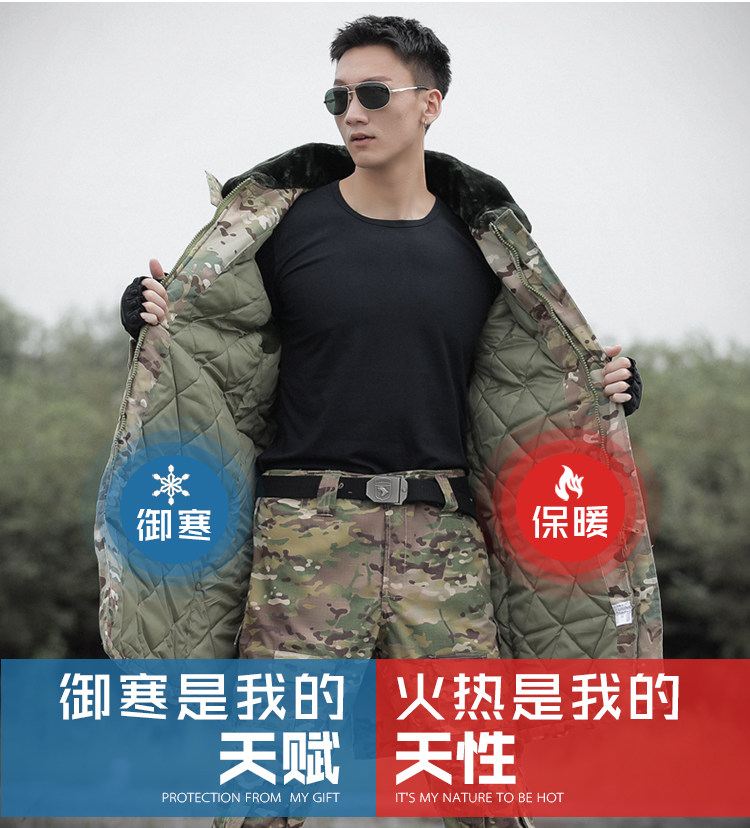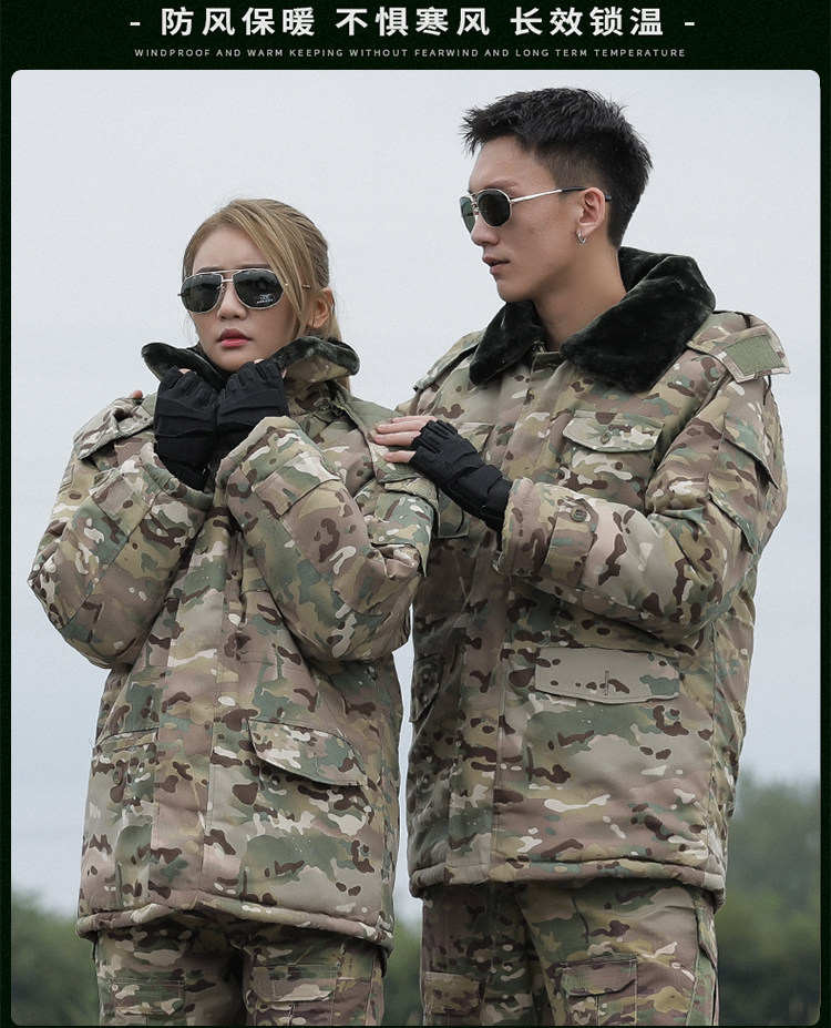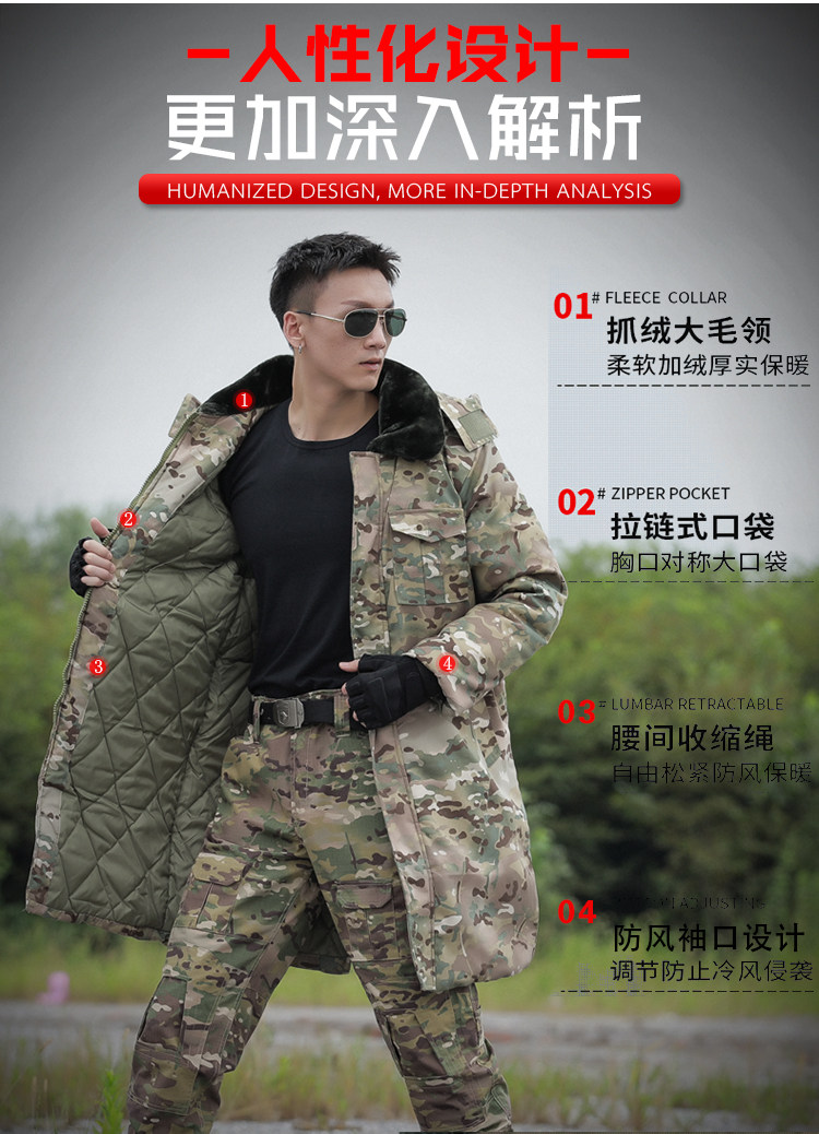 New Northeastern Style Cold-Proof Coat for Security Personnel in Sub-Zero Temperatures, Men's Large Cotton-Padded Camouflage Military Coat, Thickened for Winter