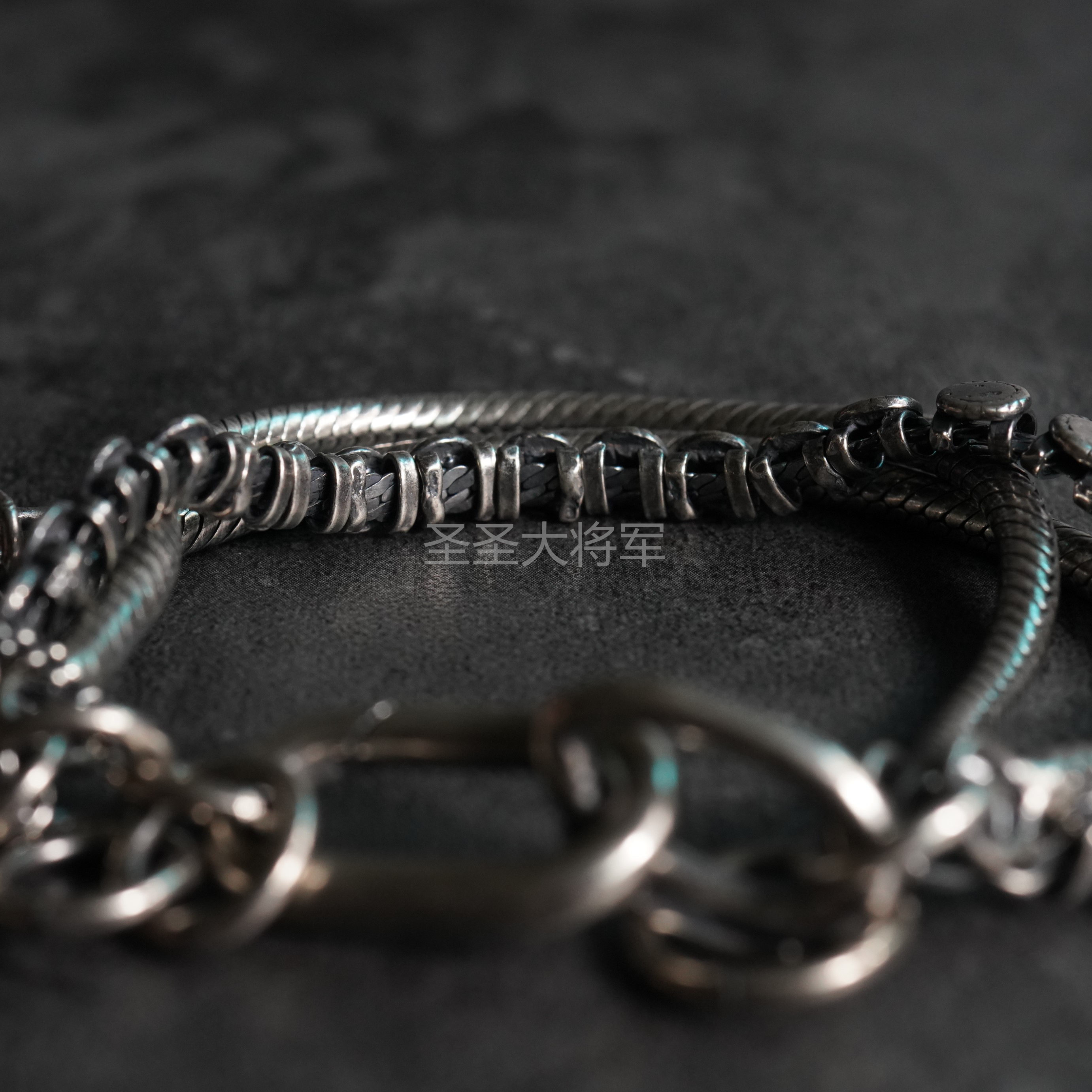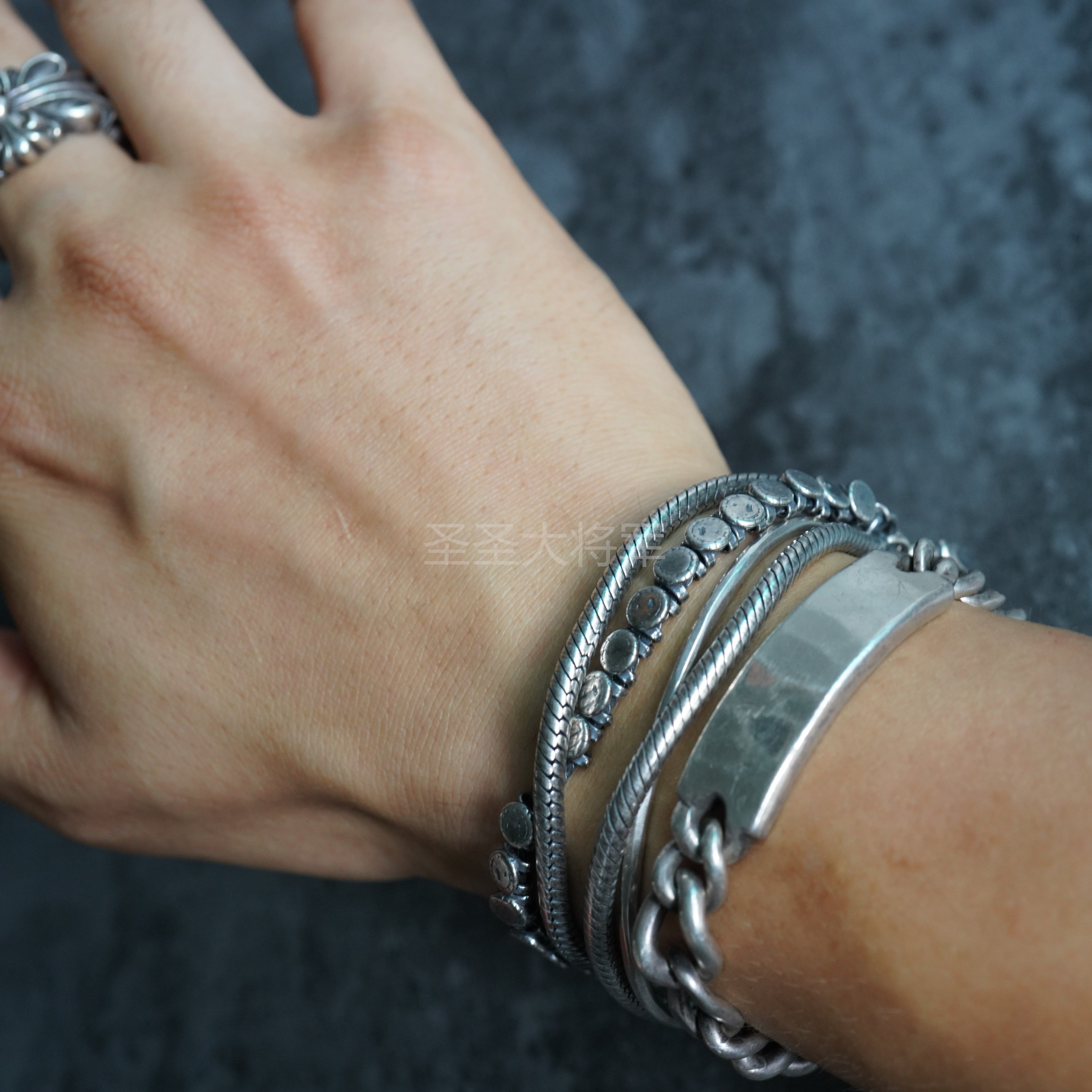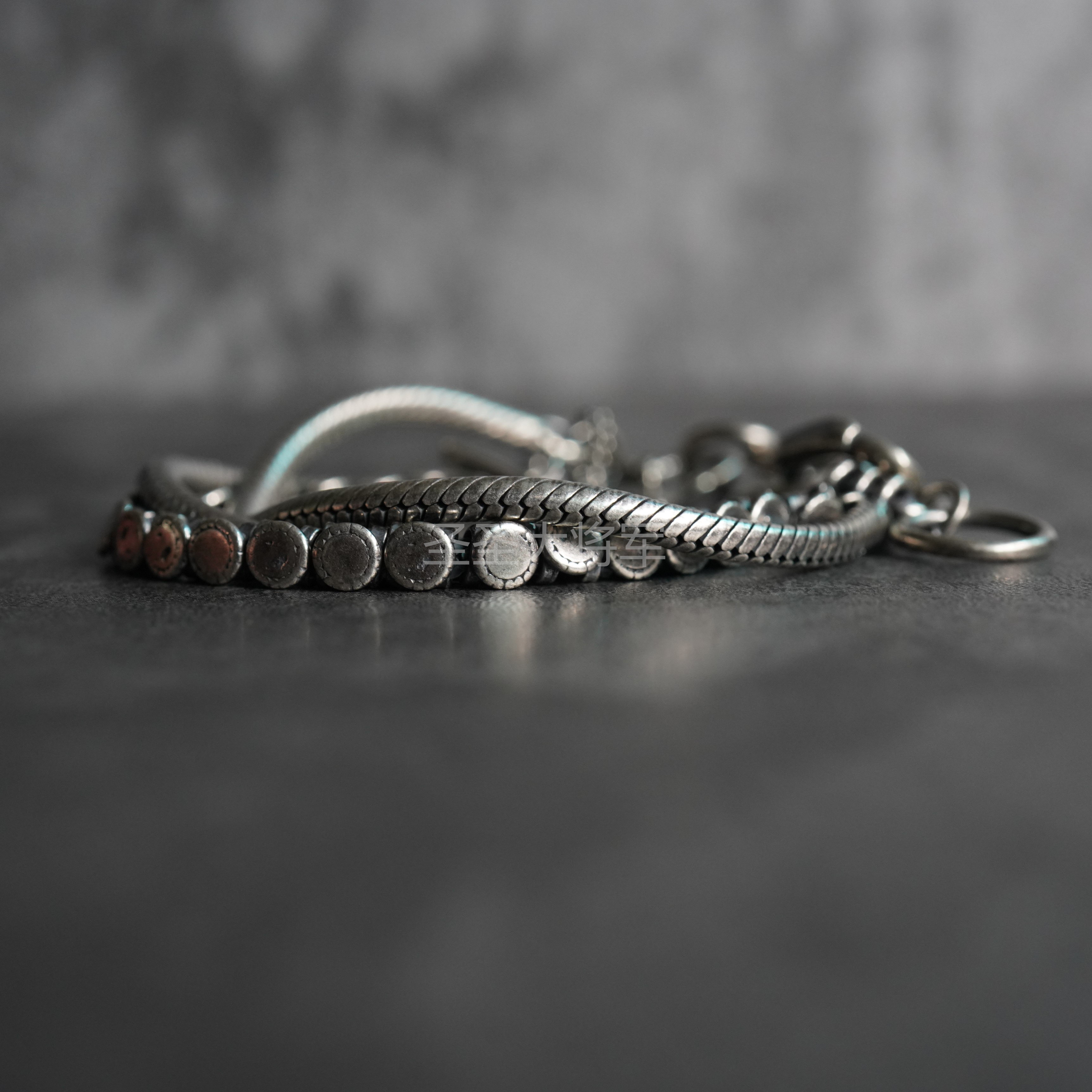 [Ready Stock Special Price] Goti Maifulong's Same Style Dark Pioneer Small Round Shield Mixed Snake Bone Sterling Silver Bracelet