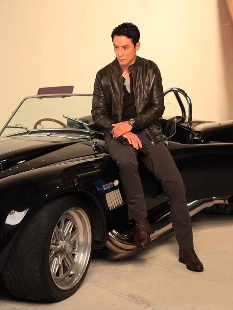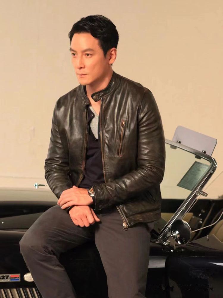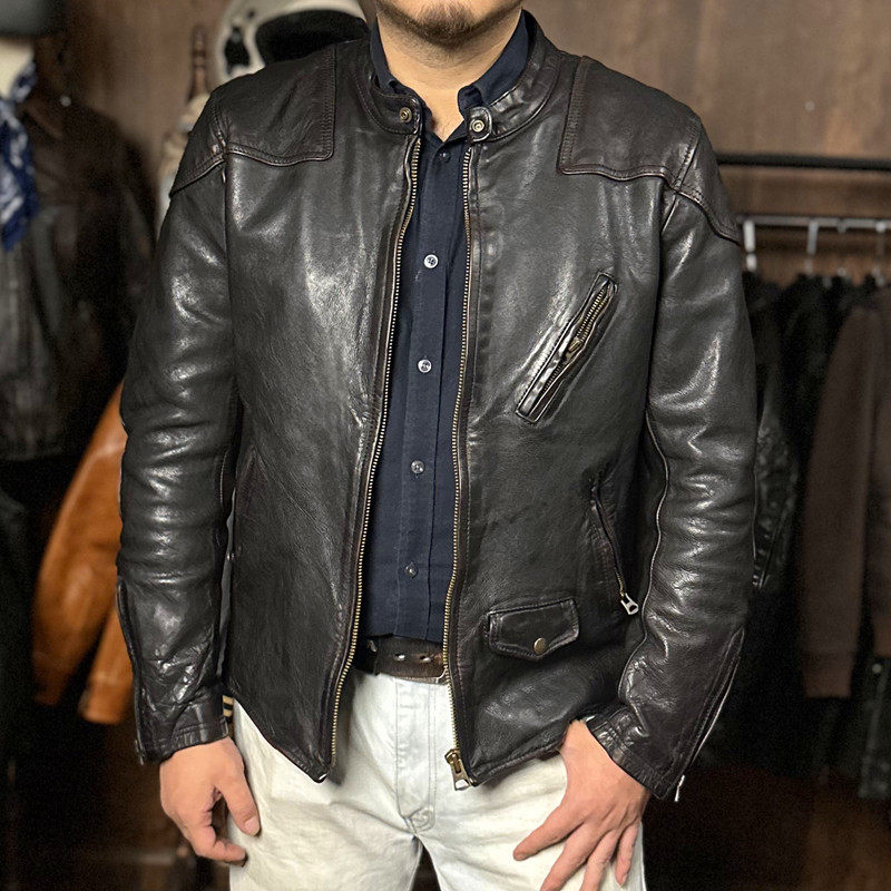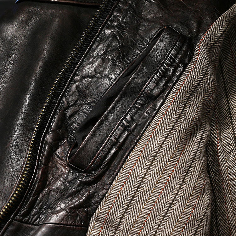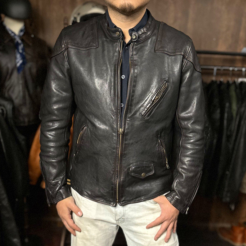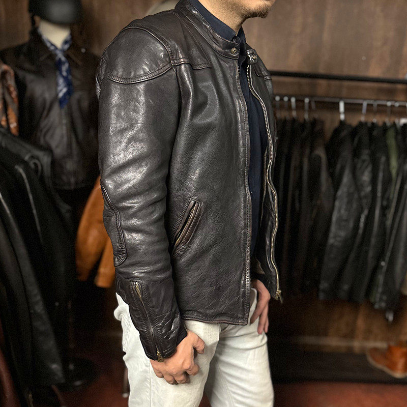 Ame-Kaji Vintage Distressed Horsehide Leather Jacket for Men, Stand Collar Slim Fit Biker Jacket, Casual Genuine Leather Coat
