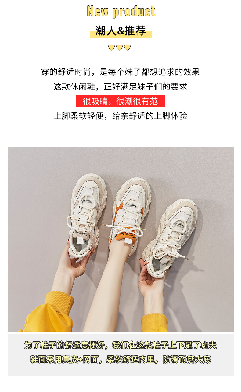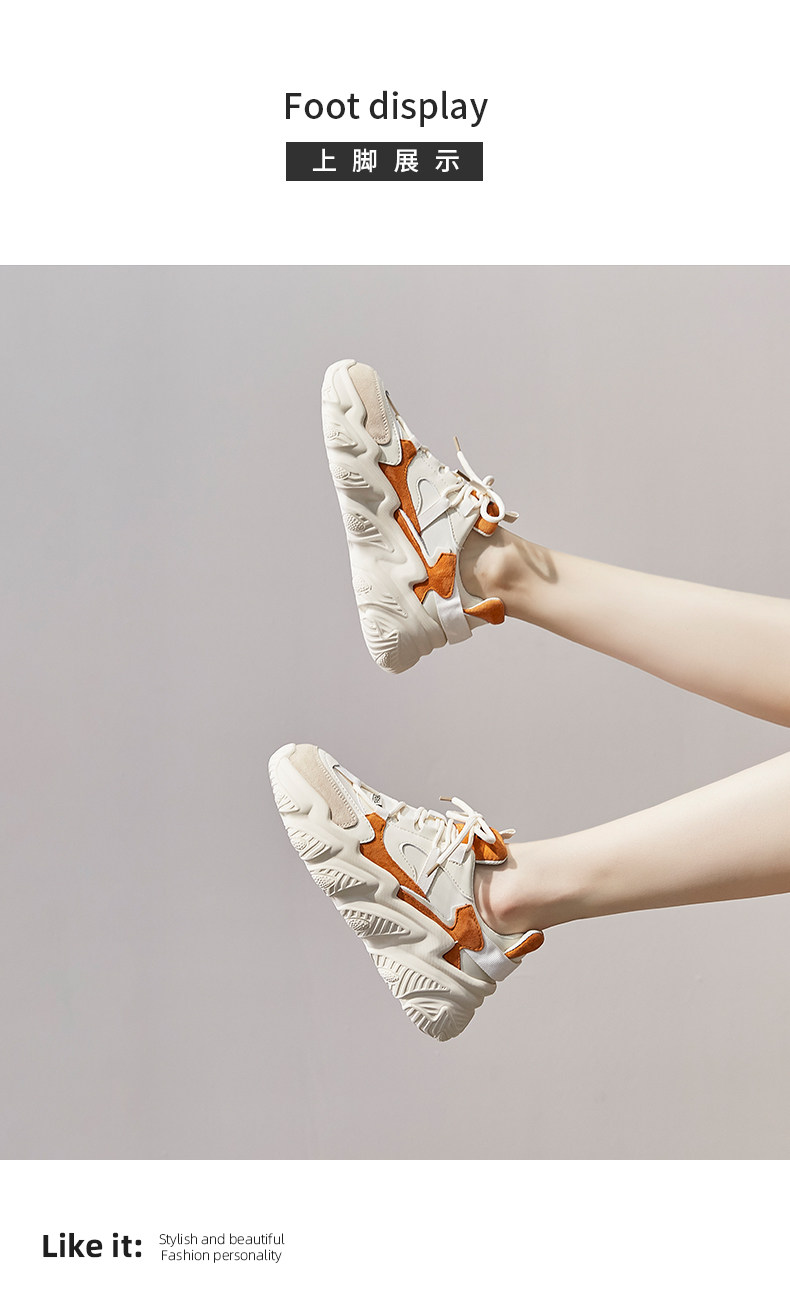 Hong Kong Dad Shoes for Women 2025 Spring and Autumn Korean Style Genuine Leather Versatile Thick-Soled Women's Shoes Height-Increasing Sports Shoes Large and Small Sizes Casual Shoes