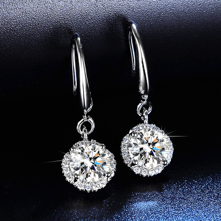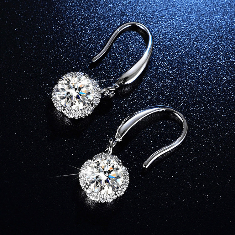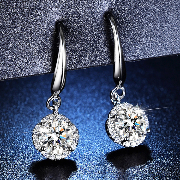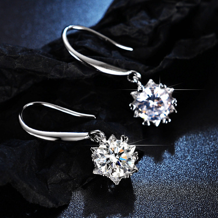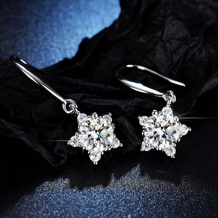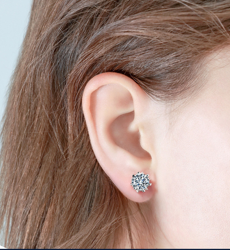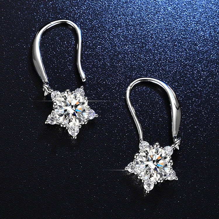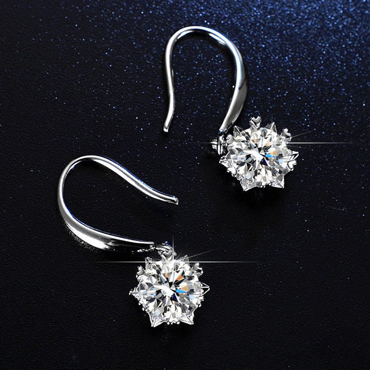 925 Sterling Silver 1 Carat Moissanite Diamond Earrings for Women, Simulated Diamond Snowflake Earrings, Classic Six-Claw Light Luxury Earrings Gift