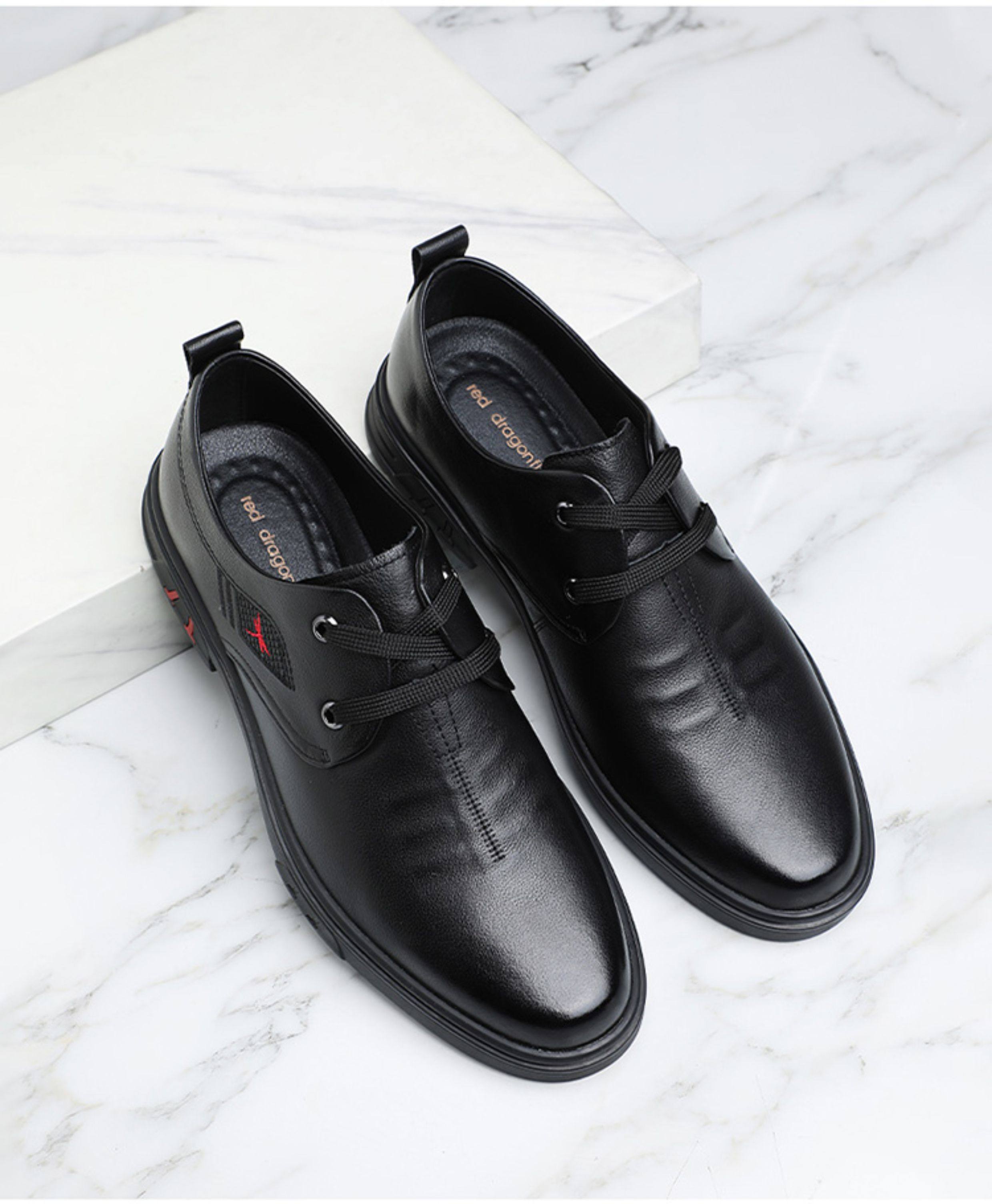 Authentic Red Dragonfly Men's Shoes 2025 New Style Cowhide Genuine Leather Business Casual Leather Shoes Men's Autumn and Winter Fleece-Lined Cotton Shoes