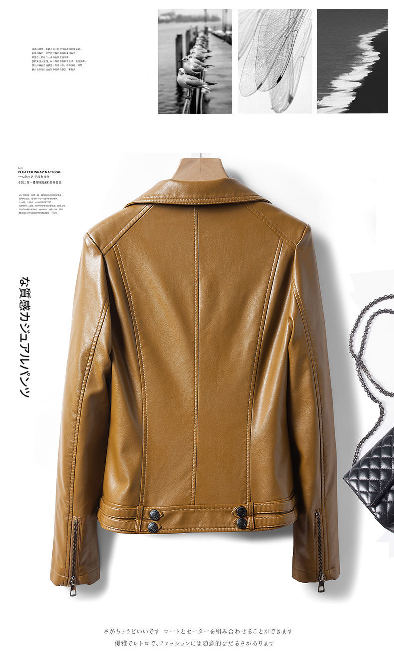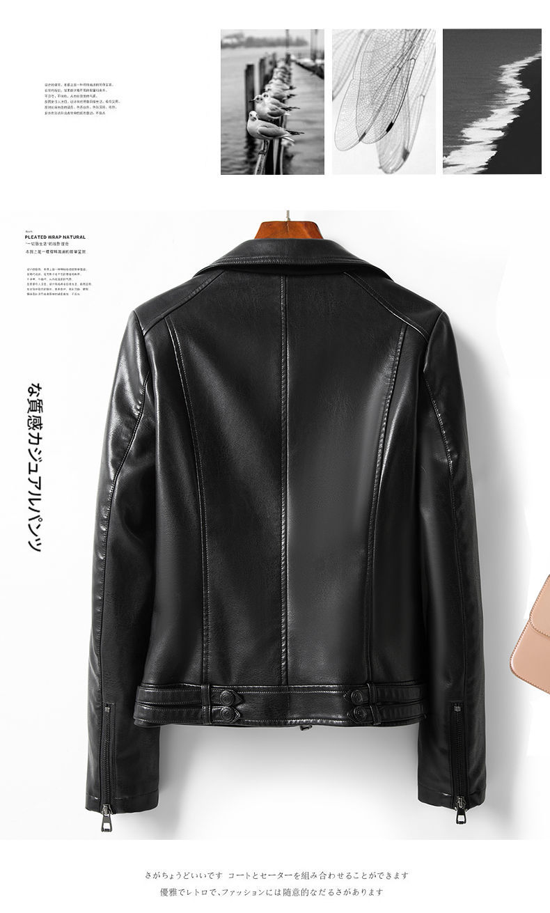 Haining Genuine Leather Jacket for Women, High-End Style, Petite Size, 2025 Autumn New Model, Large Size, Black Short Leather Jacket