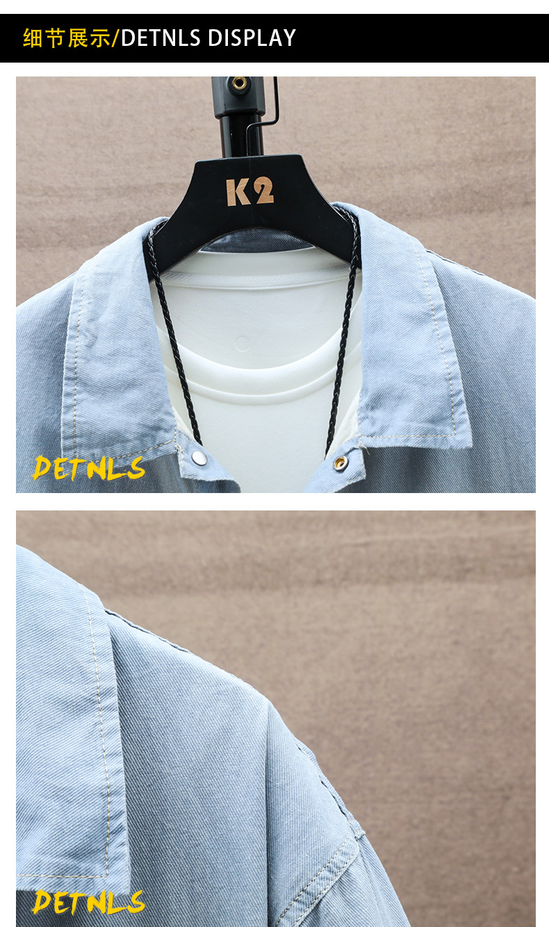 Denim Long-Sleeved Shirt Men's Spring and Autum Youth Trendyy Brand Loose Trendyy Shirt Junior High School and High School Student Jacket